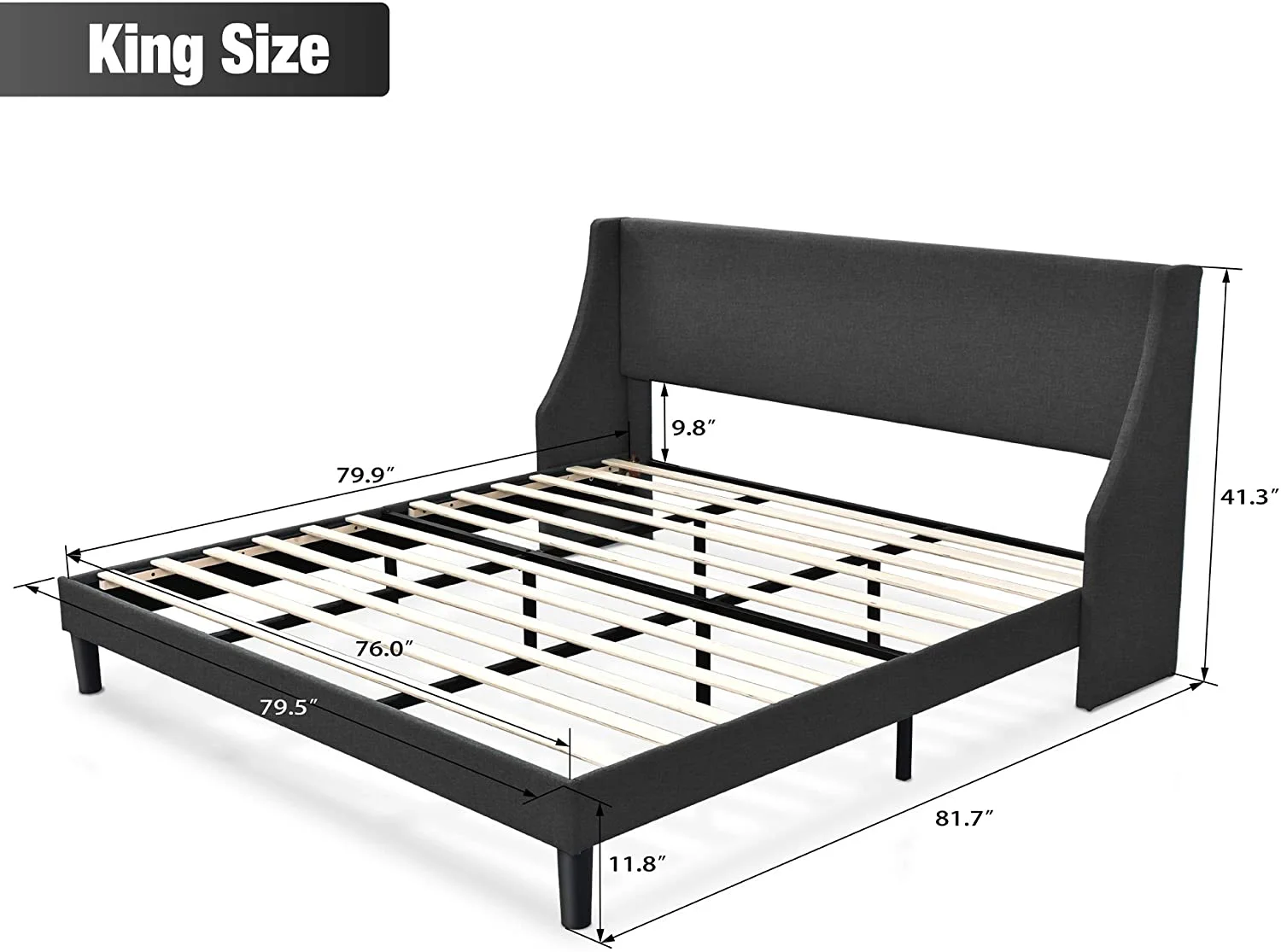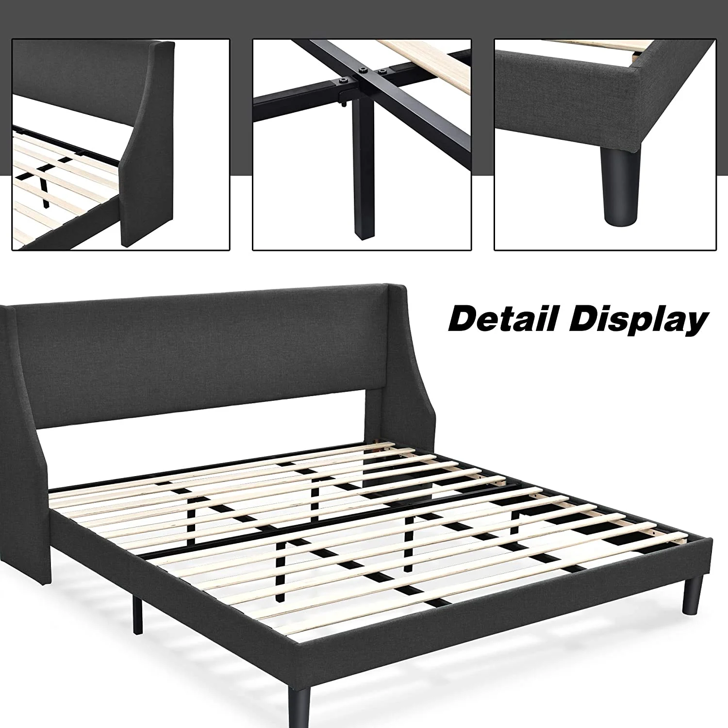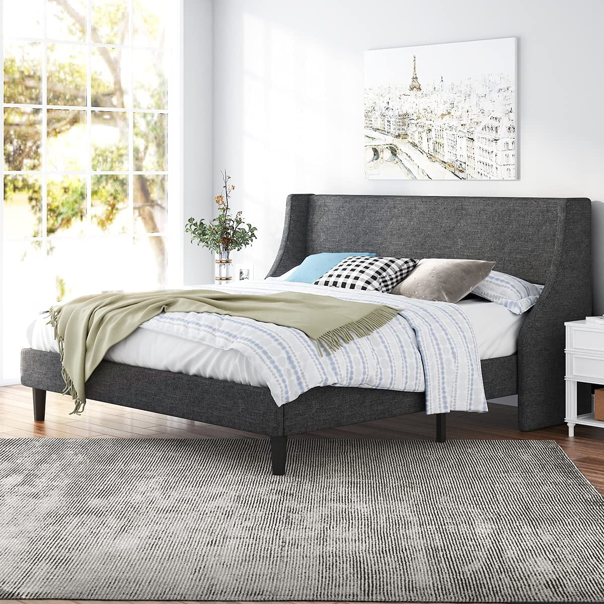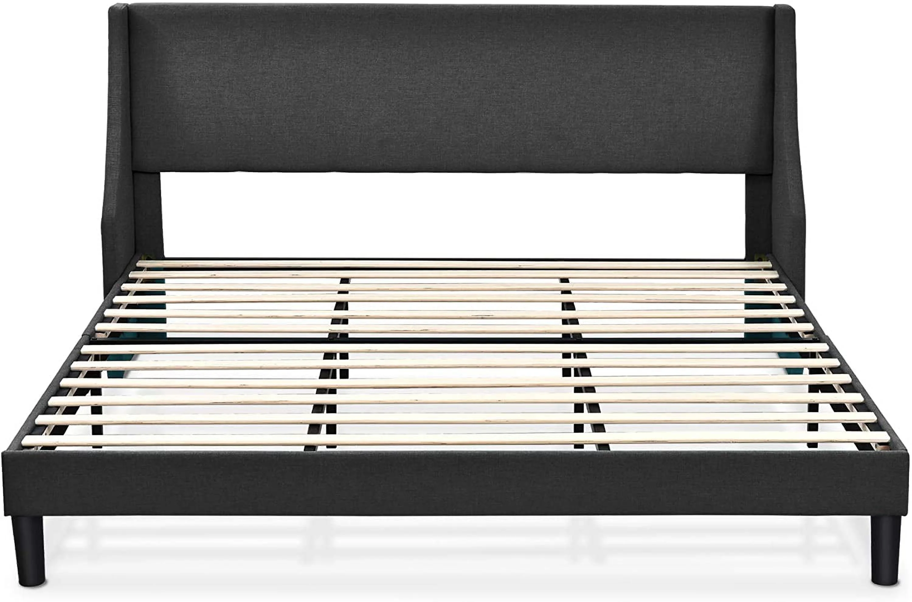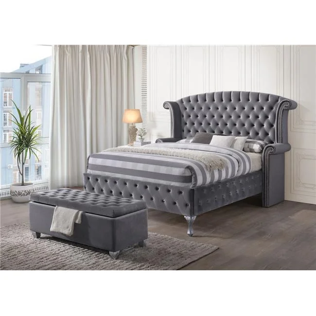Benjara Velvet Upholstered Wooden Queen Size Bed with Shelter Style Headboard,Black