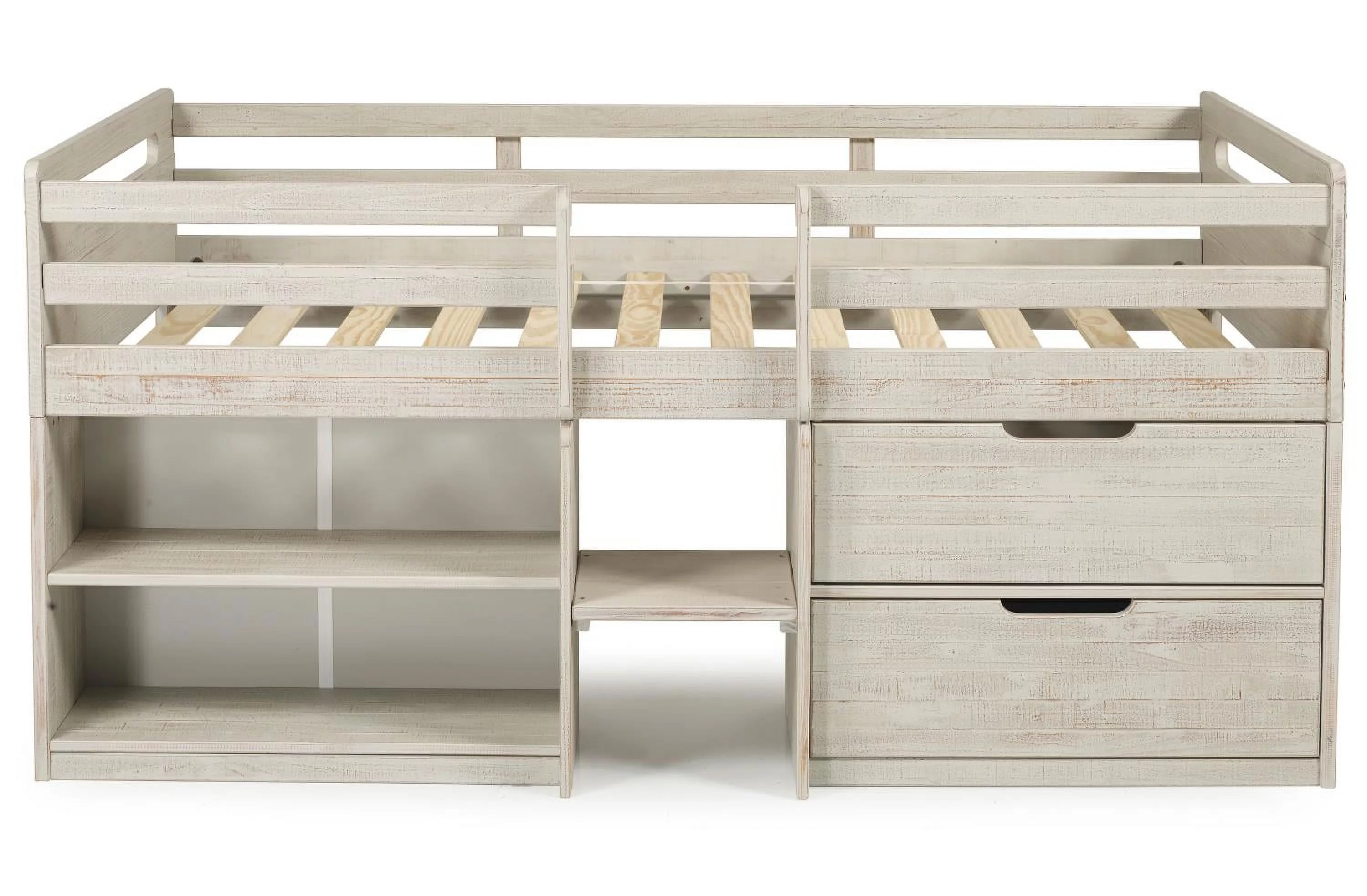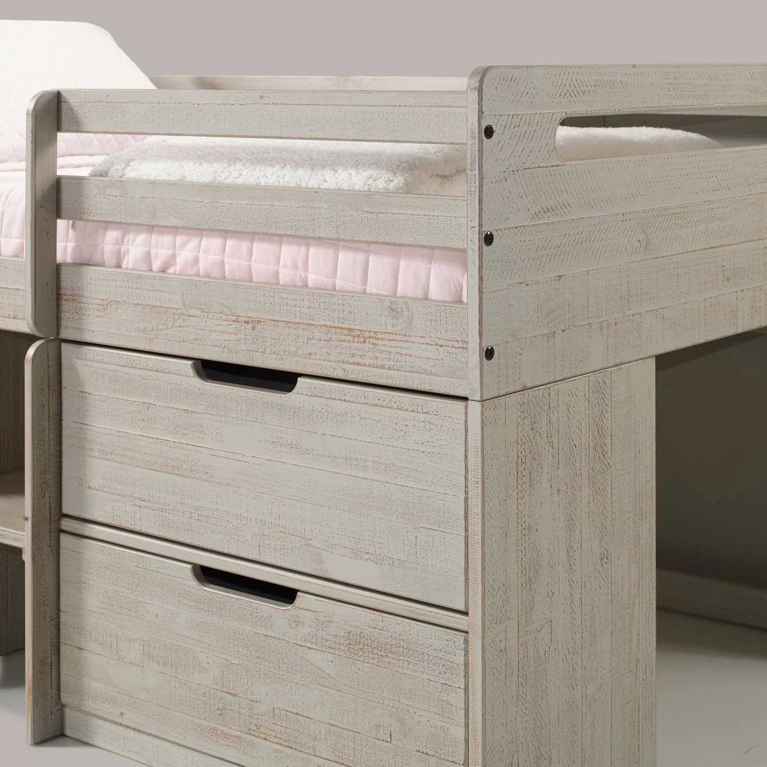 Donco Kids PD-3005TLWWDG-3005C Twin Low Loft with Toy Boxes - White Wash & Dark Grey