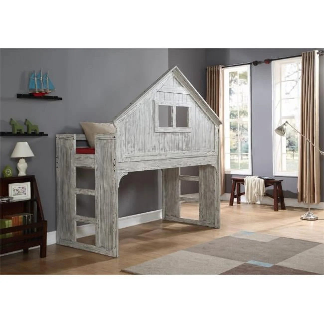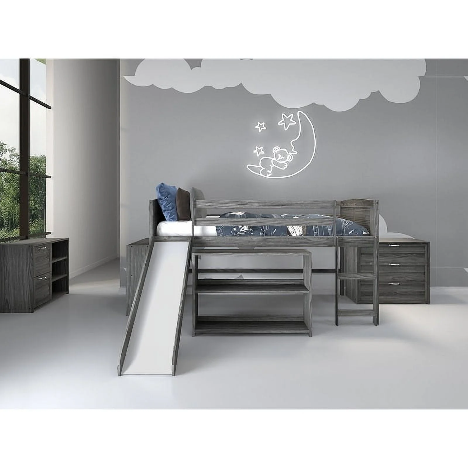 Donco Kids PD-790AAG-785AG Twin Size Louver Low Loft Bed with Slide in Antique Grey