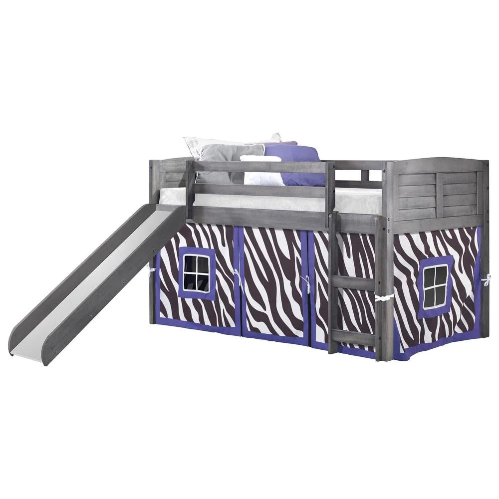 Donco PD-790AAG-Z-785AG Twin Size Louver Low Loft with Slide & Zebra Tent in Antique Grey