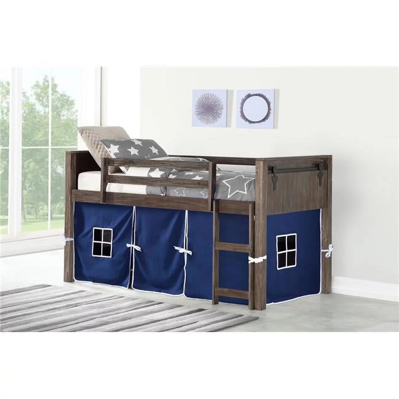 Donco Kids PD-0318TBS-B Twin Barn Door Low Loft, Brushed Shadow with Blue Tent