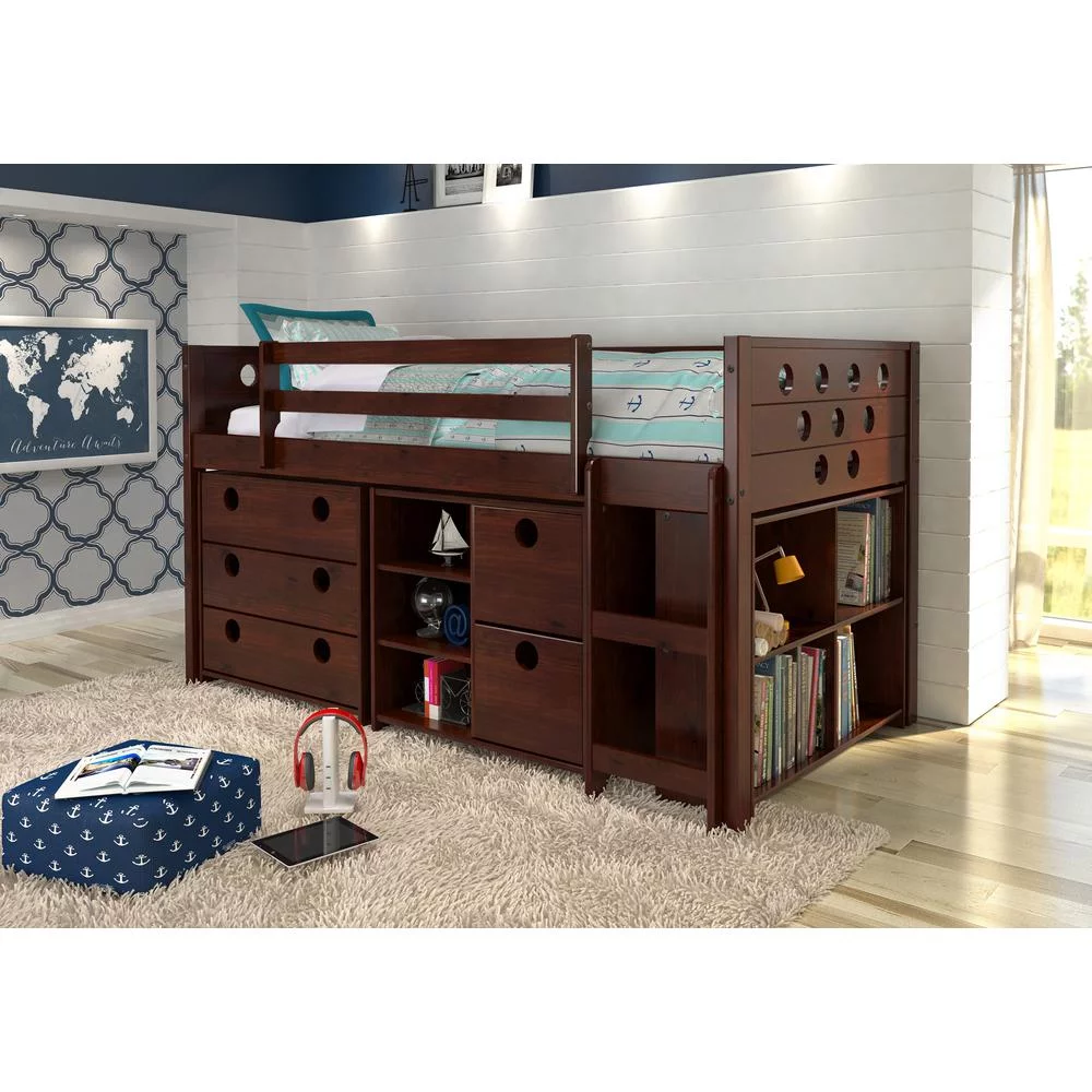 Donco kids PD-760DG Twin Low Study Loft with Desk, Chest & Bookcase - Dark Gray