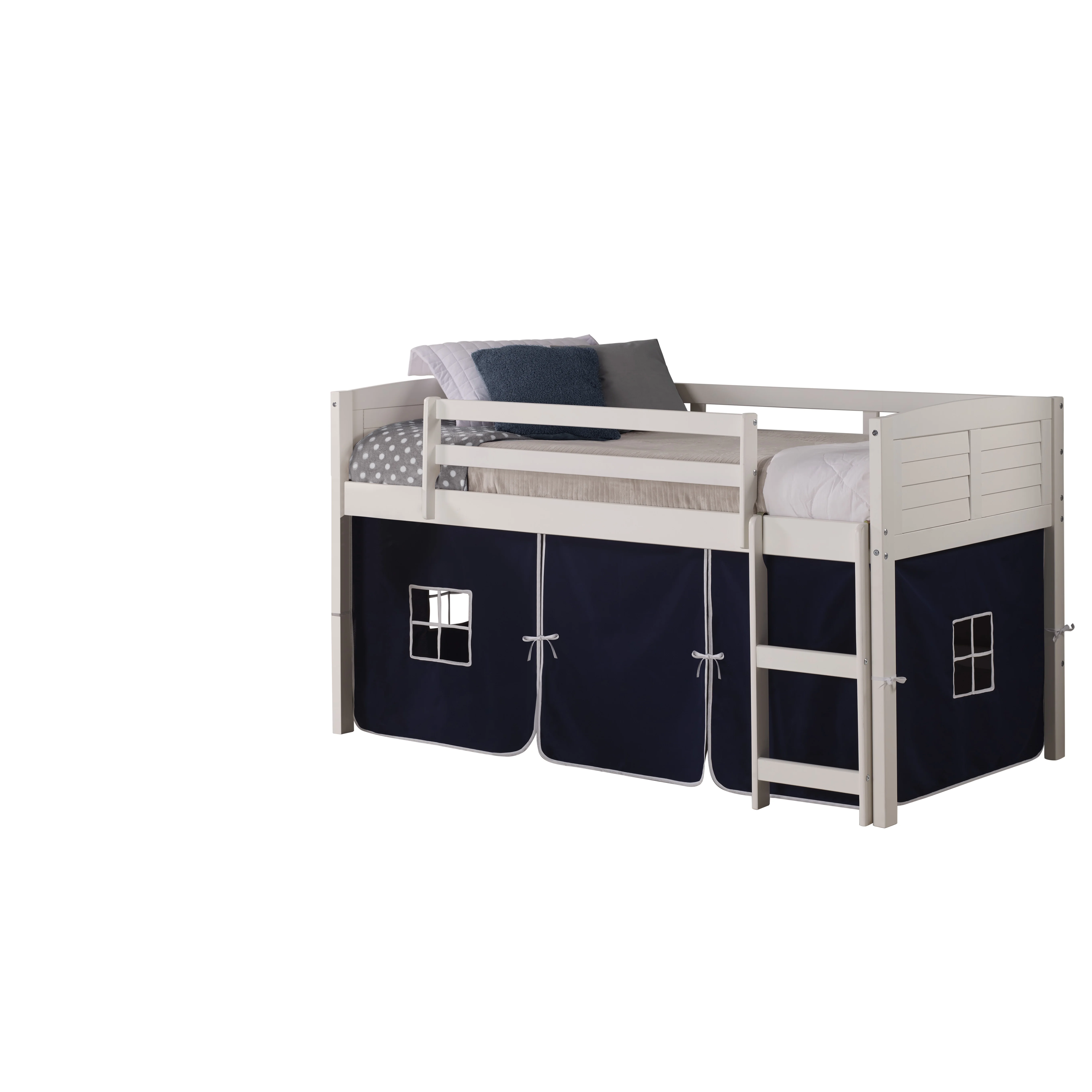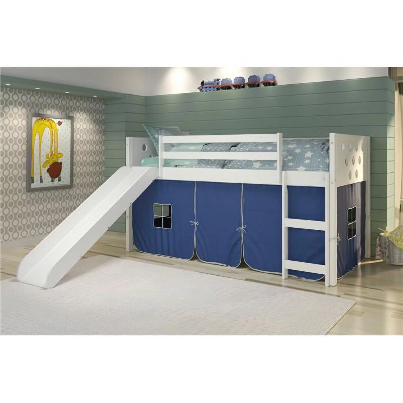 Donco Kids Twin Circles Low Loft W/Slide & Blue Tent Kit In White Finish