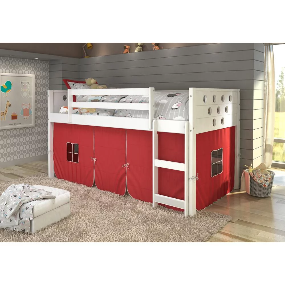 Donco PD-790AAG-R-785AG Twin Size Louver Low Loft with Slide & Red Tent in Antique Grey