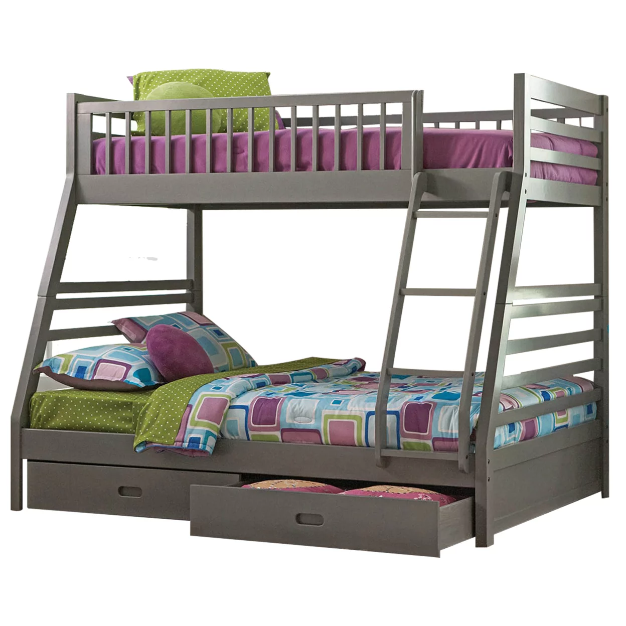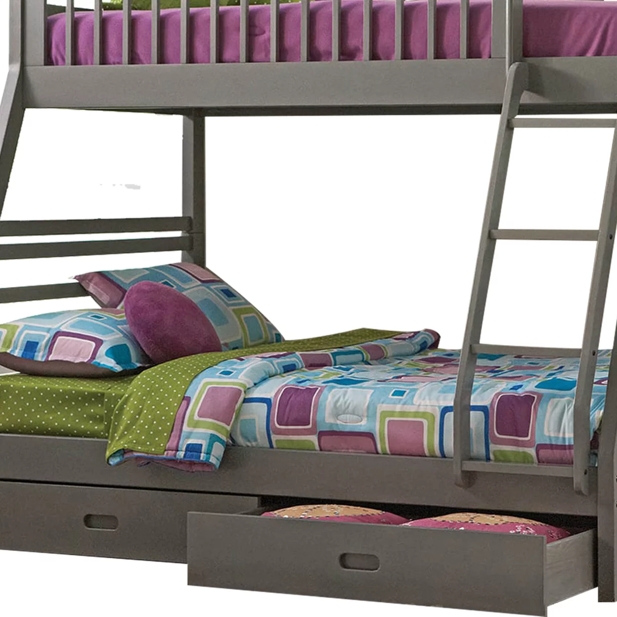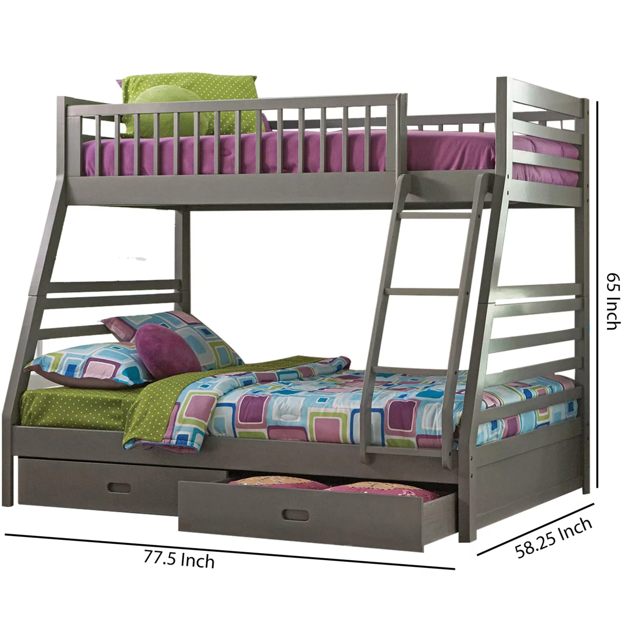 Wooden Twin over Full Bunk Bed with Two Drawers Gray- Saltoro Sherpi