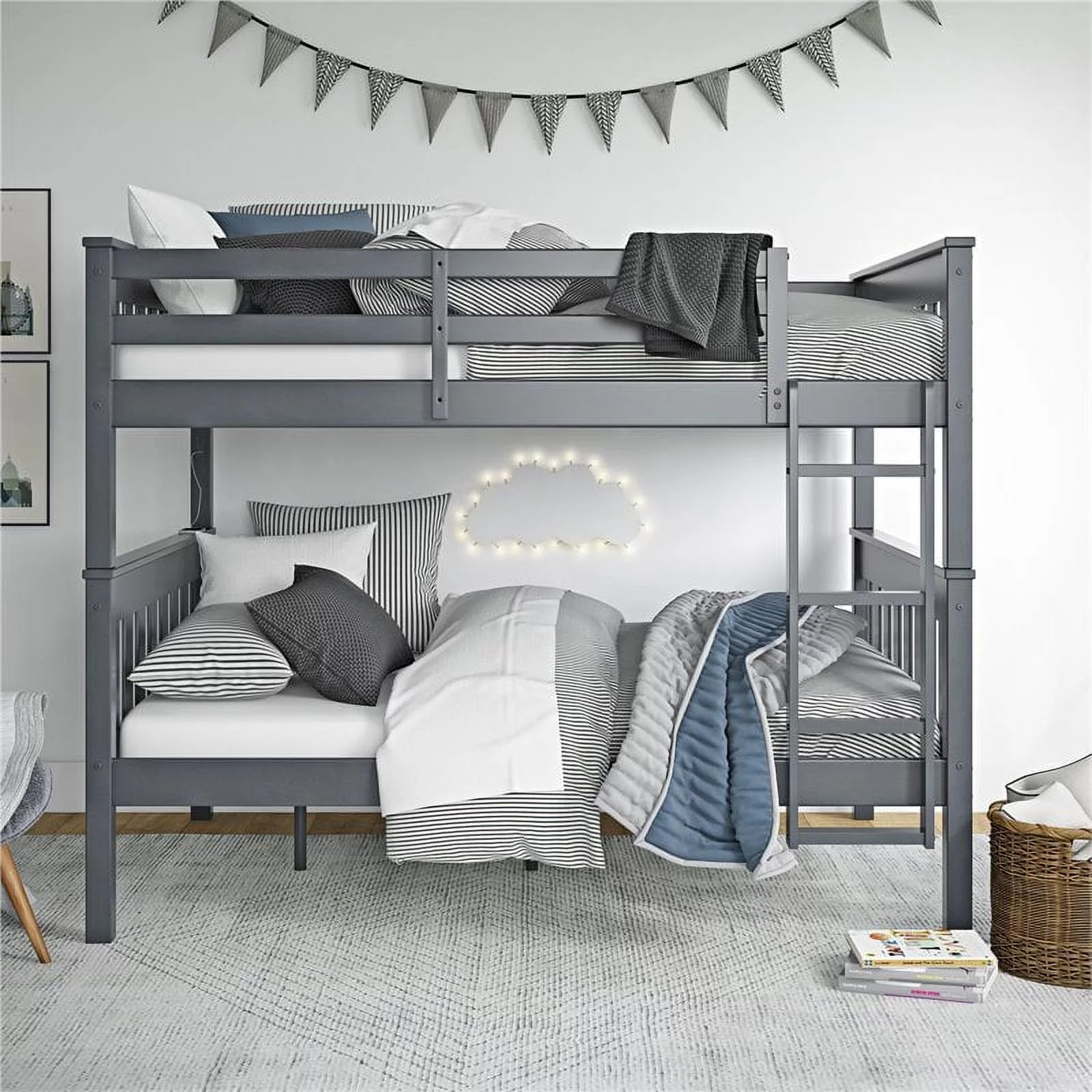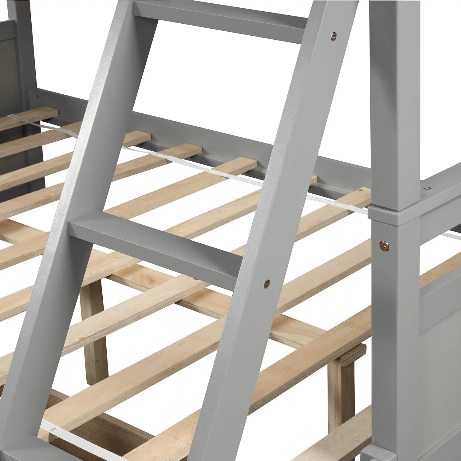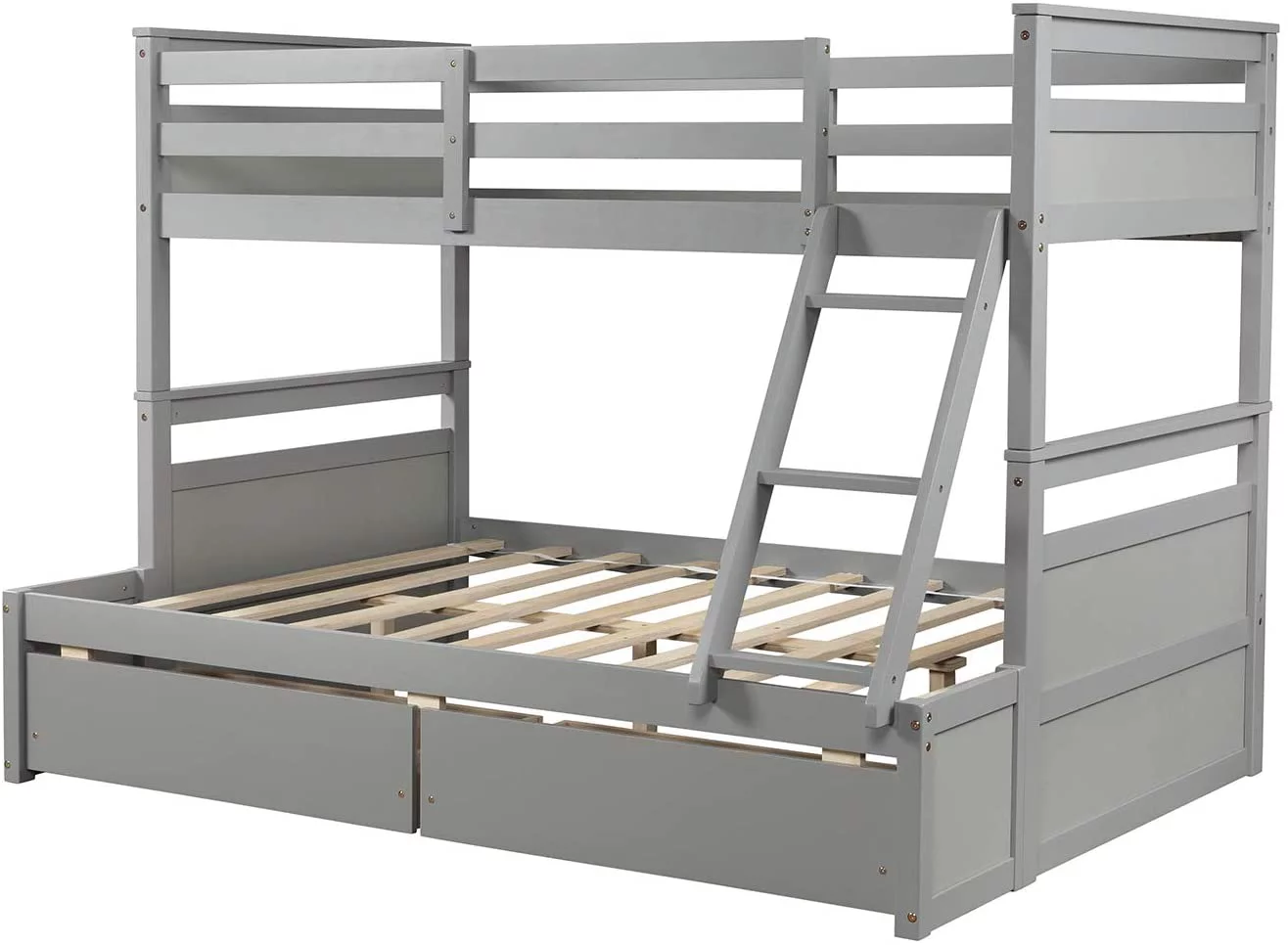 Wooden Twin over Full Bunk Bed with Two Drawers Gray- Saltoro Sherpi