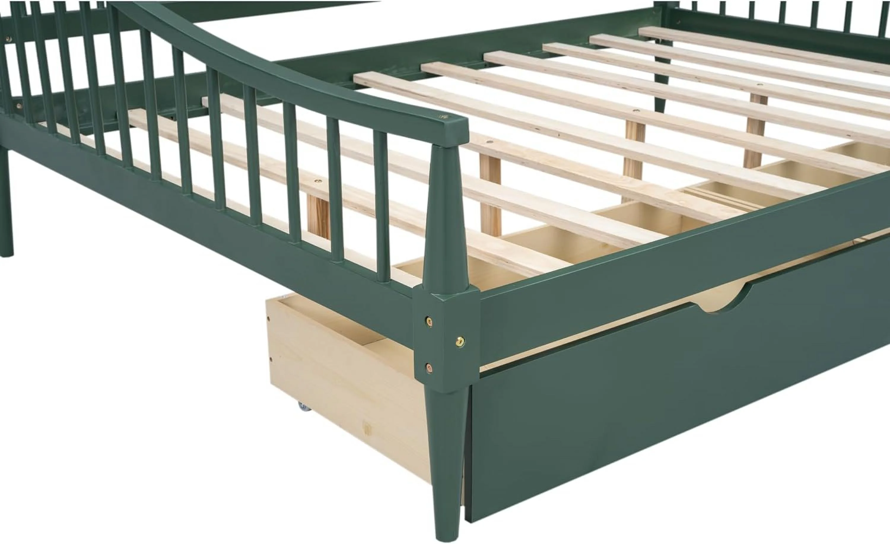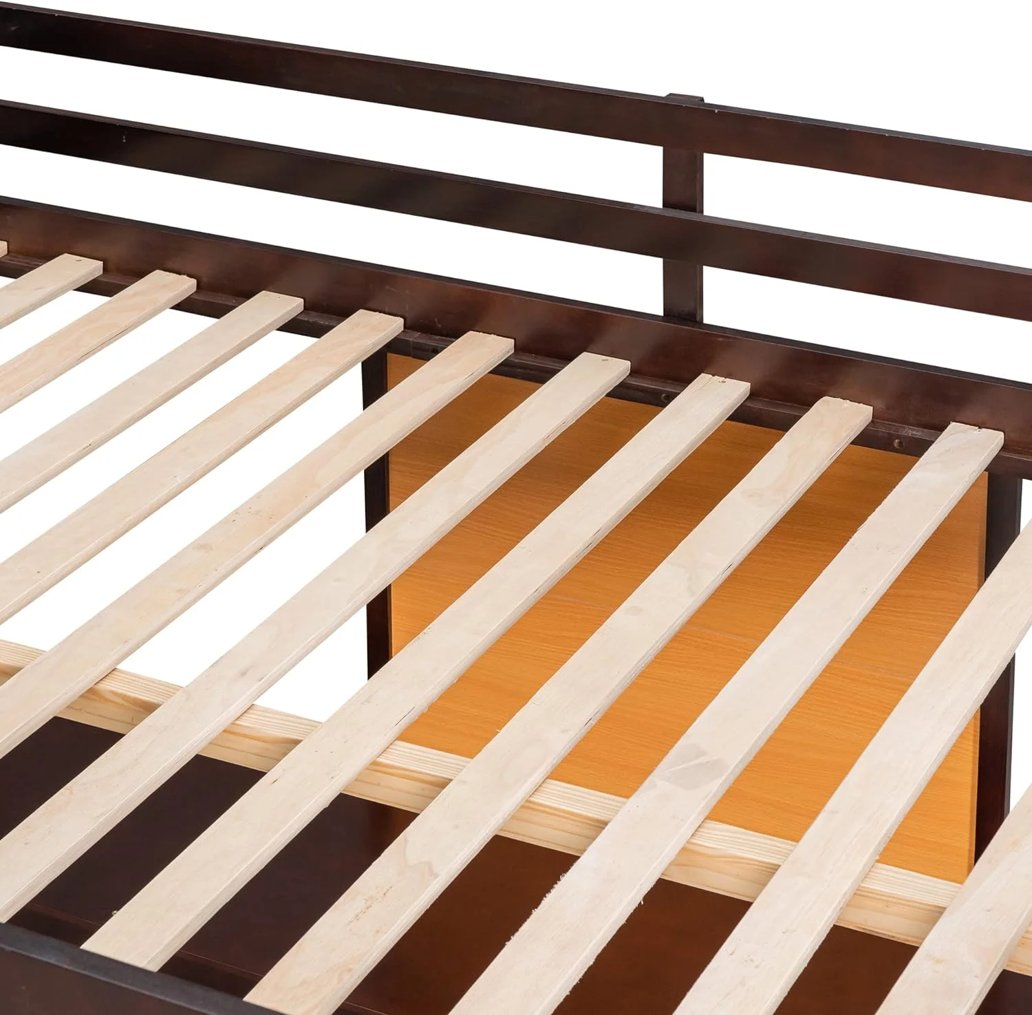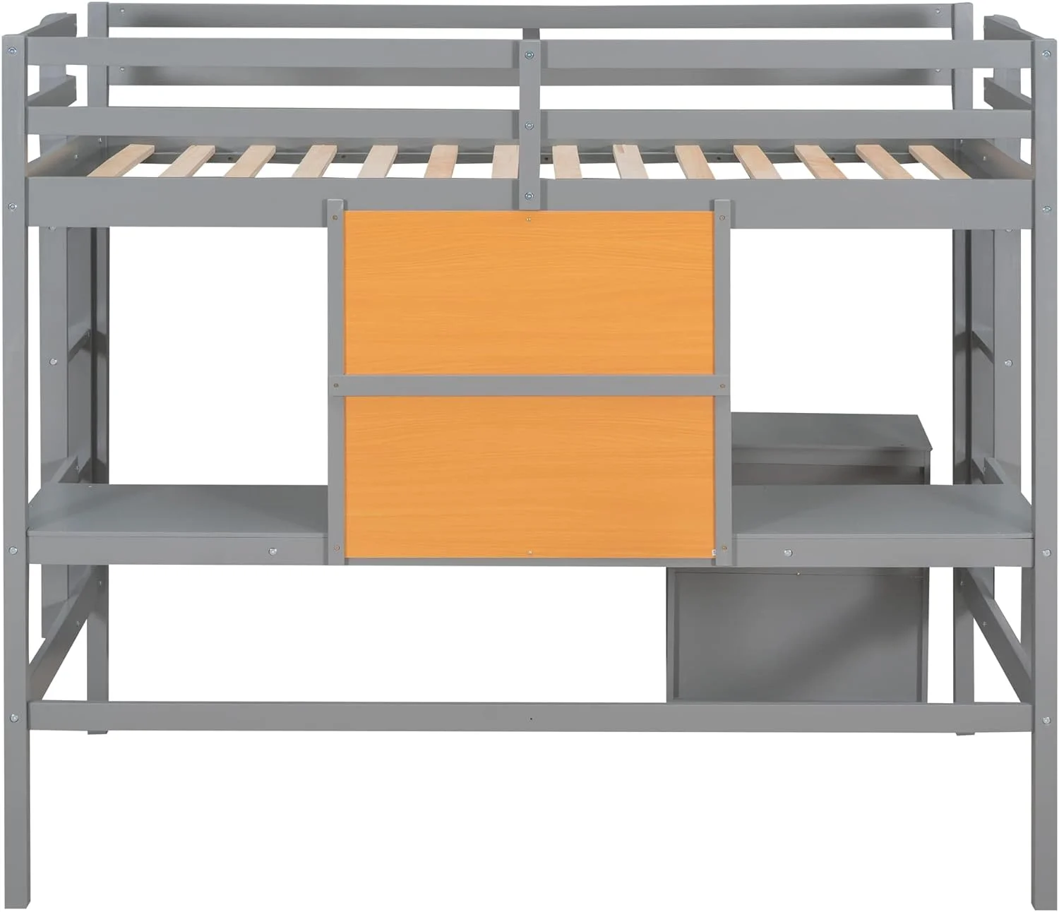 SOGES Solid Wooden Bunk Bed with Storage Drawers and Safety Guardrail for Kids, Gray