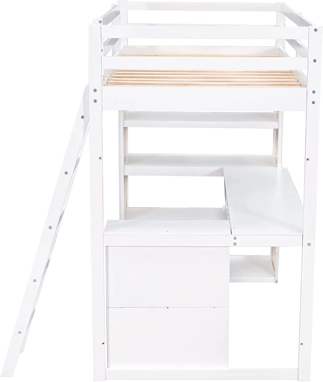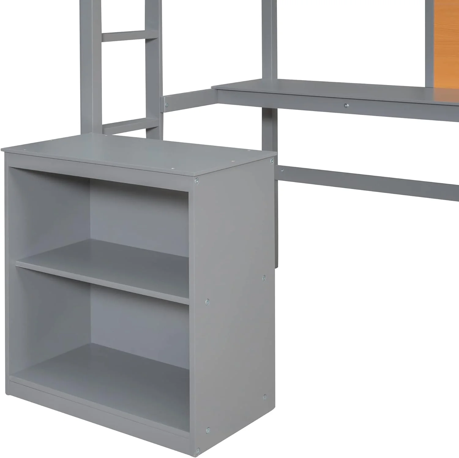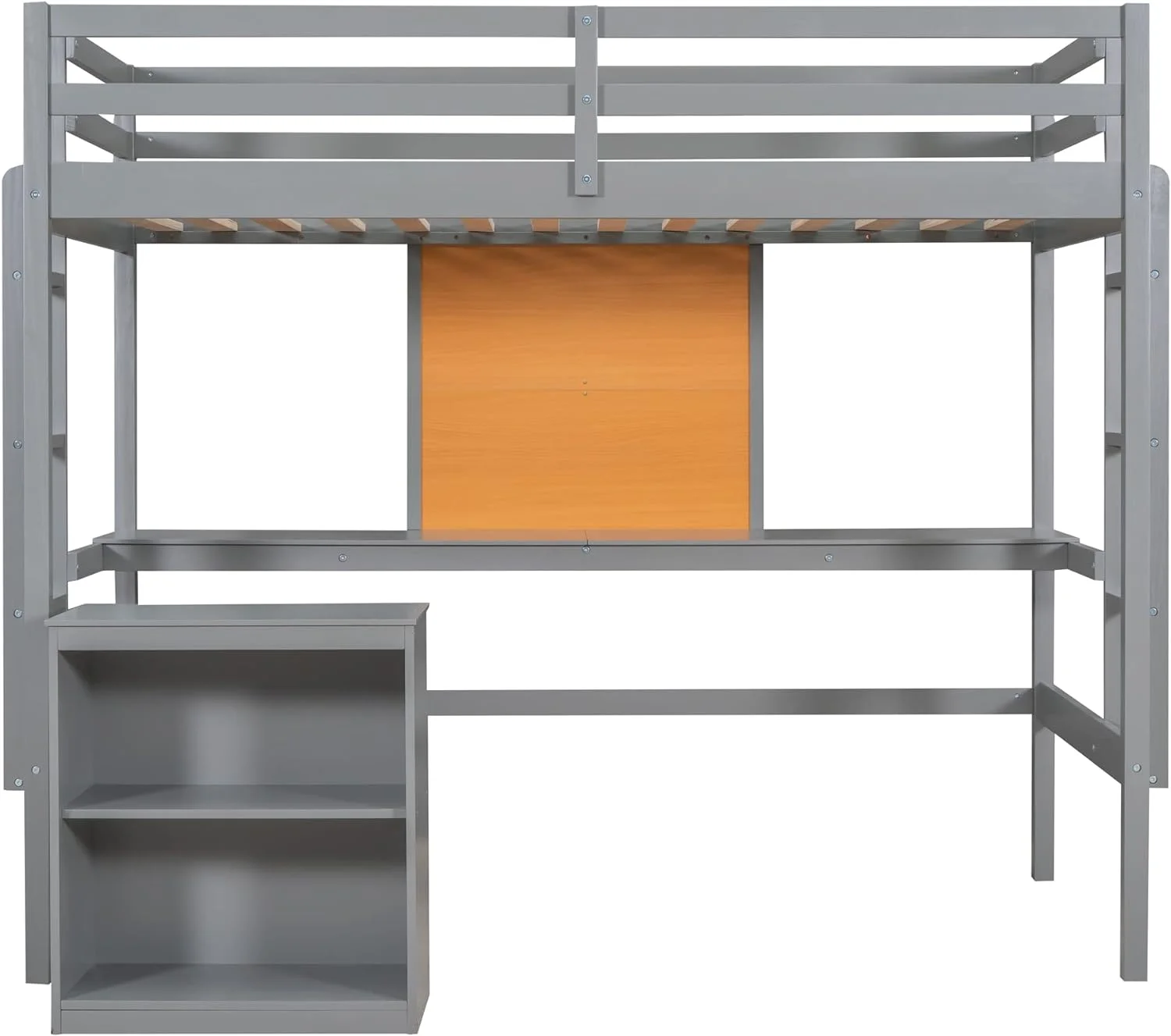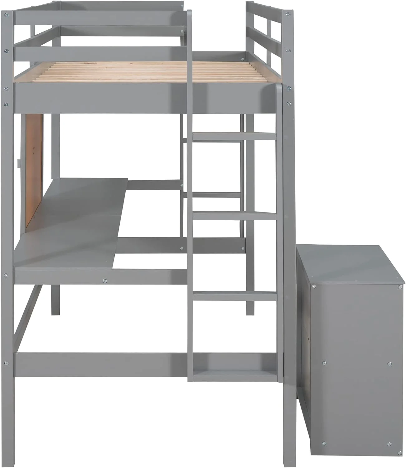 Lof Bed Wih Desk Ad Wriig Board, Wood Size Lof Bed Wih Desk & 2 Drawers Cabie Udereah, Lof Bed For Kids, Boys,Girls,ees(,Grey)