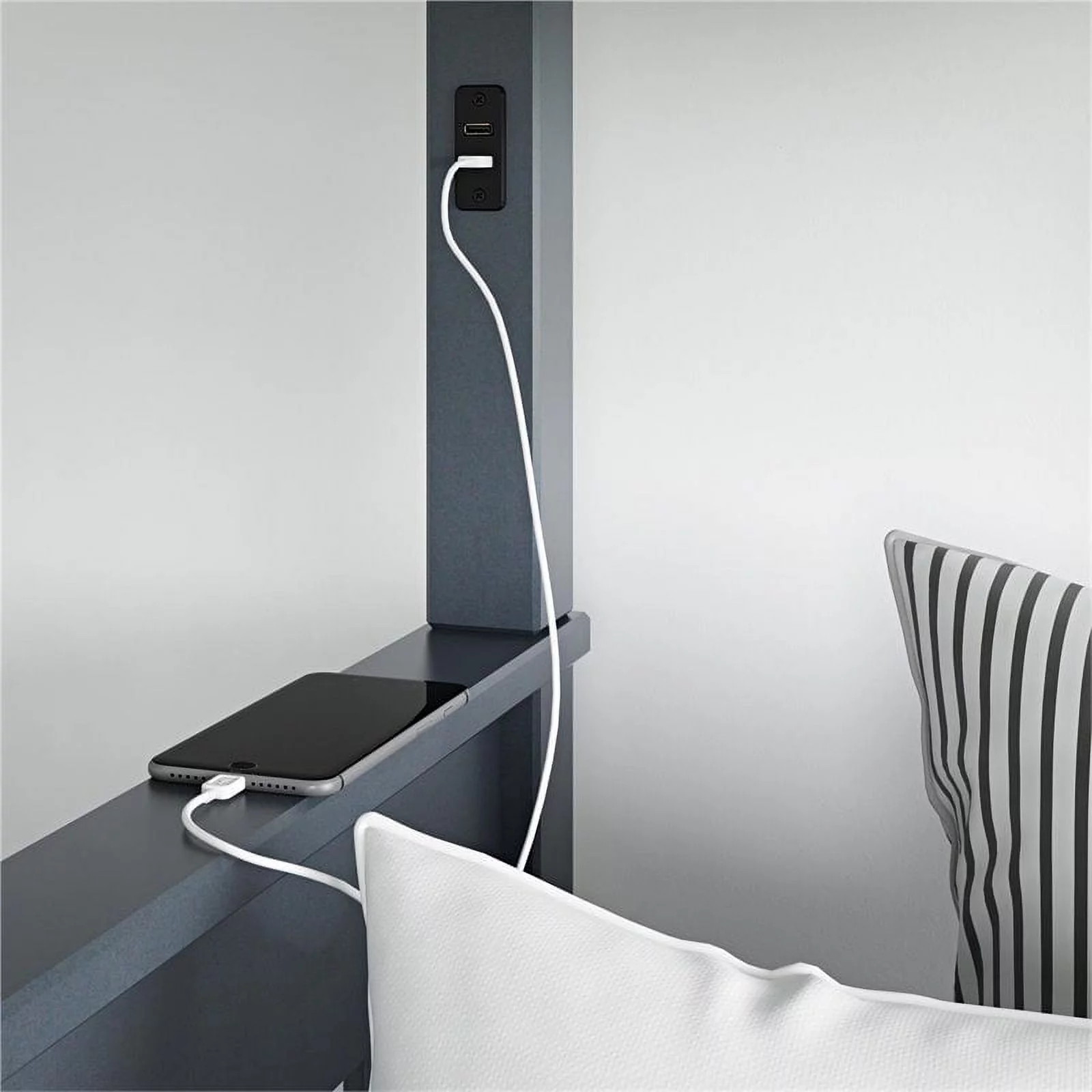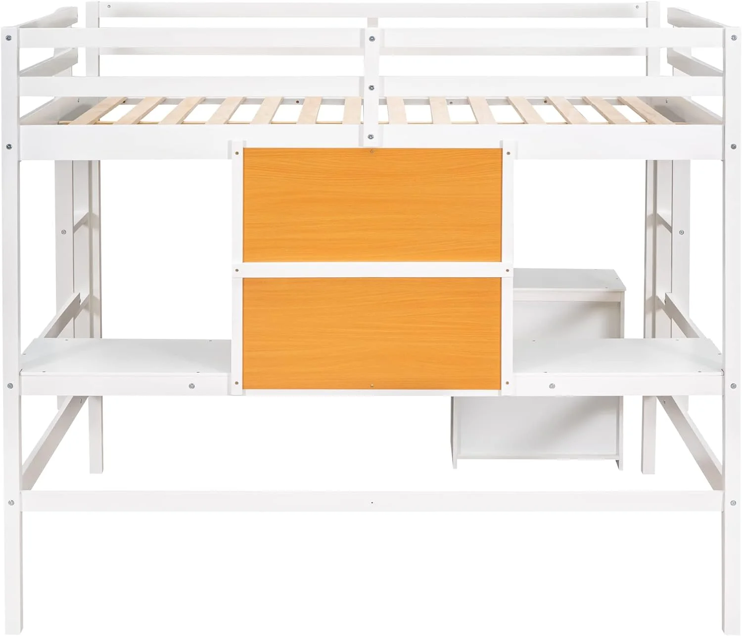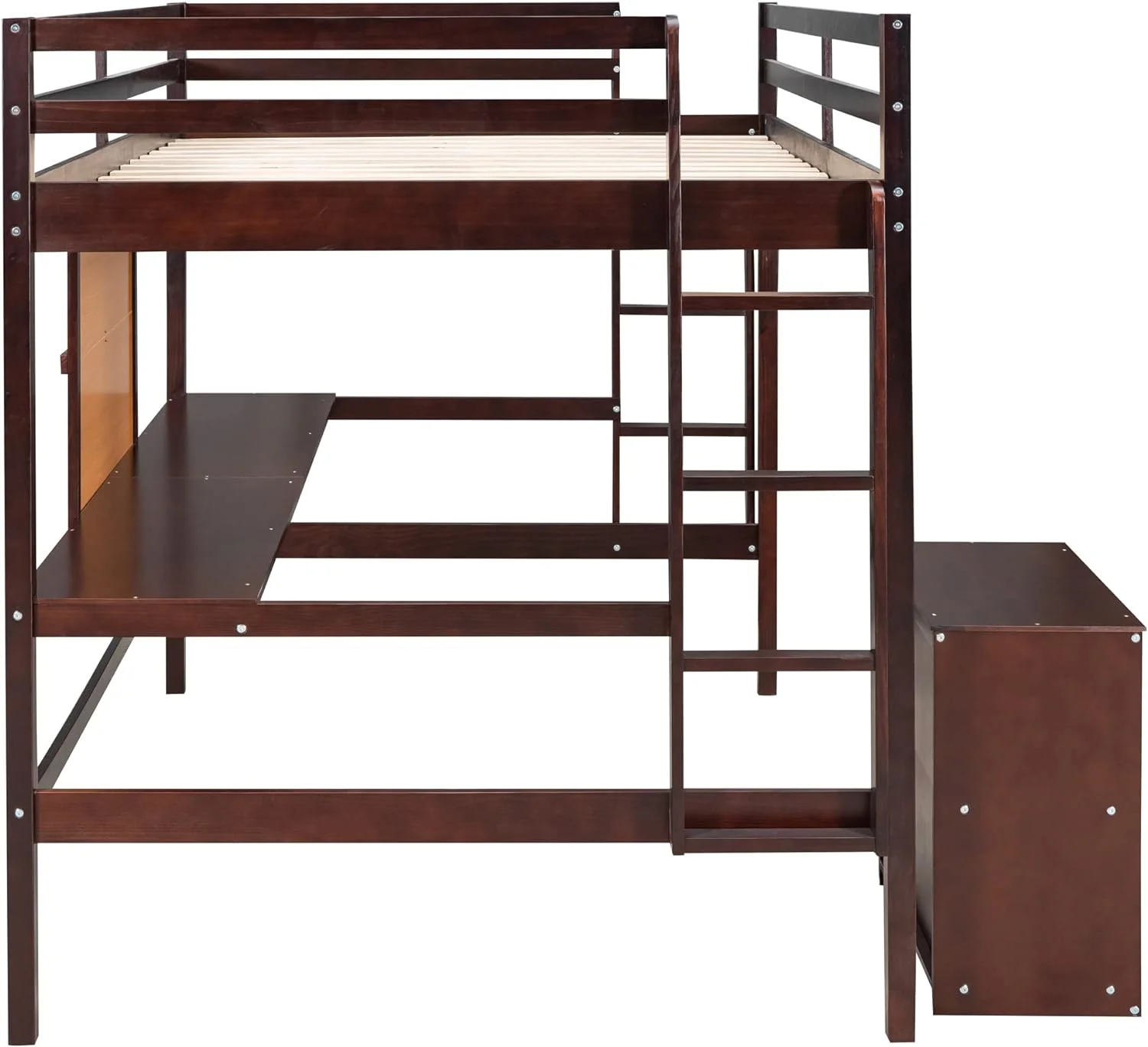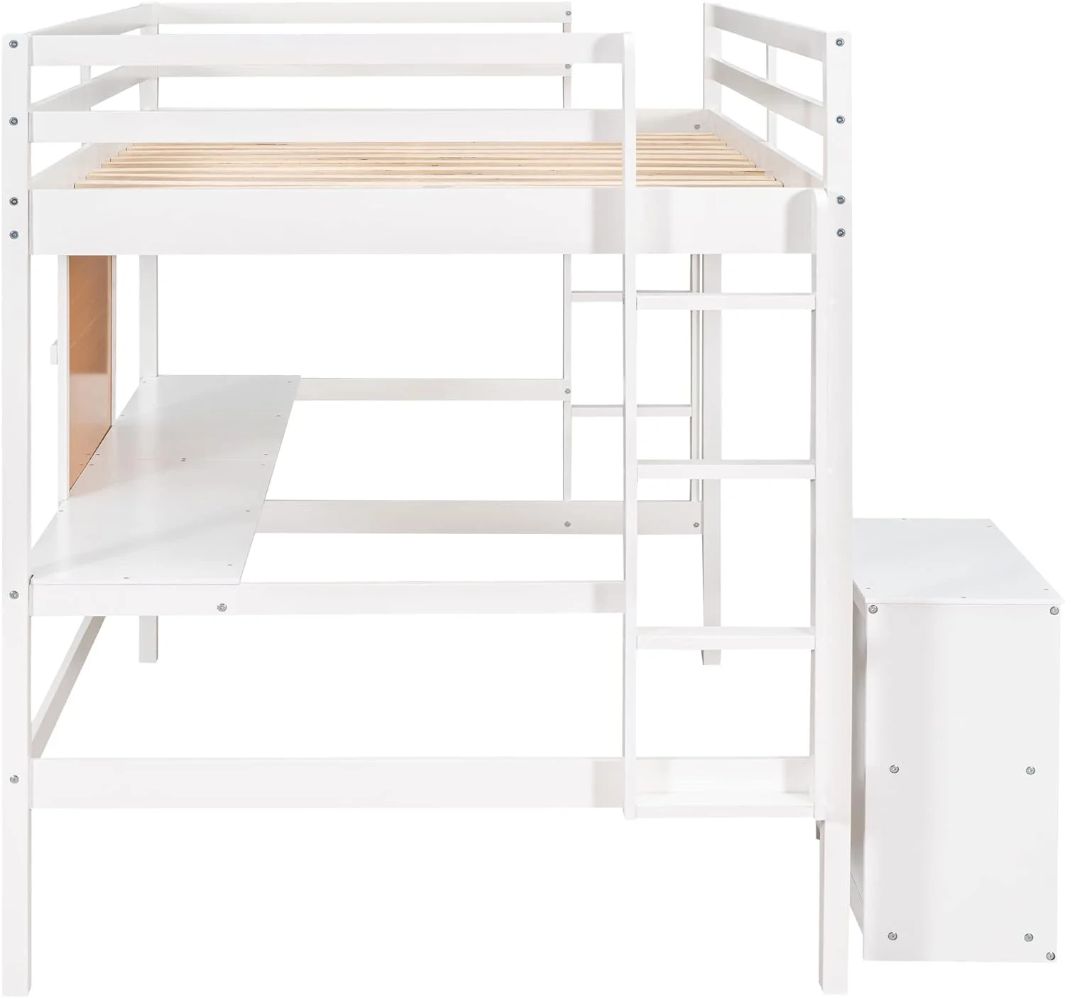 Lof Bed Wih Desk Ad Wriig Board, Wood Size Lof Bed Wih Desk & 2 Drawers Cabie Udereah, Lof Bed For Kids, Boys,Girls,ees(,Grey)