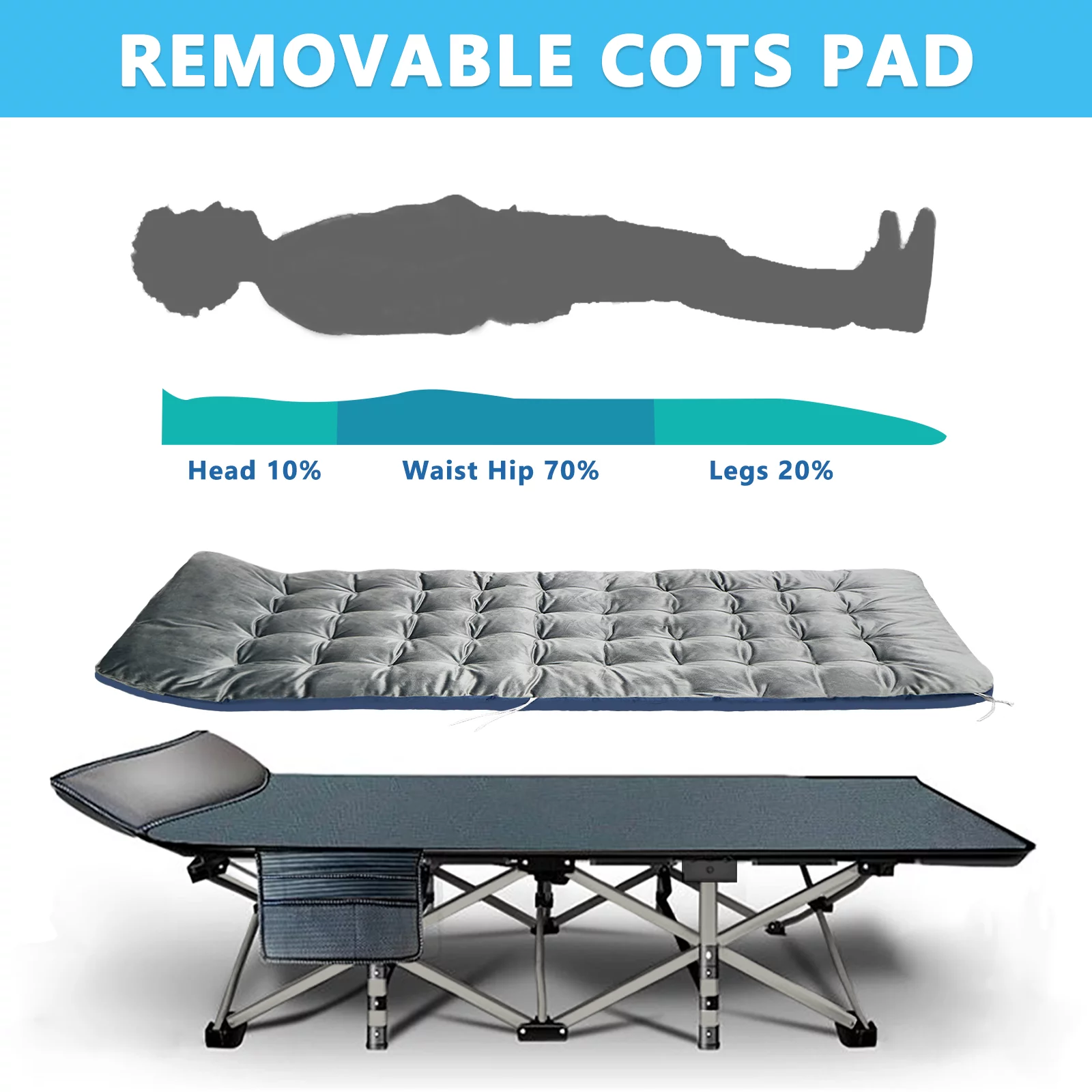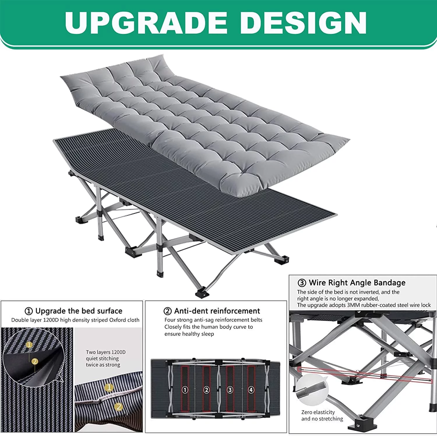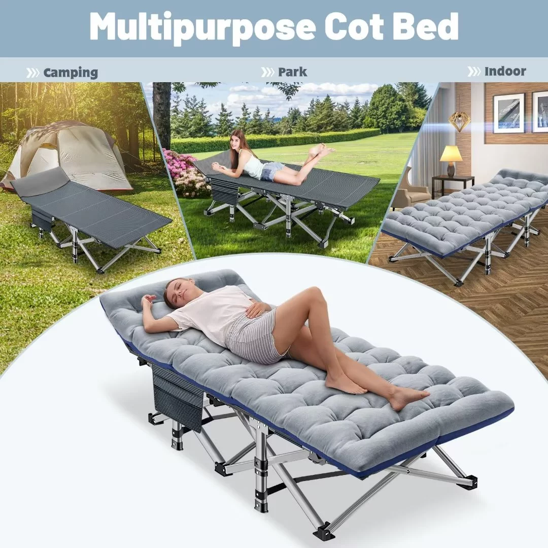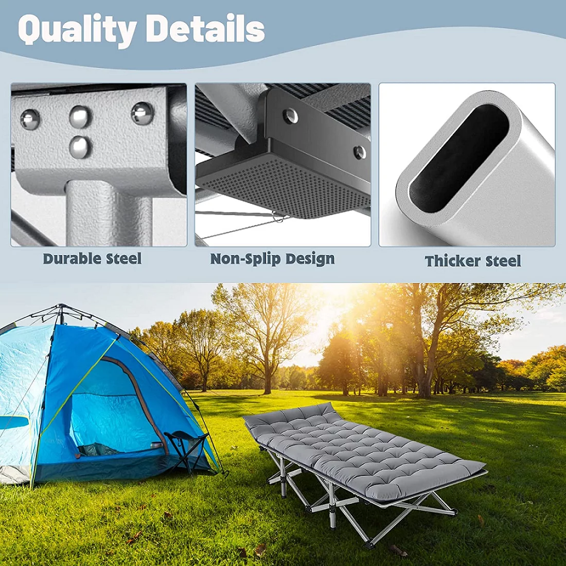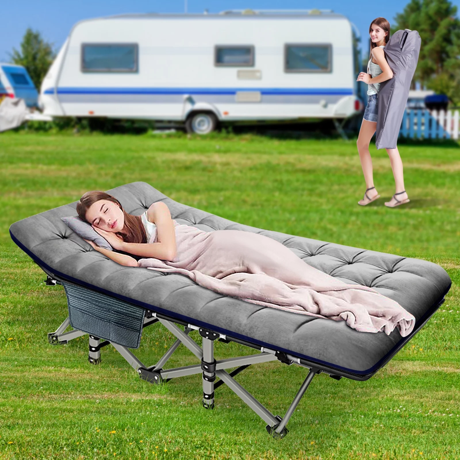 Ficisog Adult Folding Camping Cot ,Folding Cot Bed with Mattress& Carry Bag, Supports 880 lbs