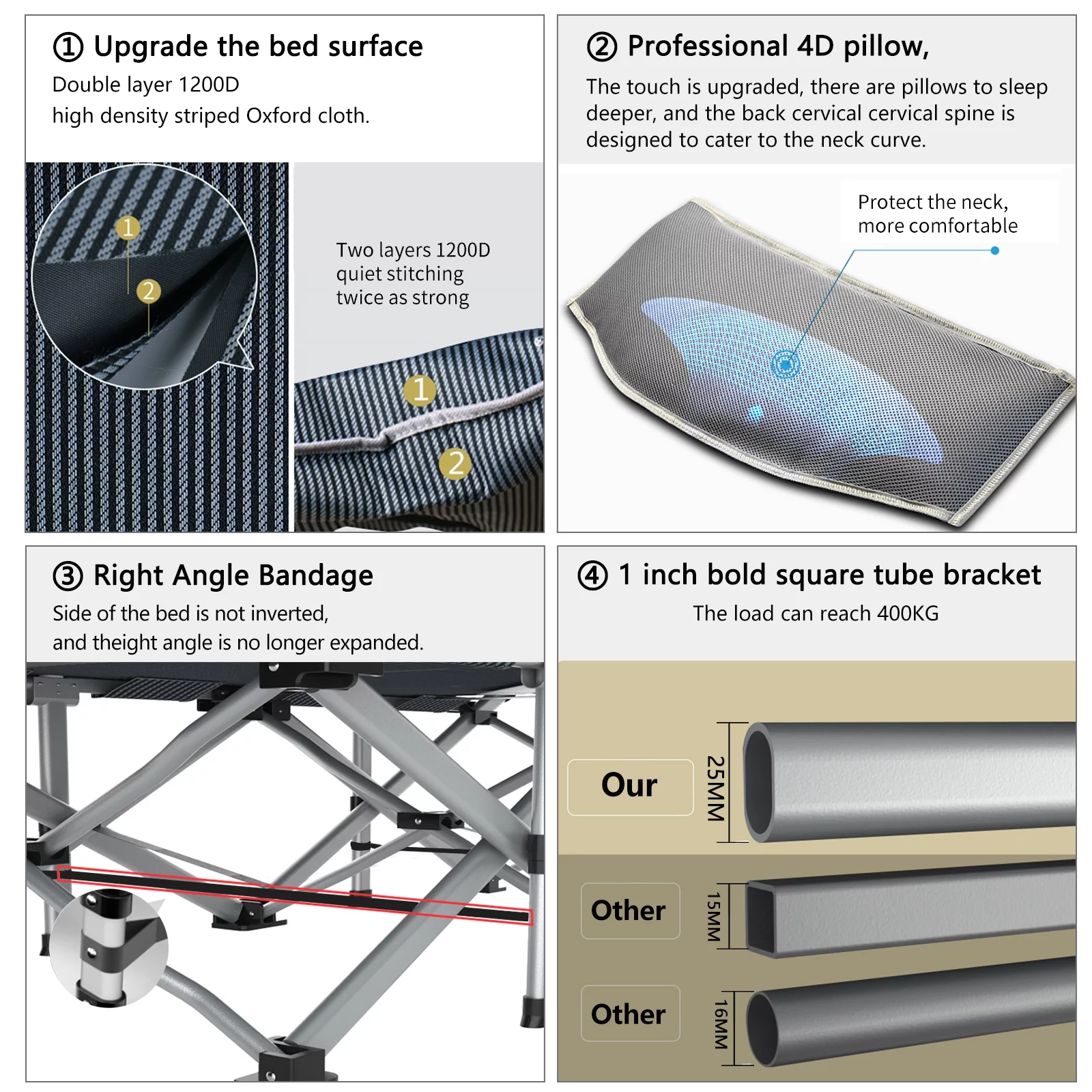 FICISOG Folding Camping Cots for Adults 900lbs Double Layer Oxford Sleeping Cots with Carry Bag