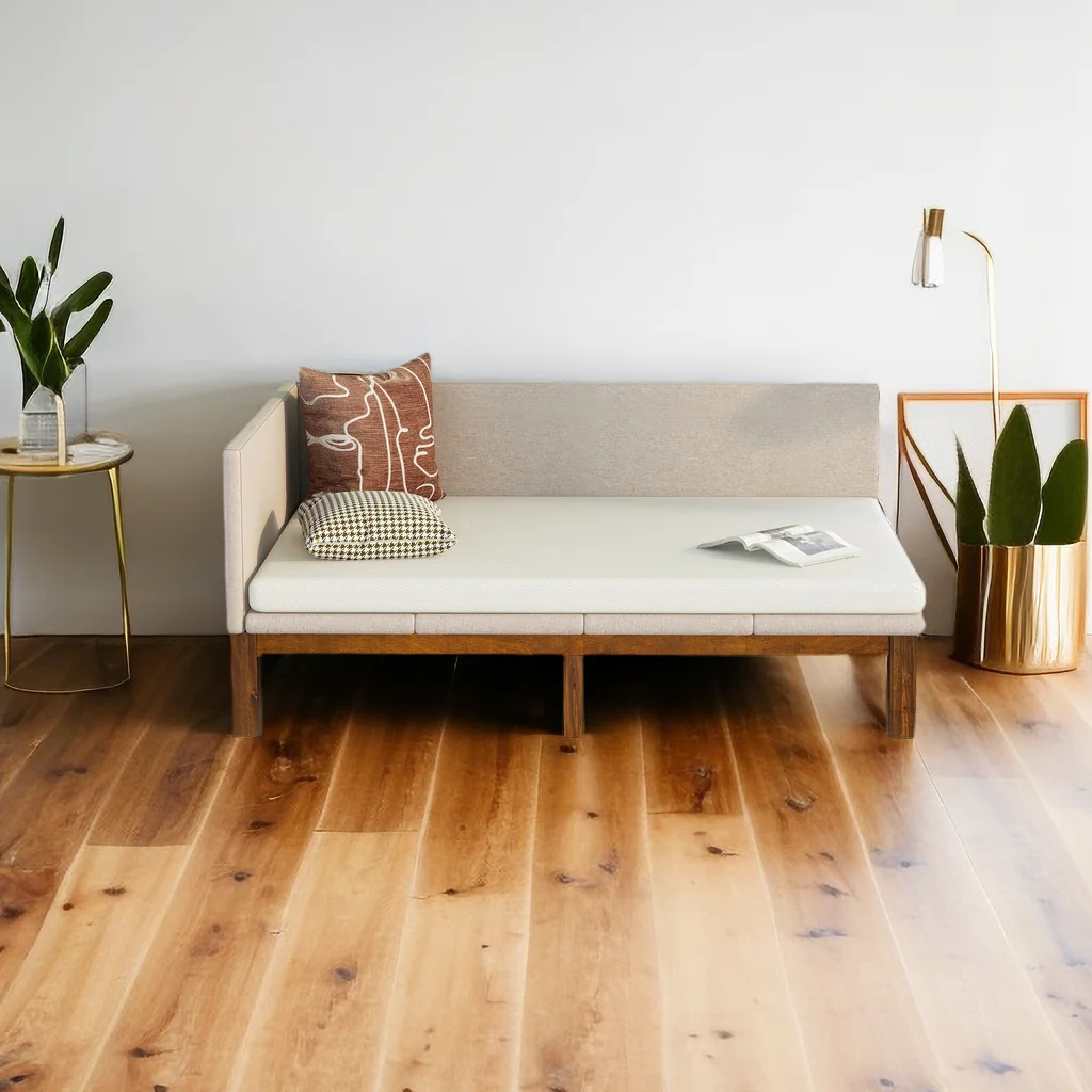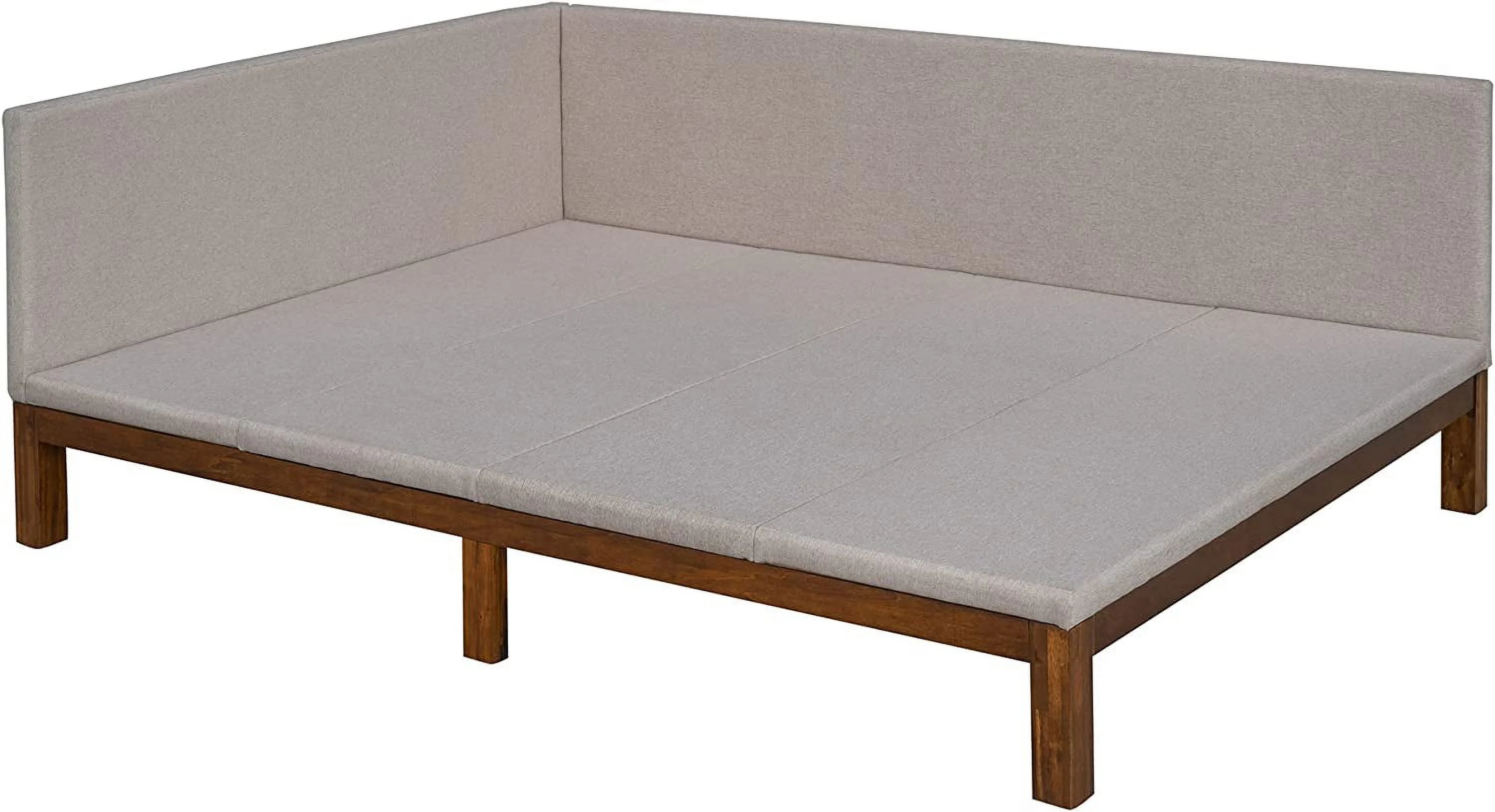 Upholstered Daybed Full Size Corner Daybed Frame with Cushion Modern Linen Sofa Bed for Living Room Guest Room