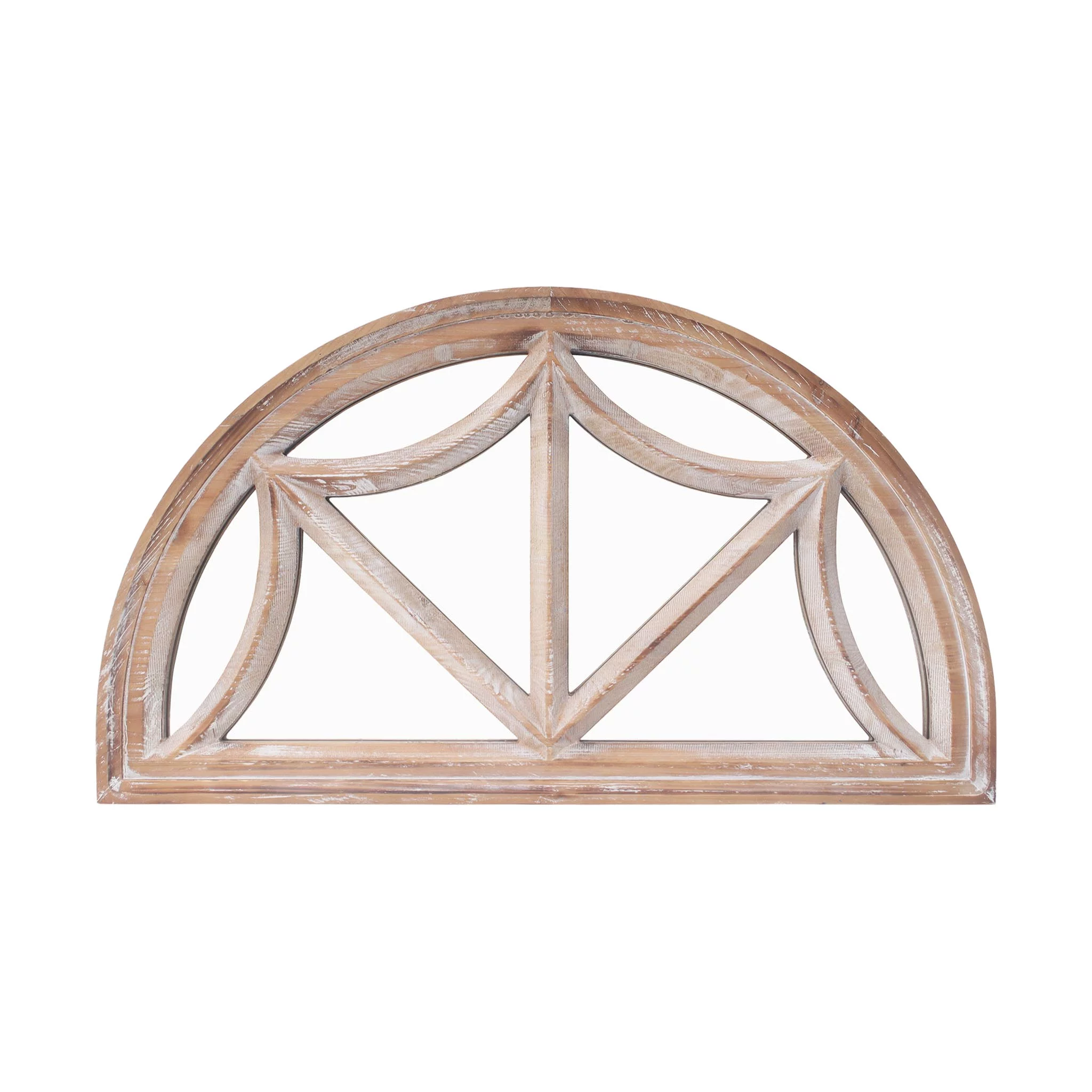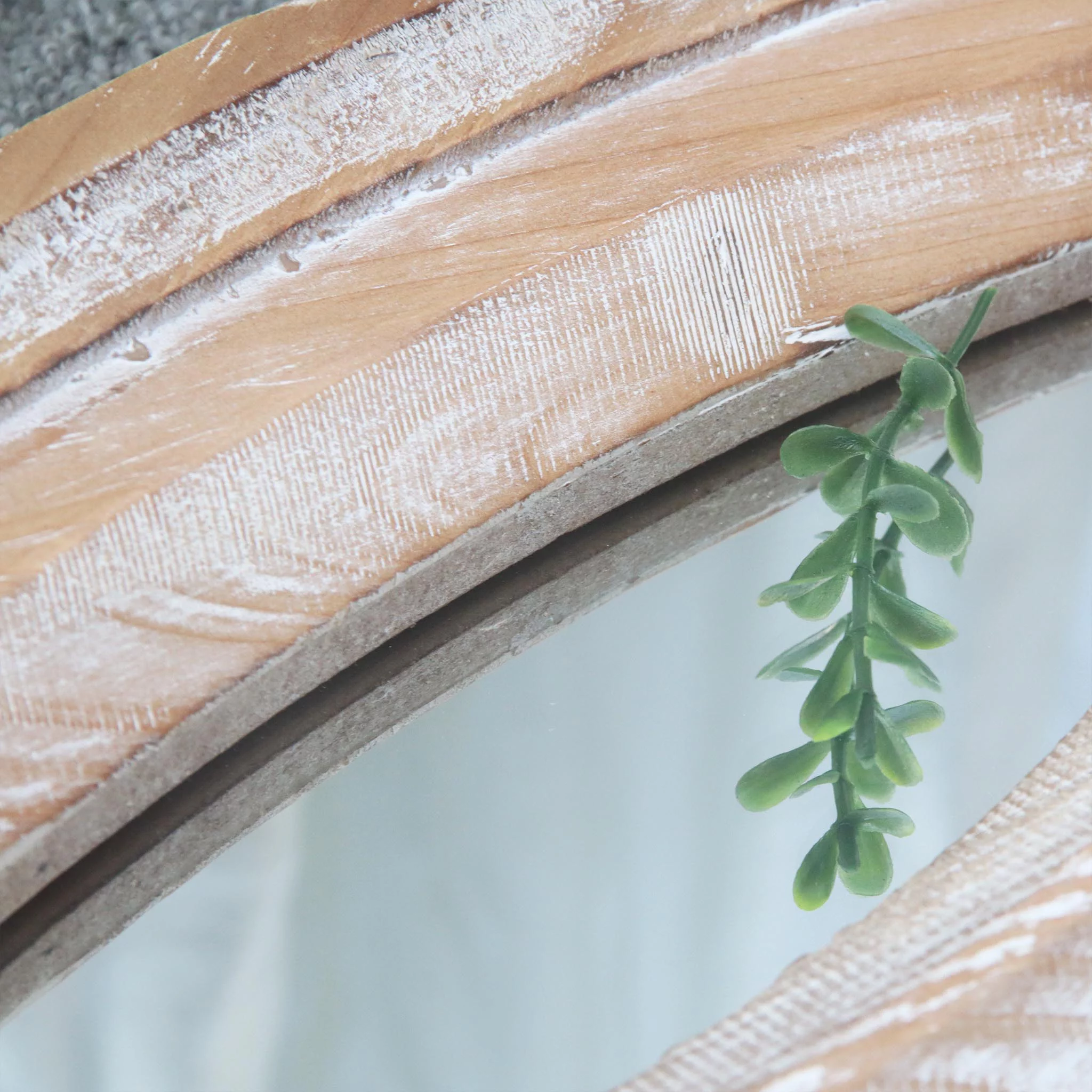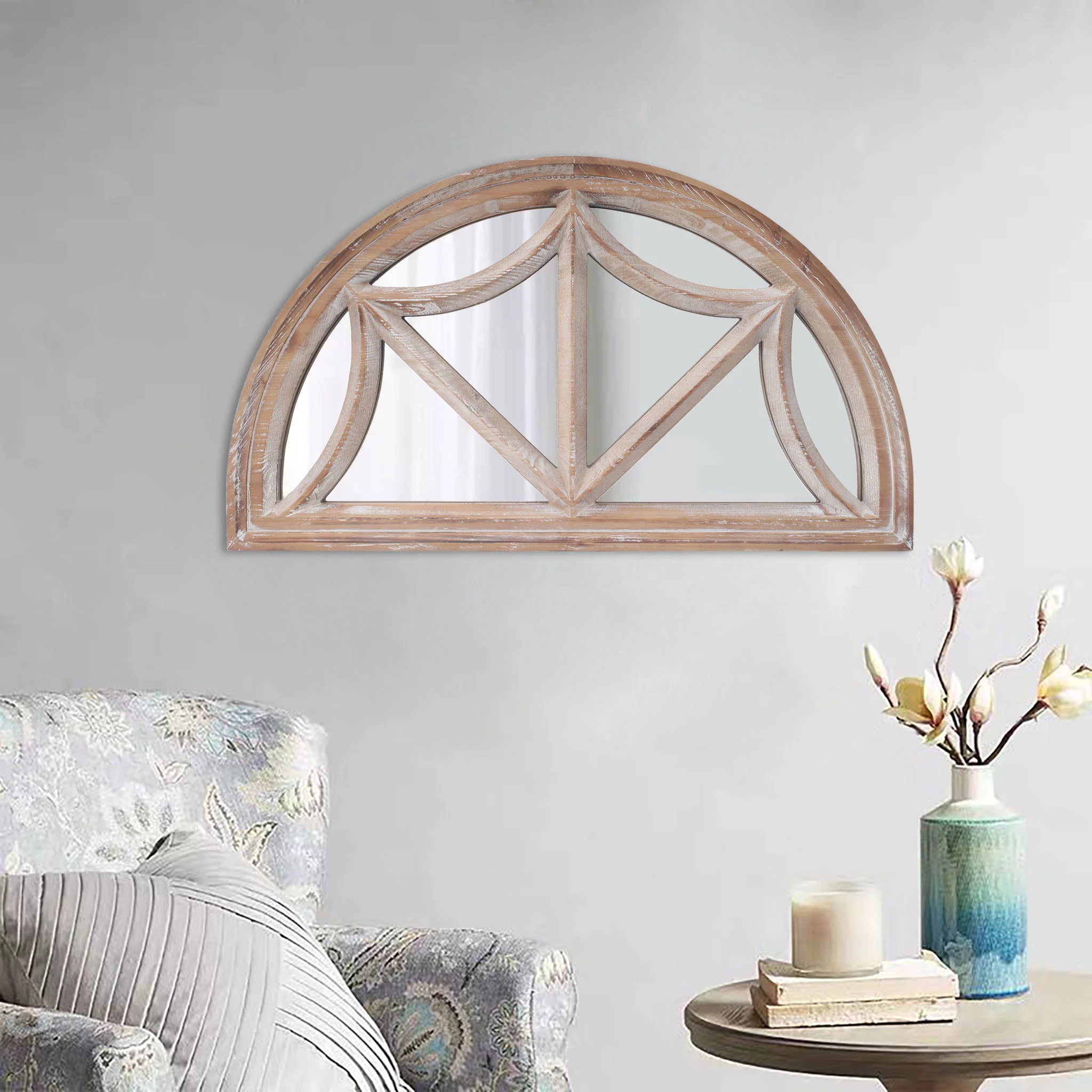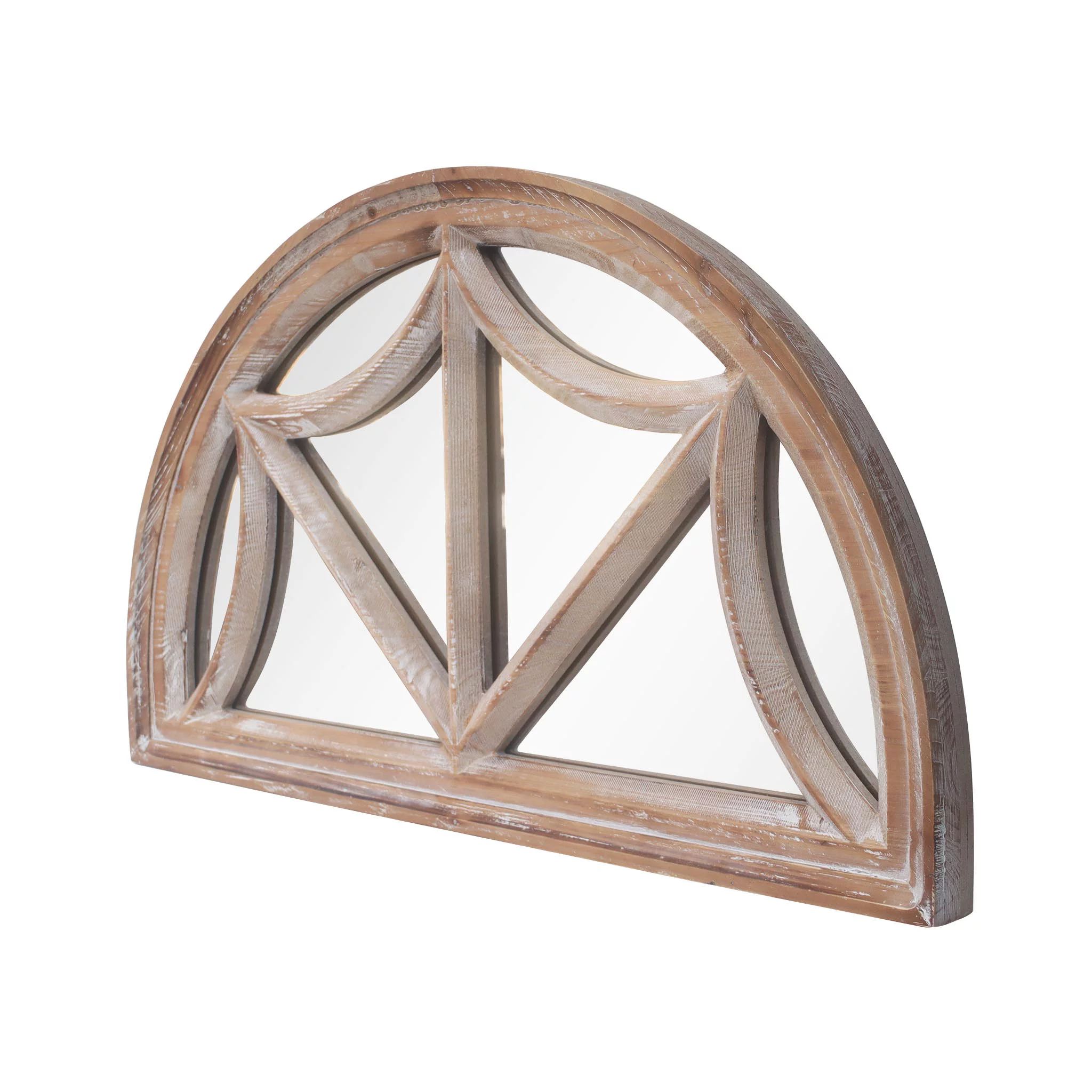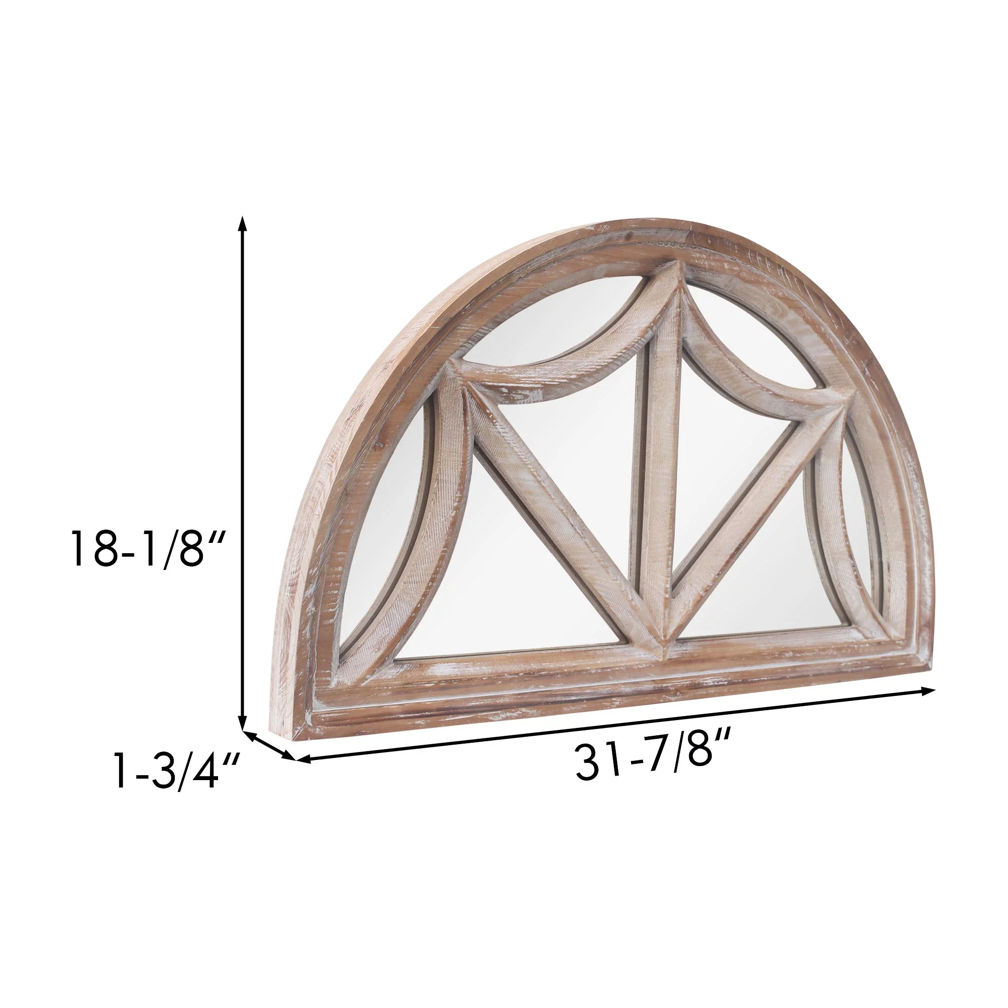 Parisloft Arched Framhouse Carved Wood Wall Mirror, Natural Wood and a Slight White, 31.875"W x 18.125"H
