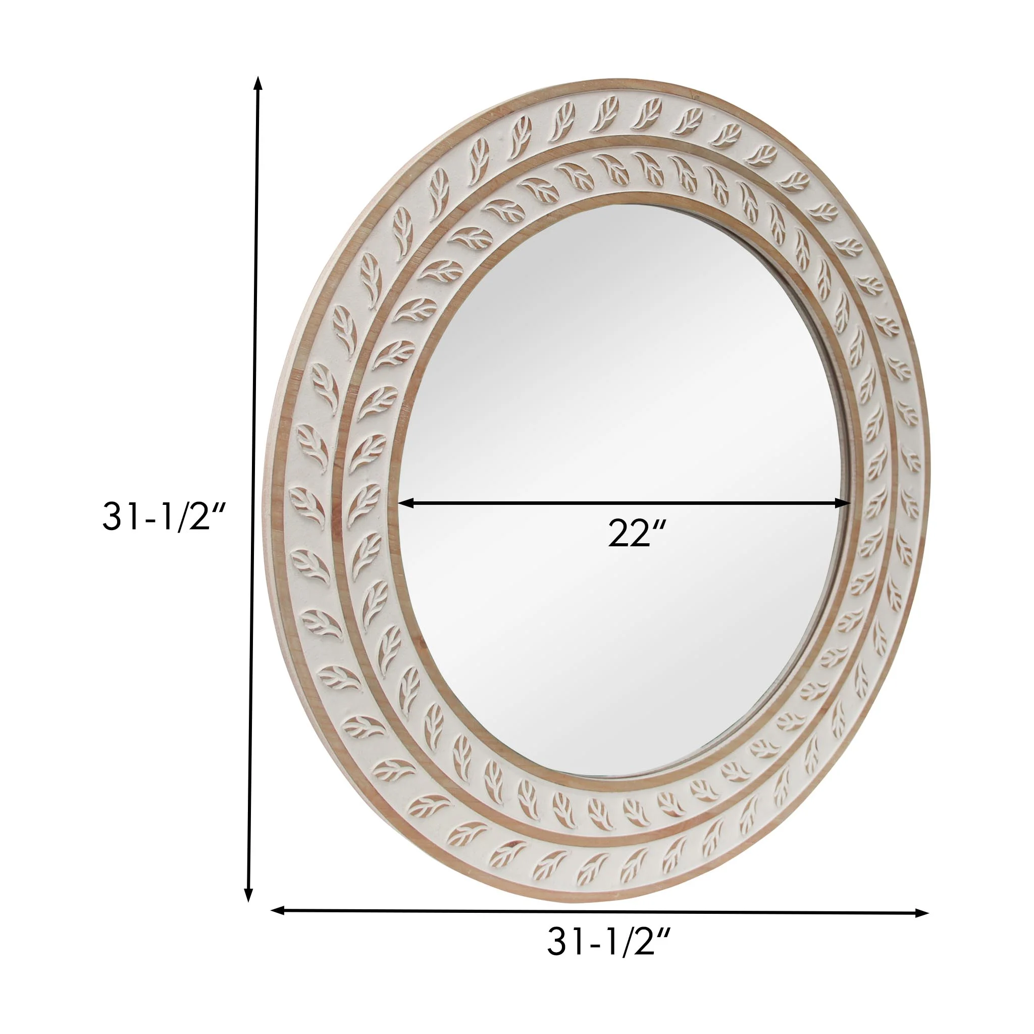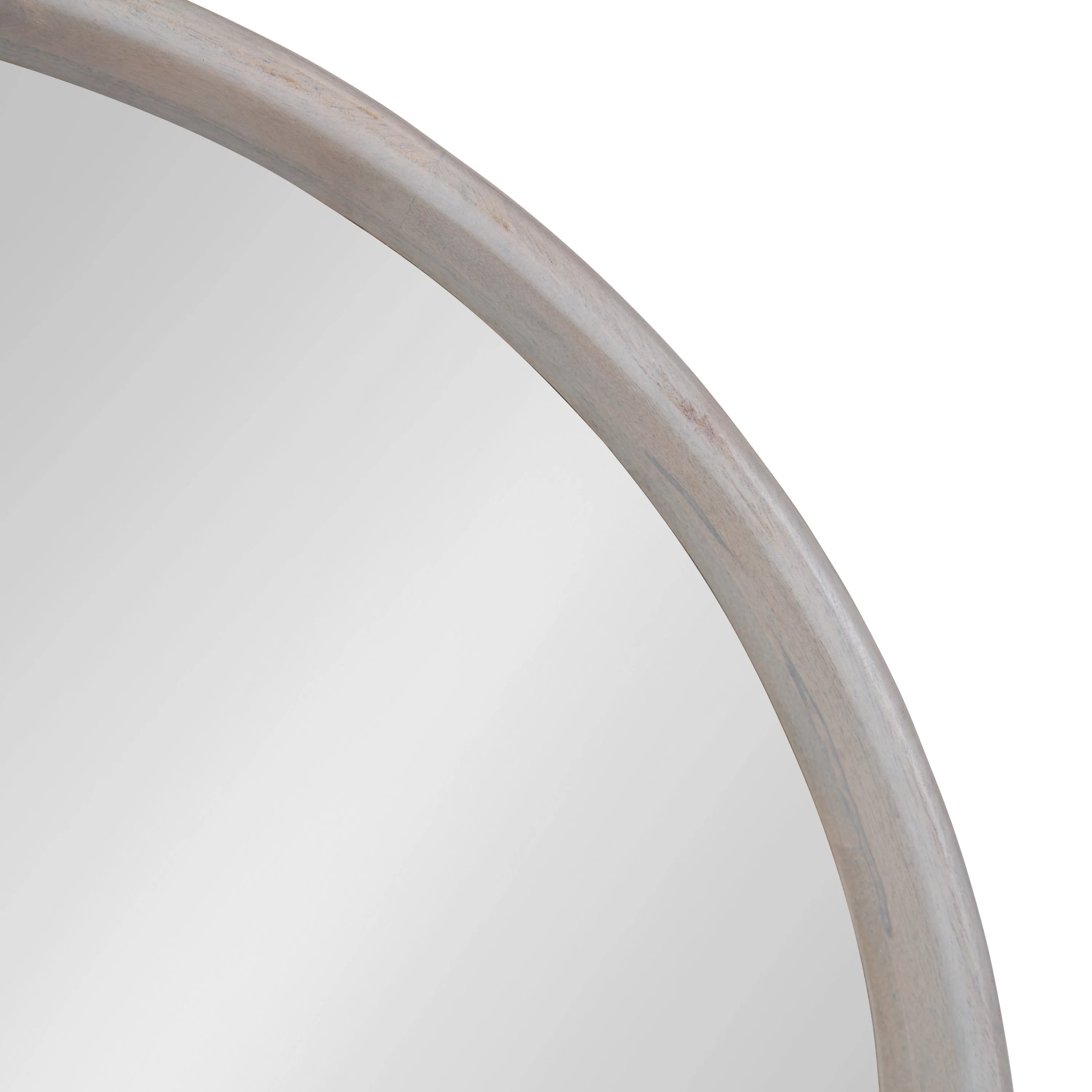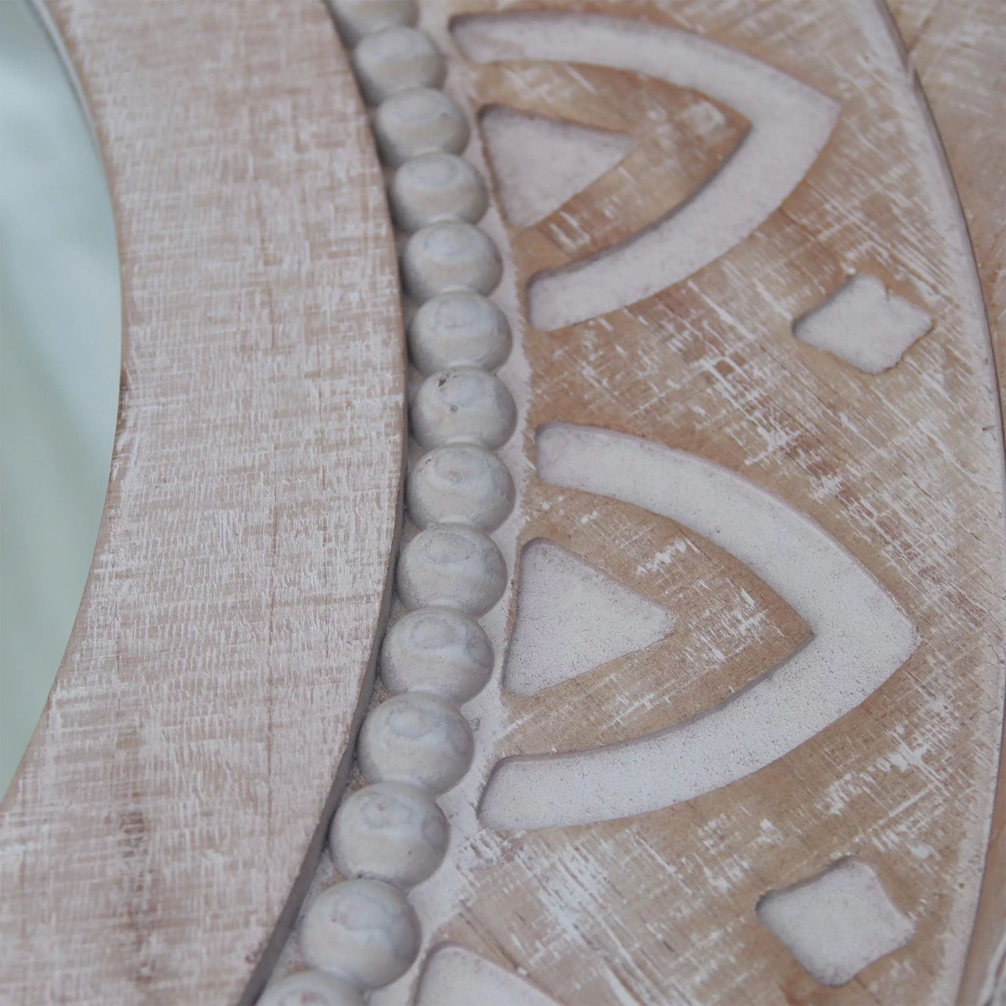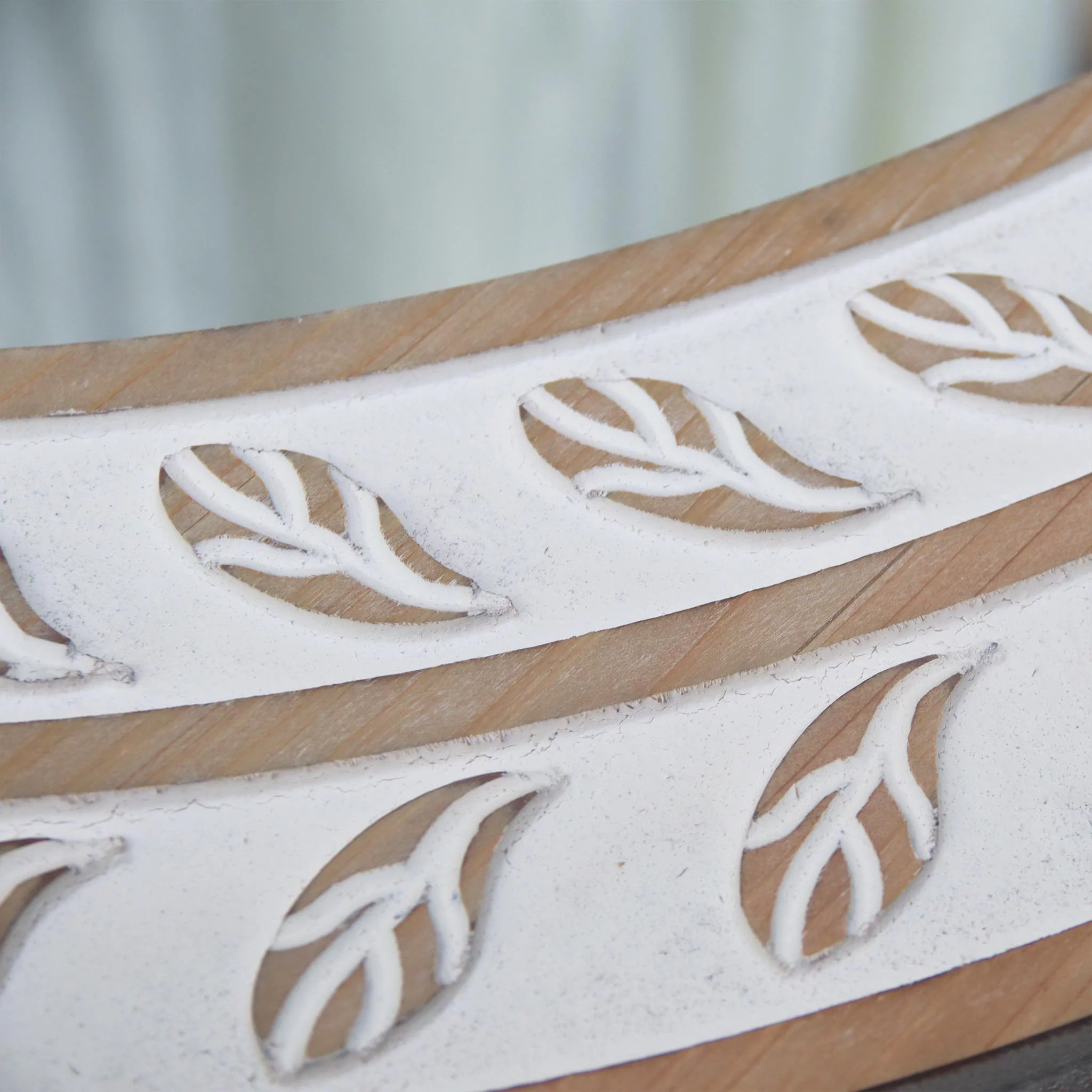 Parisloft Arched Framhouse Carved Wood Wall Mirror, Natural Wood and a Slight White, 31.875"W x 18.125"H
