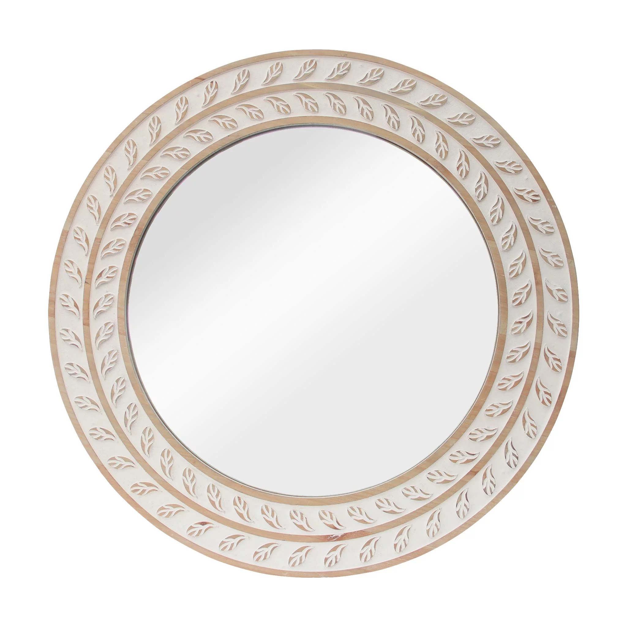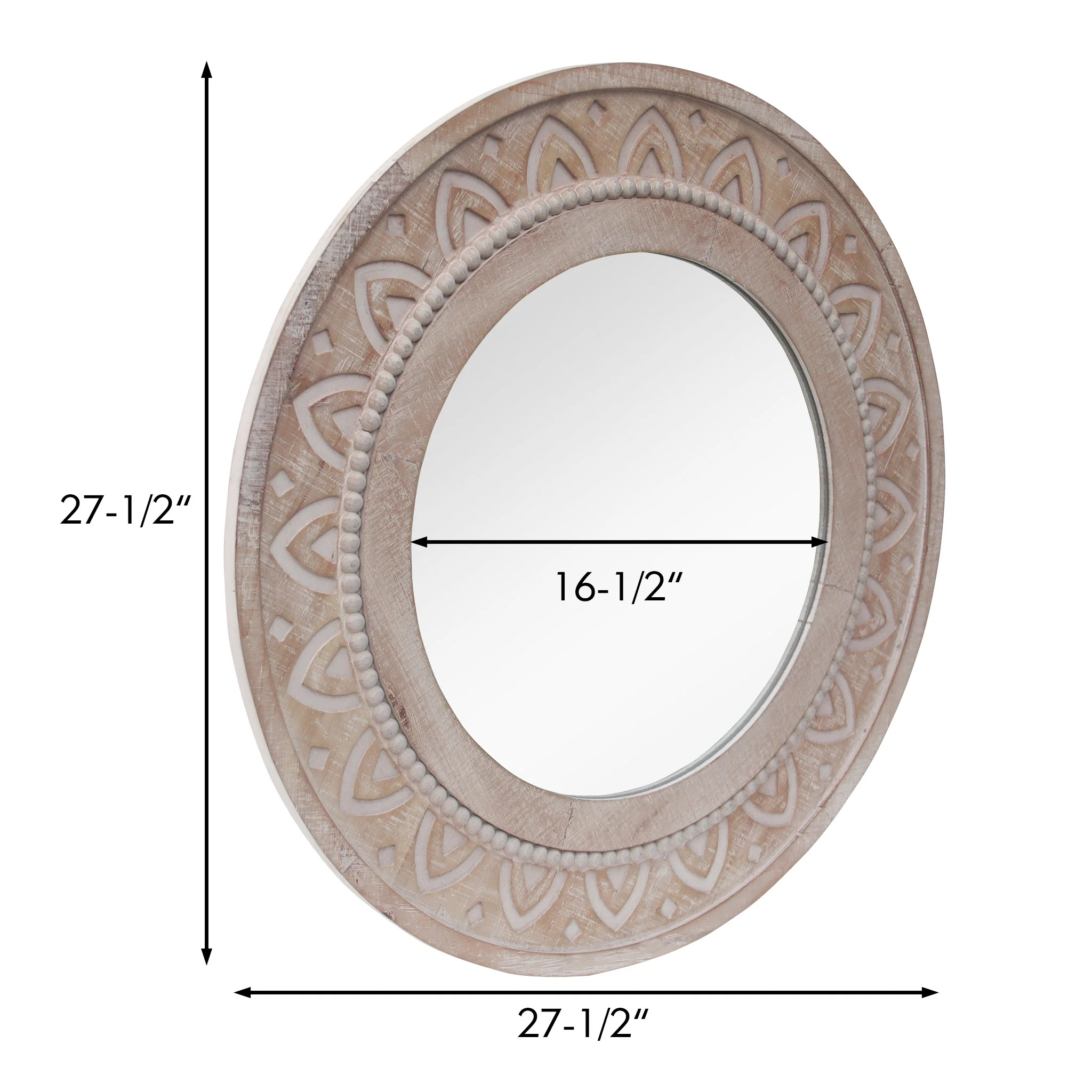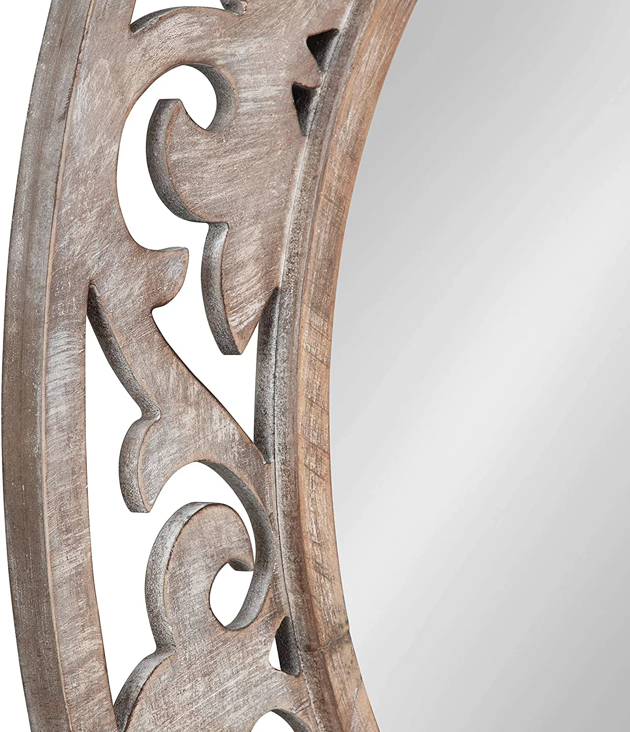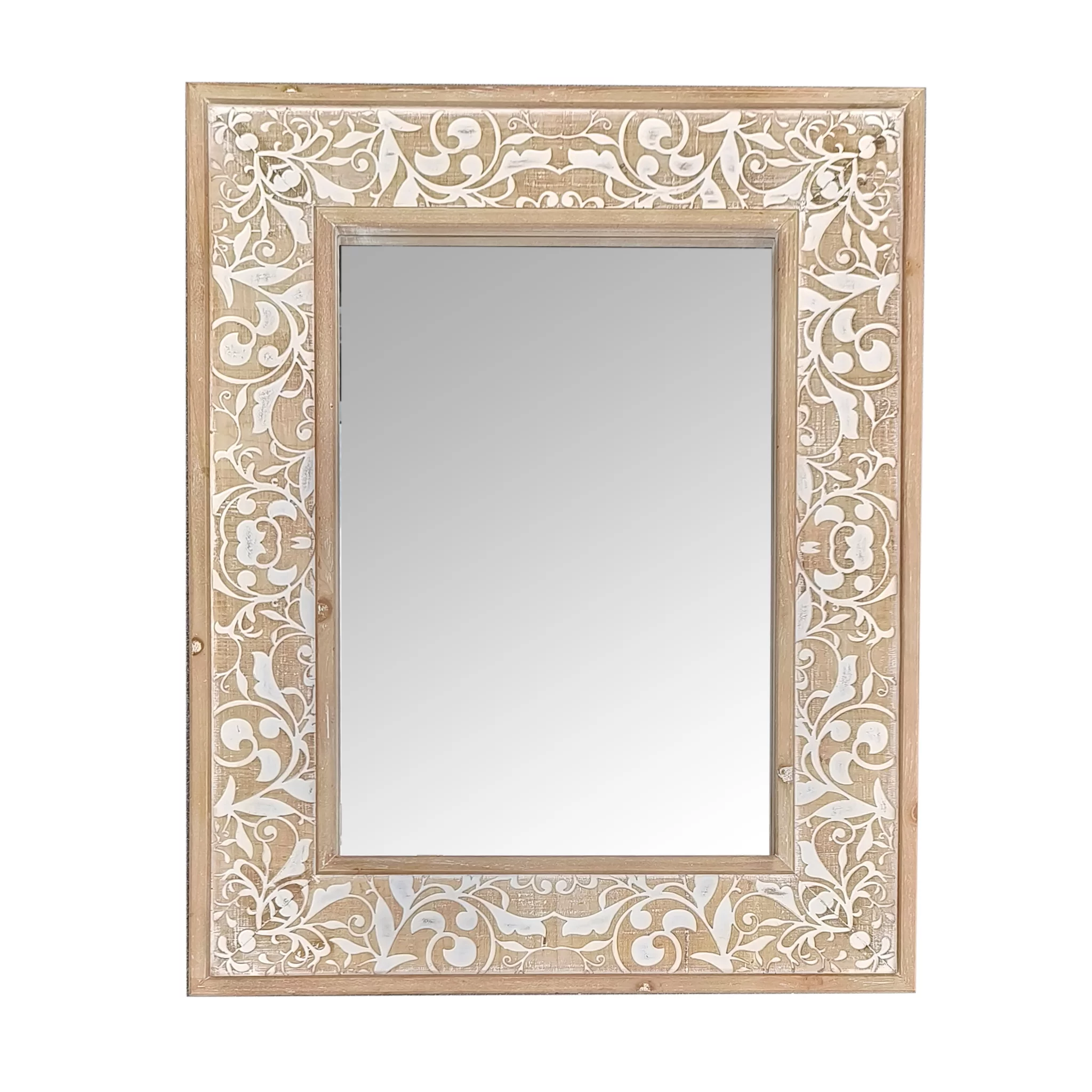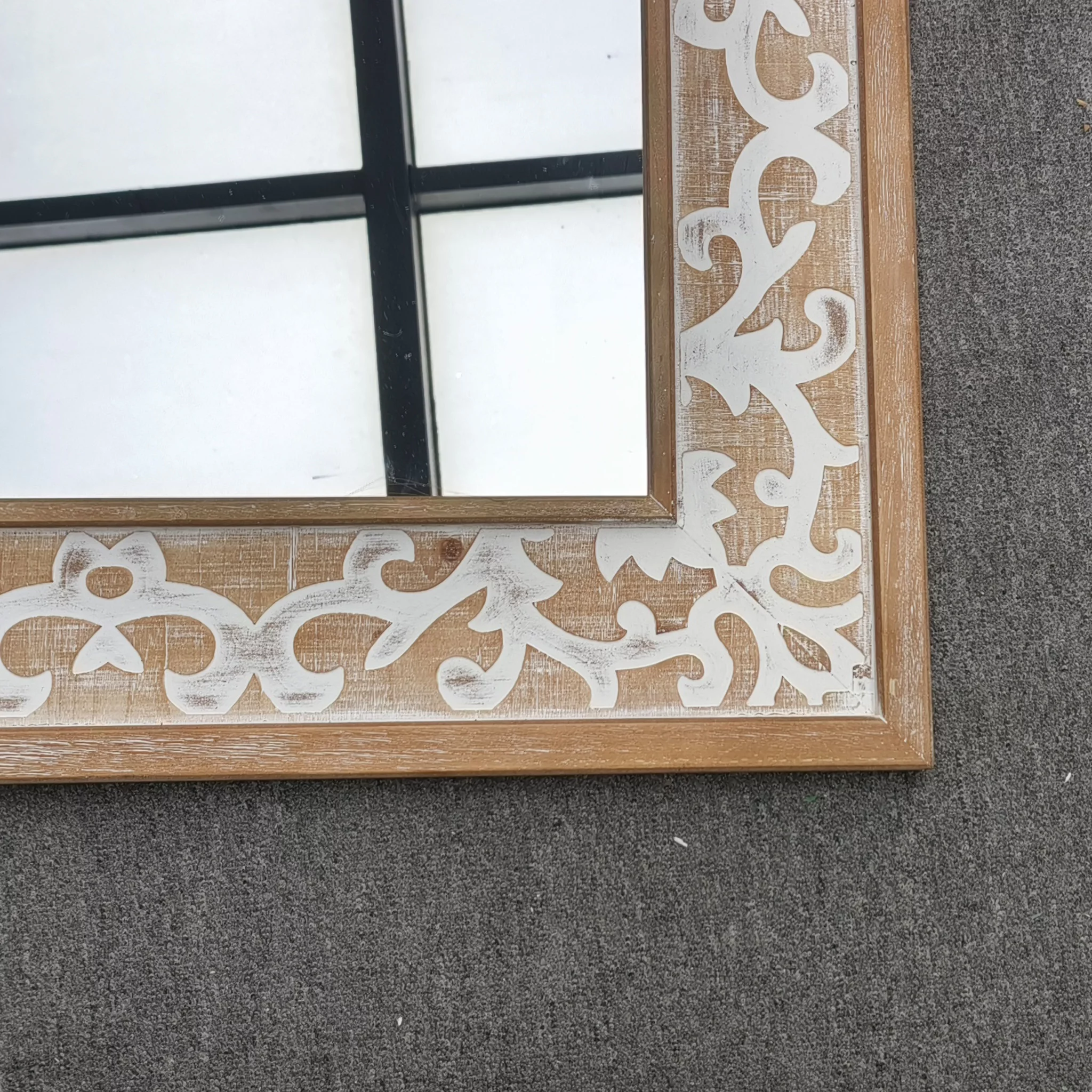 Parisloft Arched Framhouse Carved Wood Wall Mirror, Natural Wood and a Slight White, 31.875"W x 18.125"H