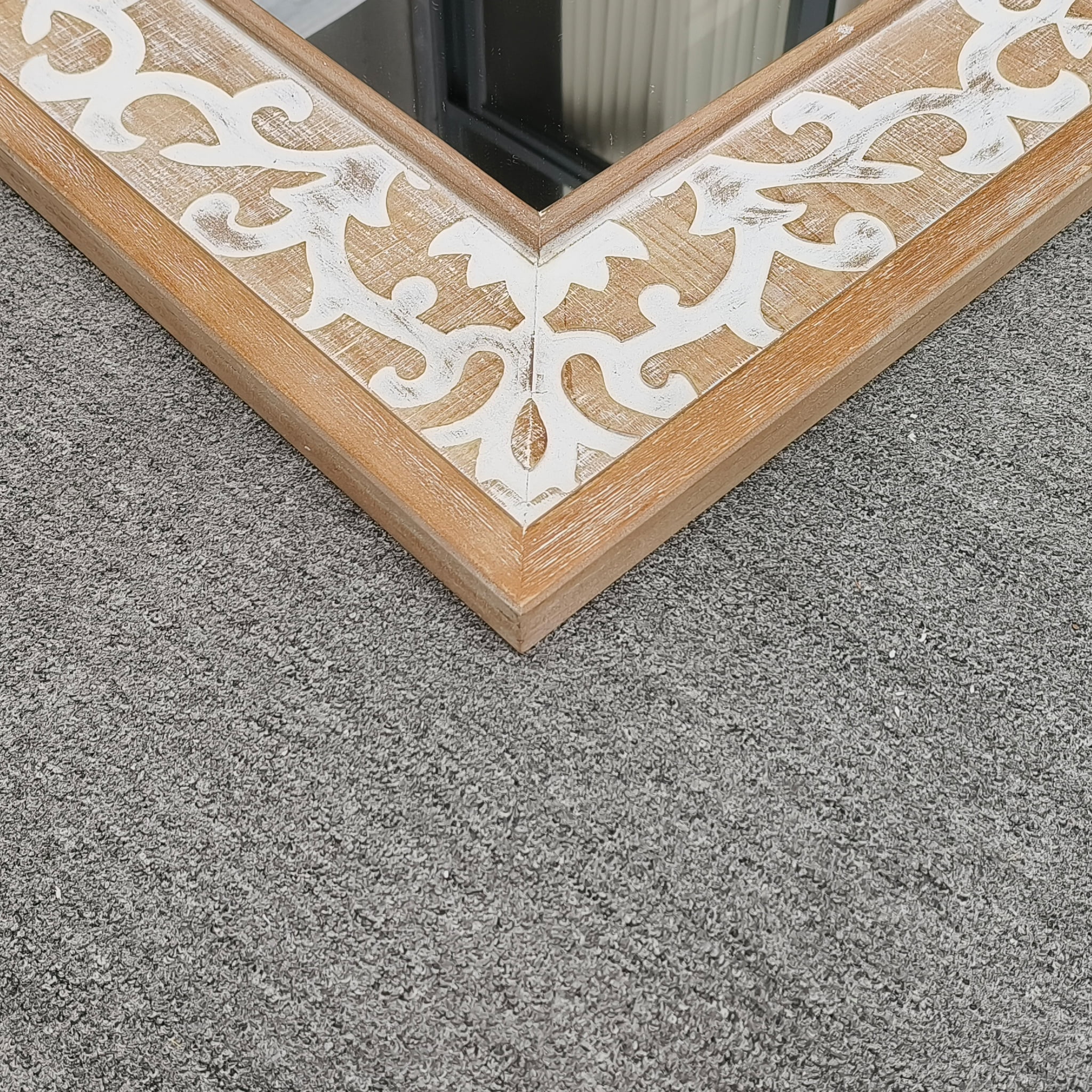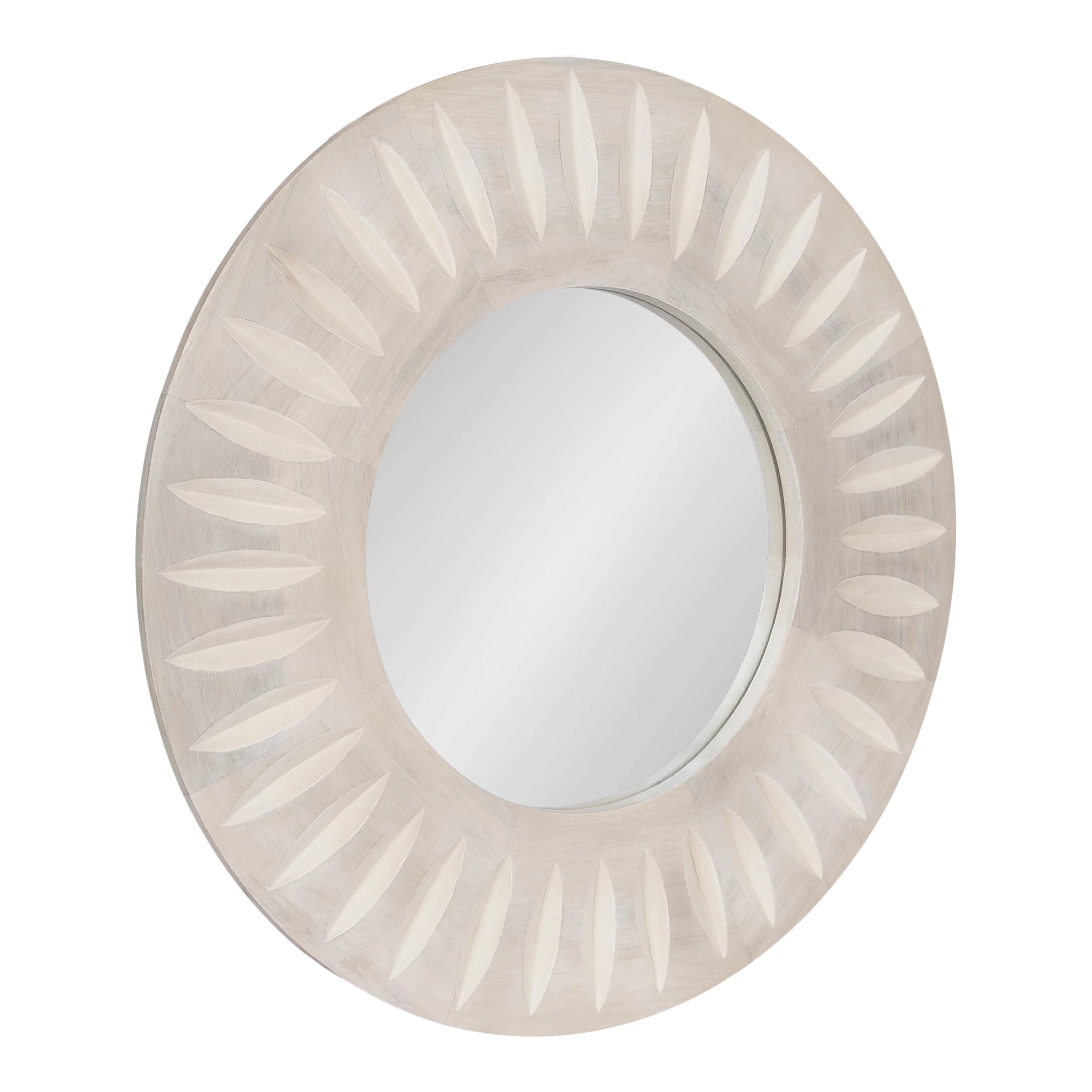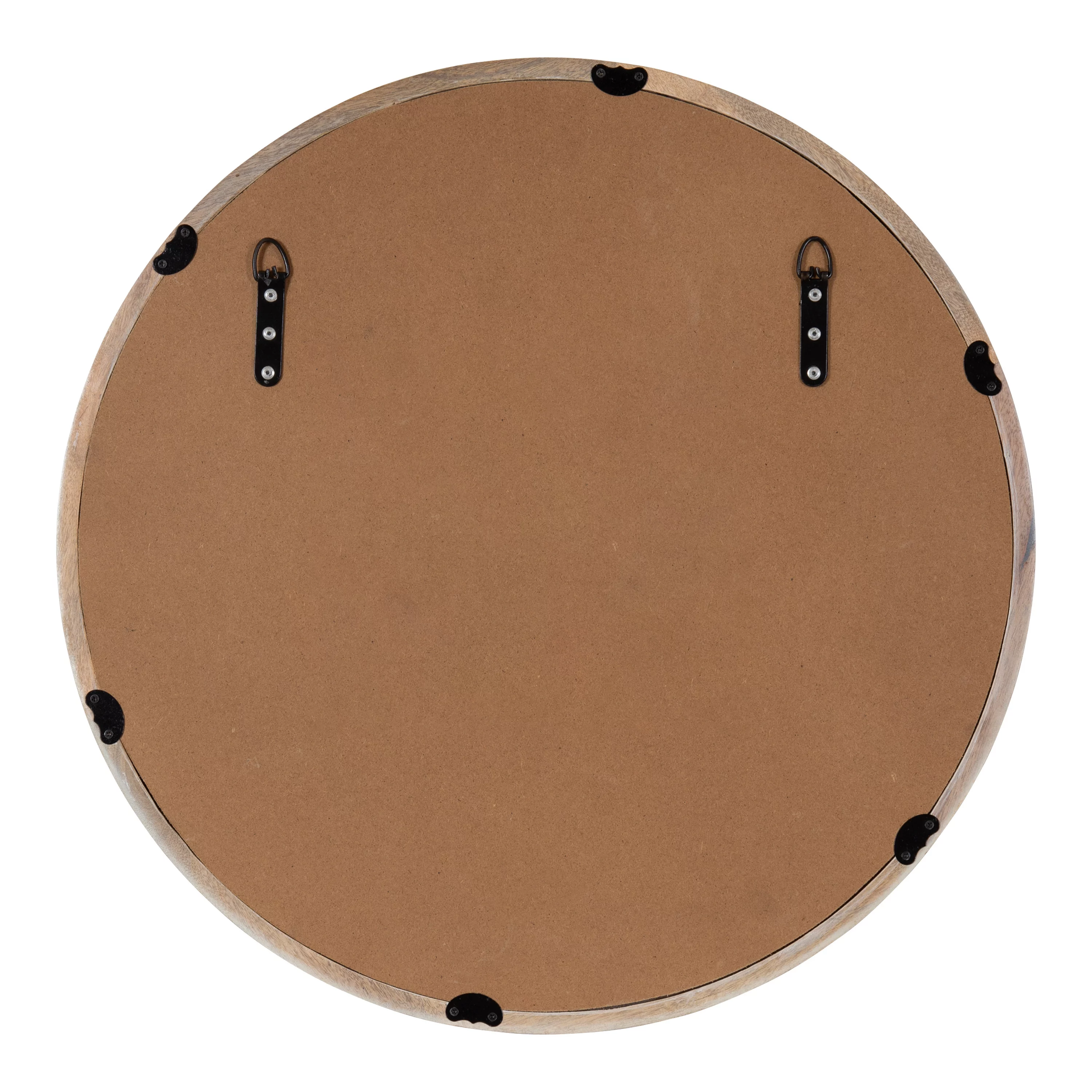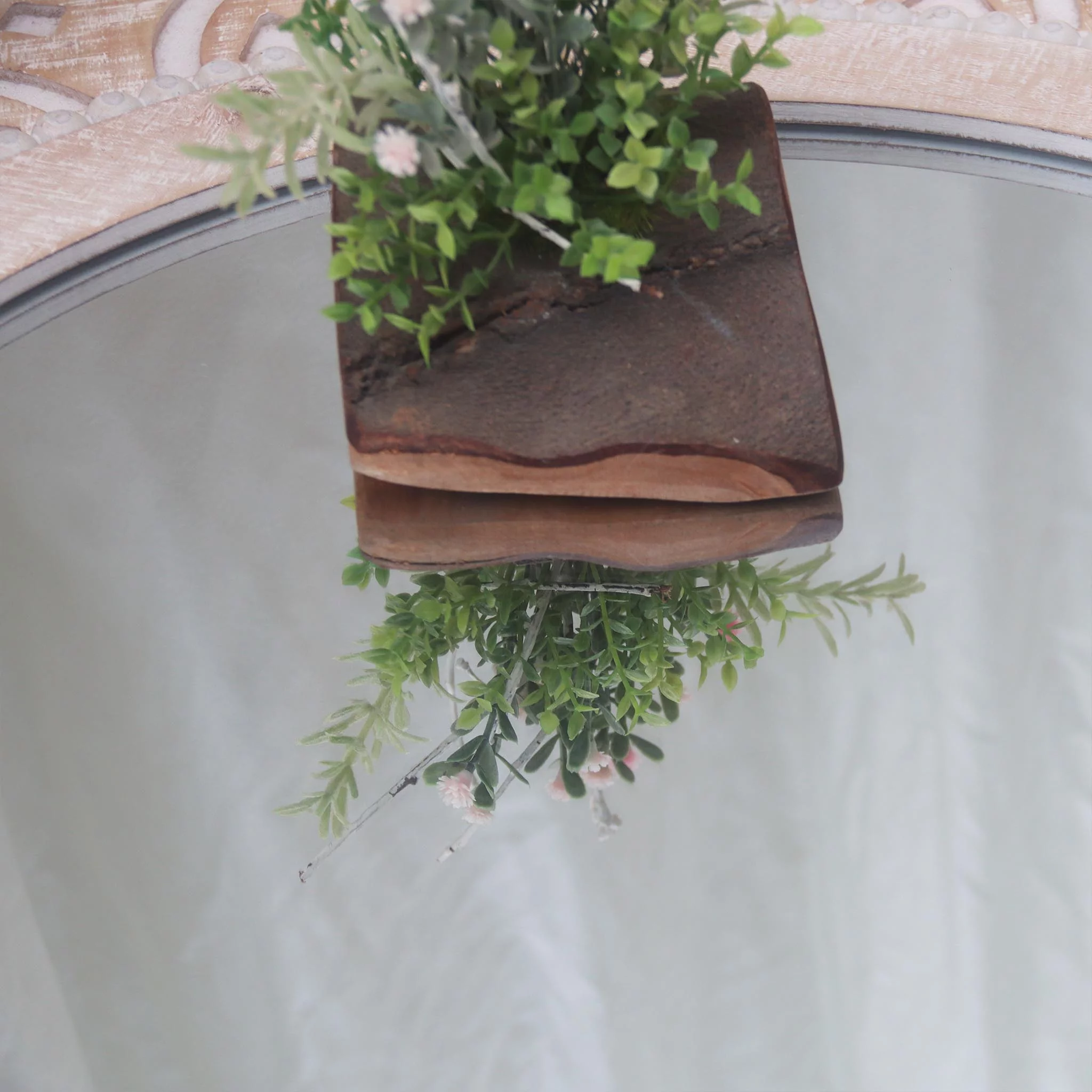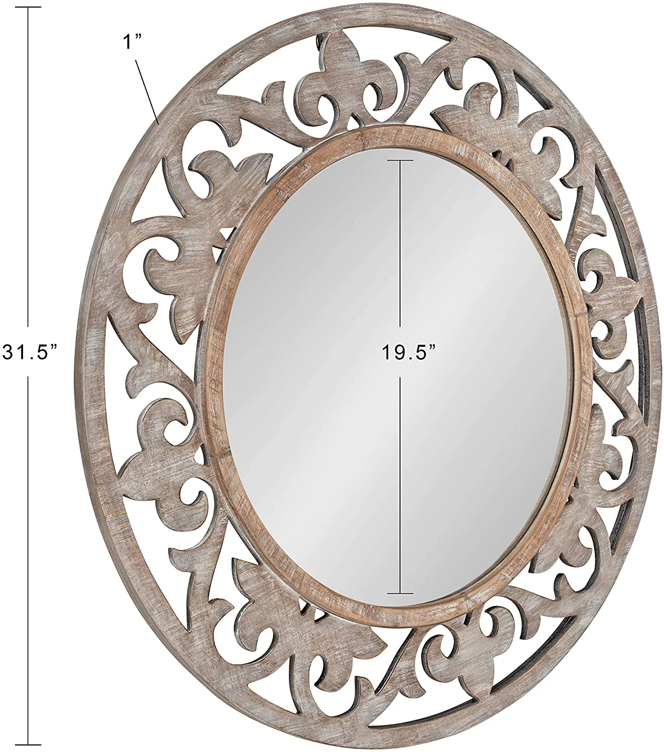 Parisloft Arched Framhouse Carved Wood Wall Mirror, Natural Wood and a Slight White, 31.875"W x 18.125"H