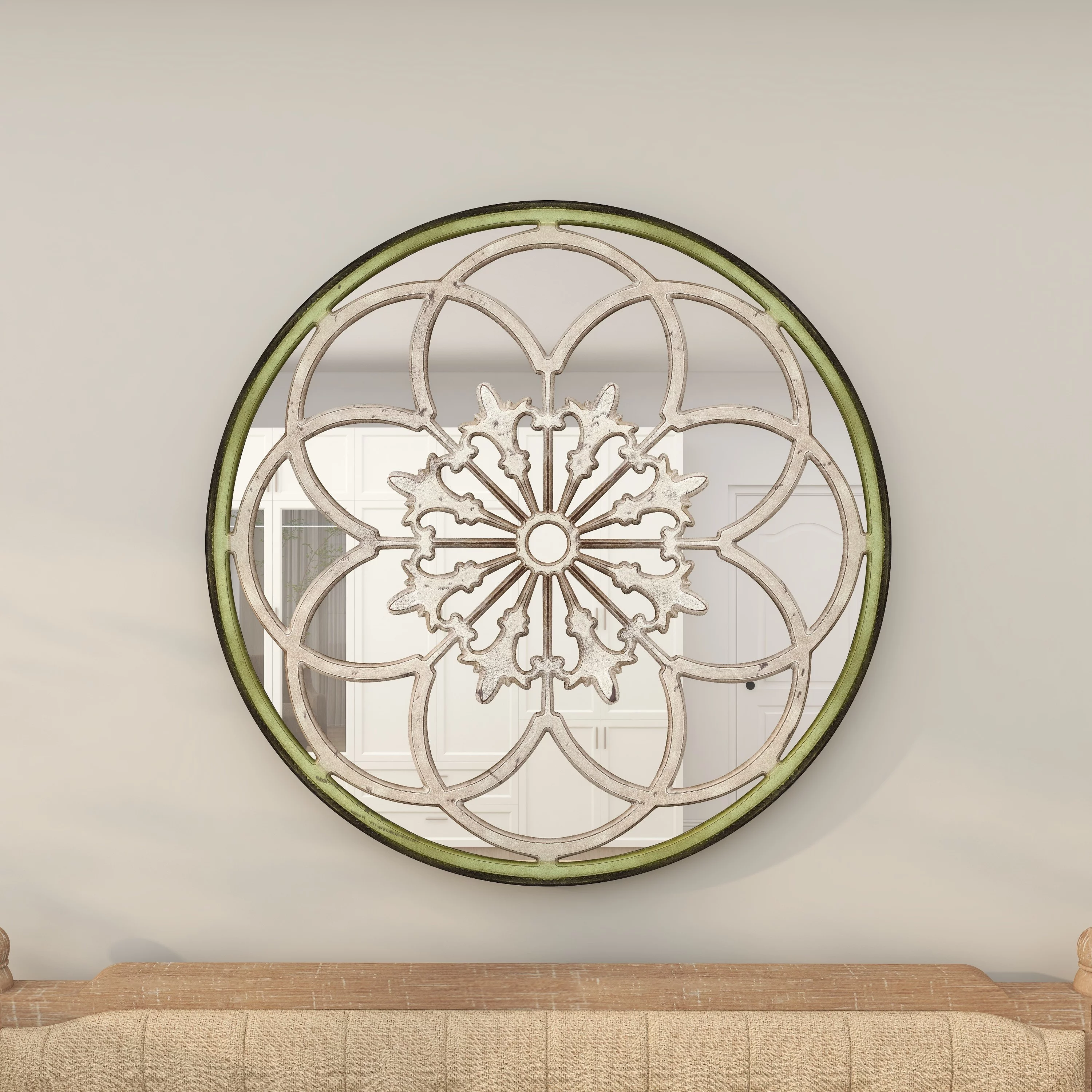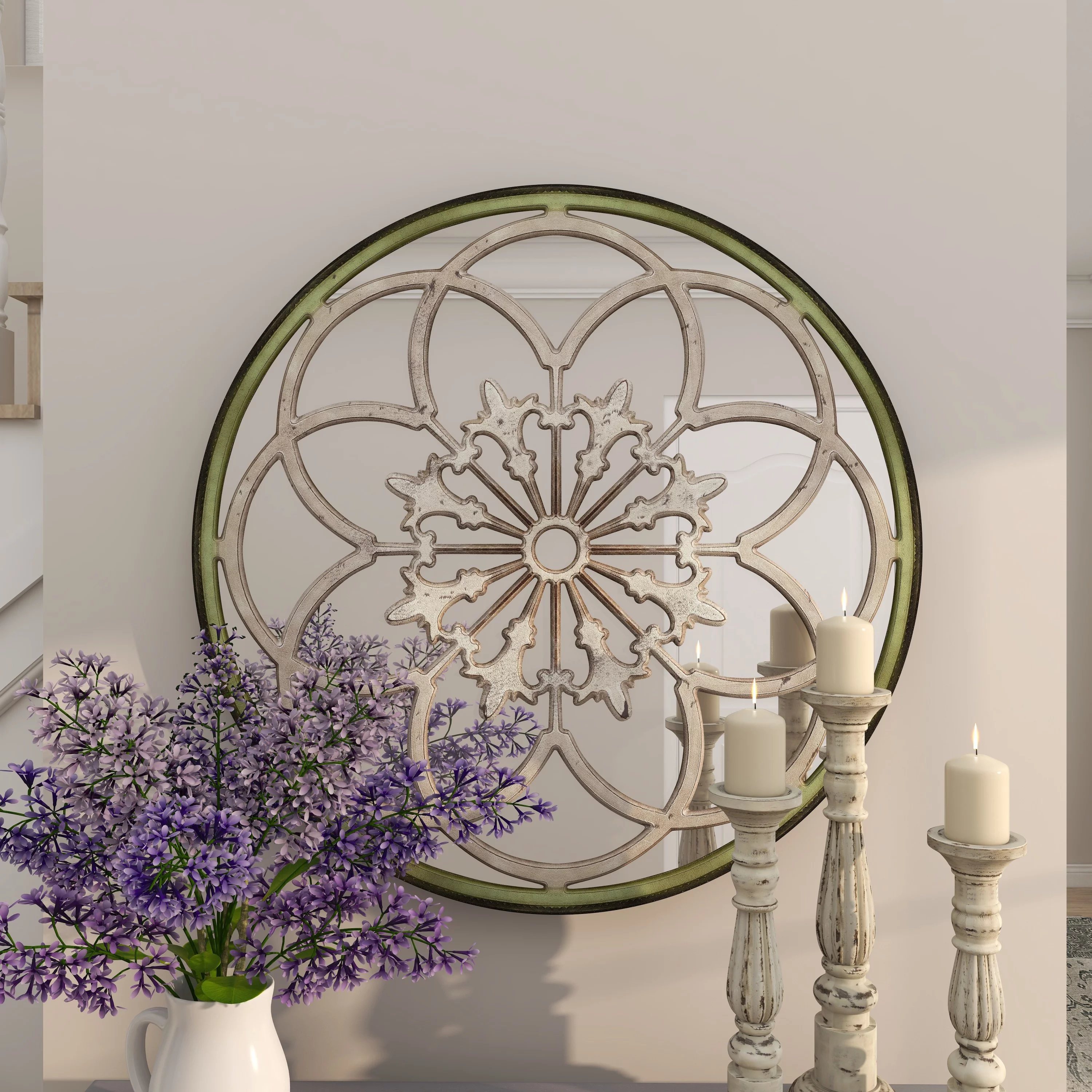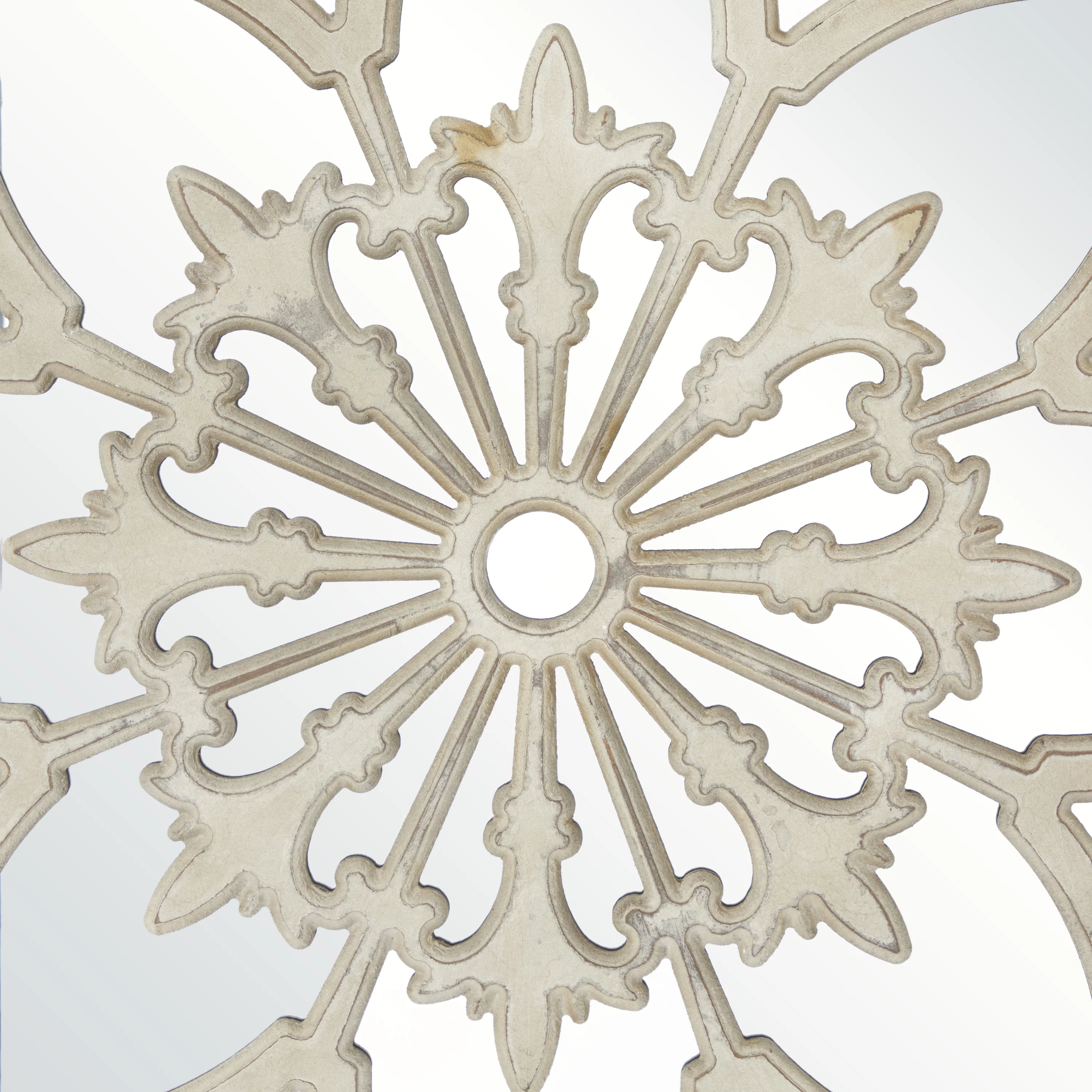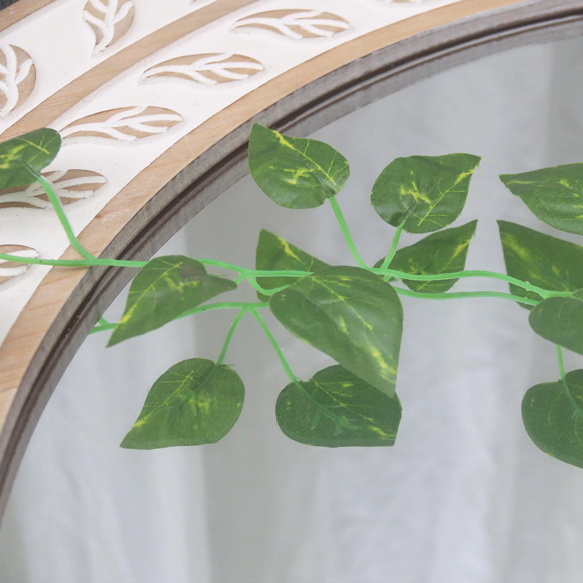 Parisloft Arched Framhouse Carved Wood Wall Mirror, Natural Wood and a Slight White, 31.875"W x 18.125"H
