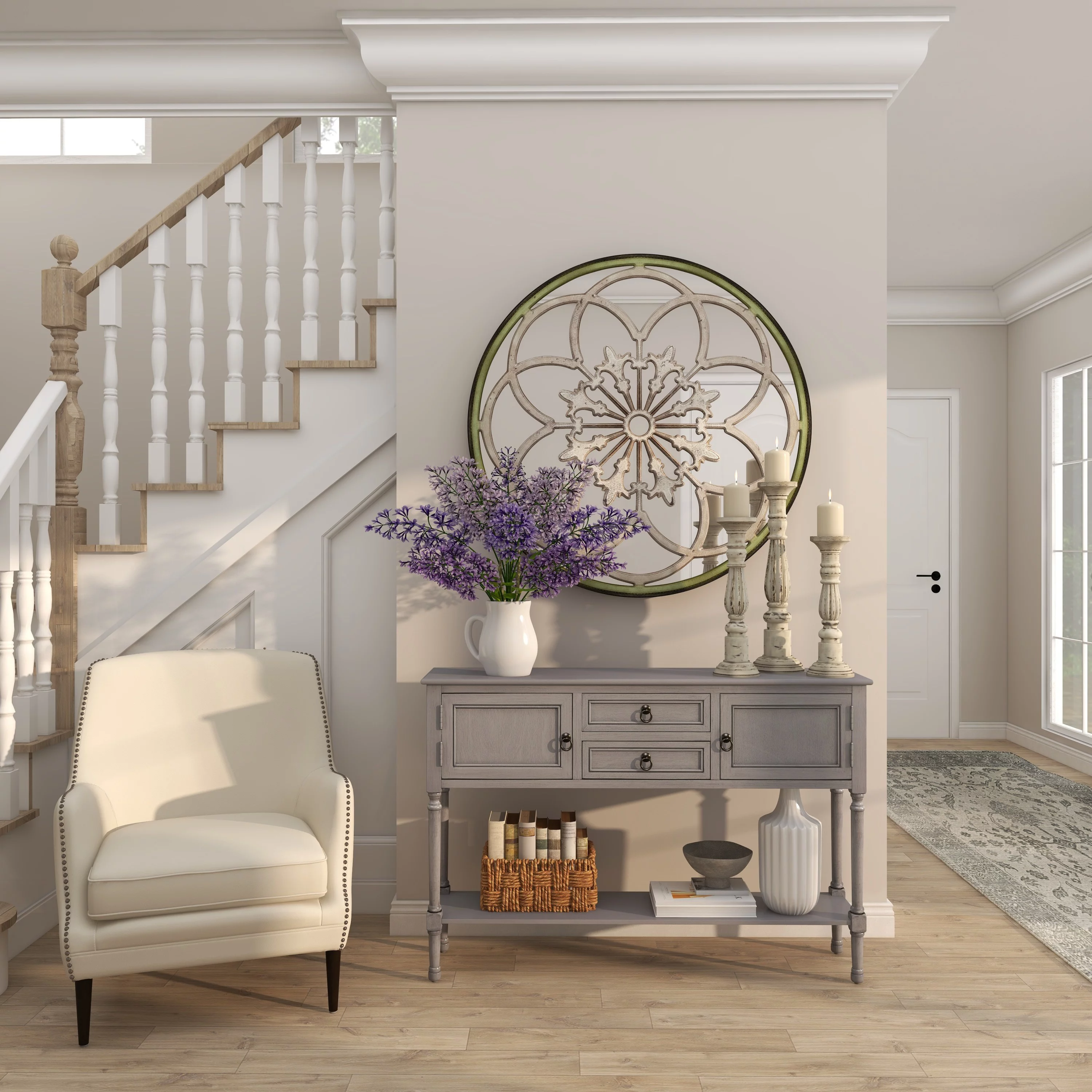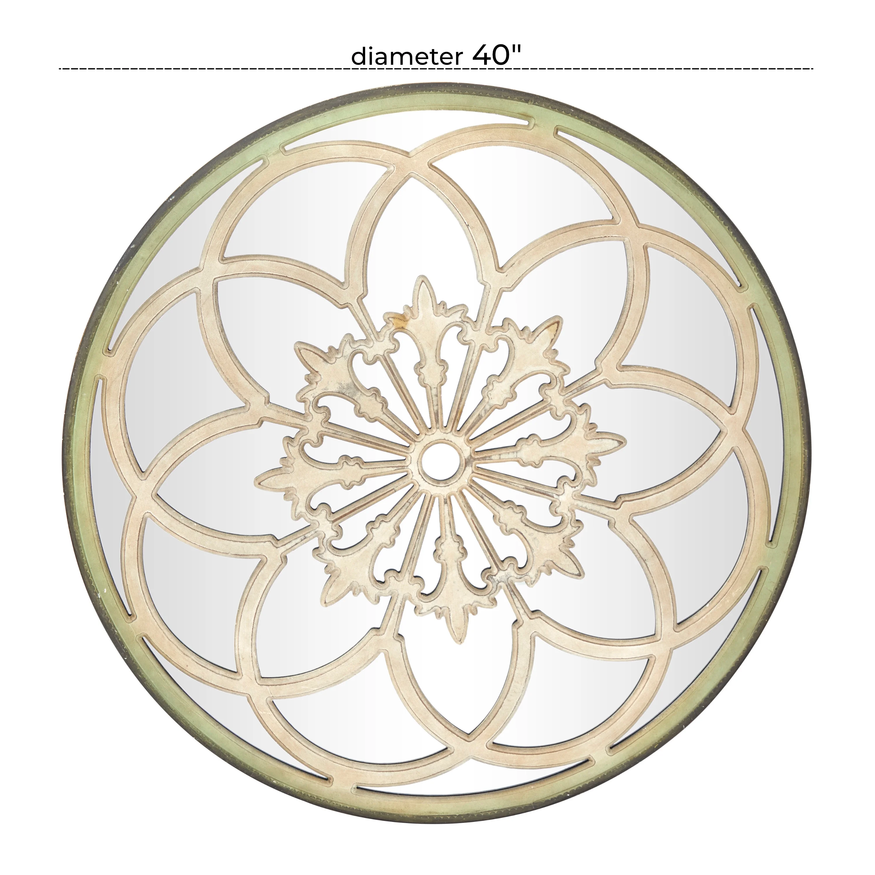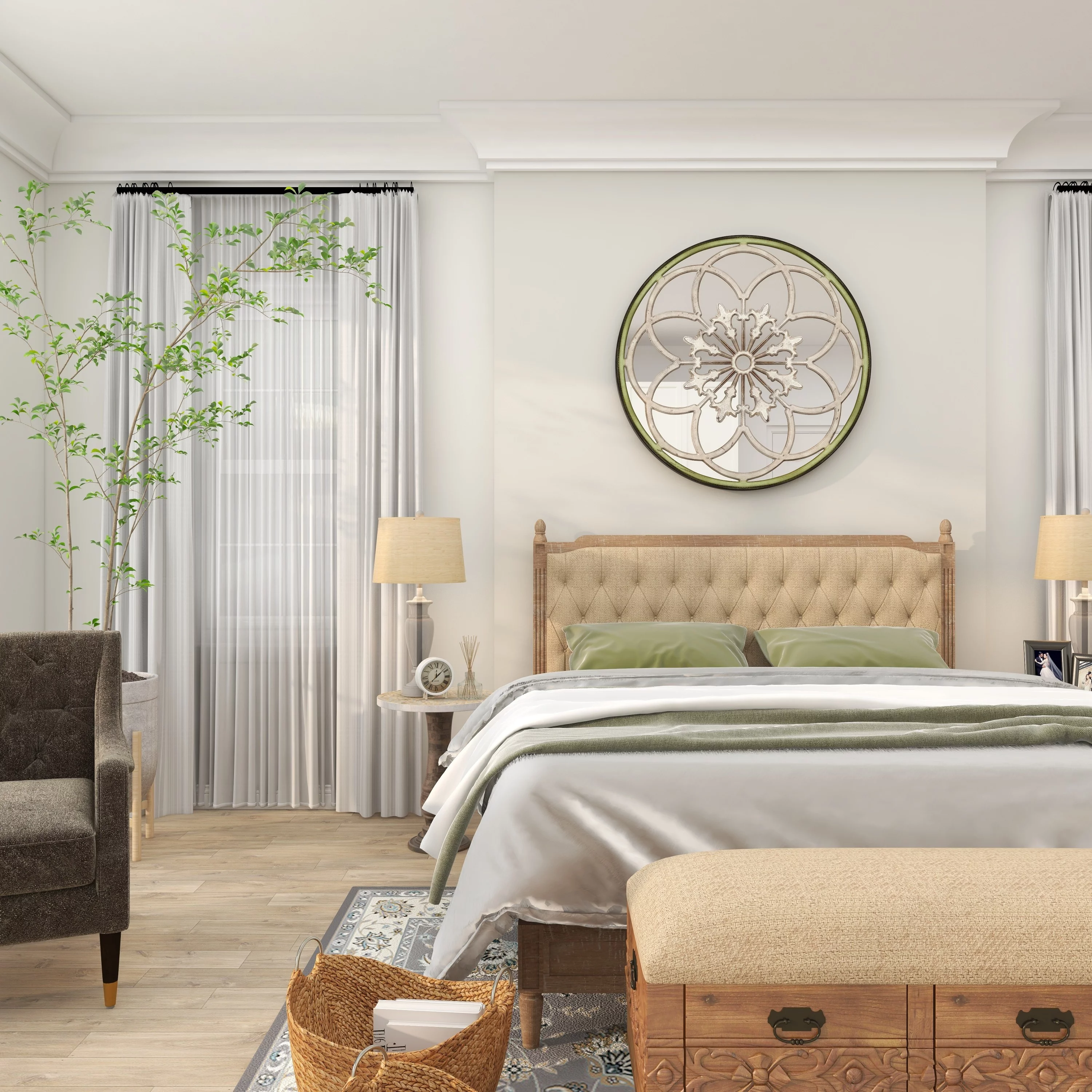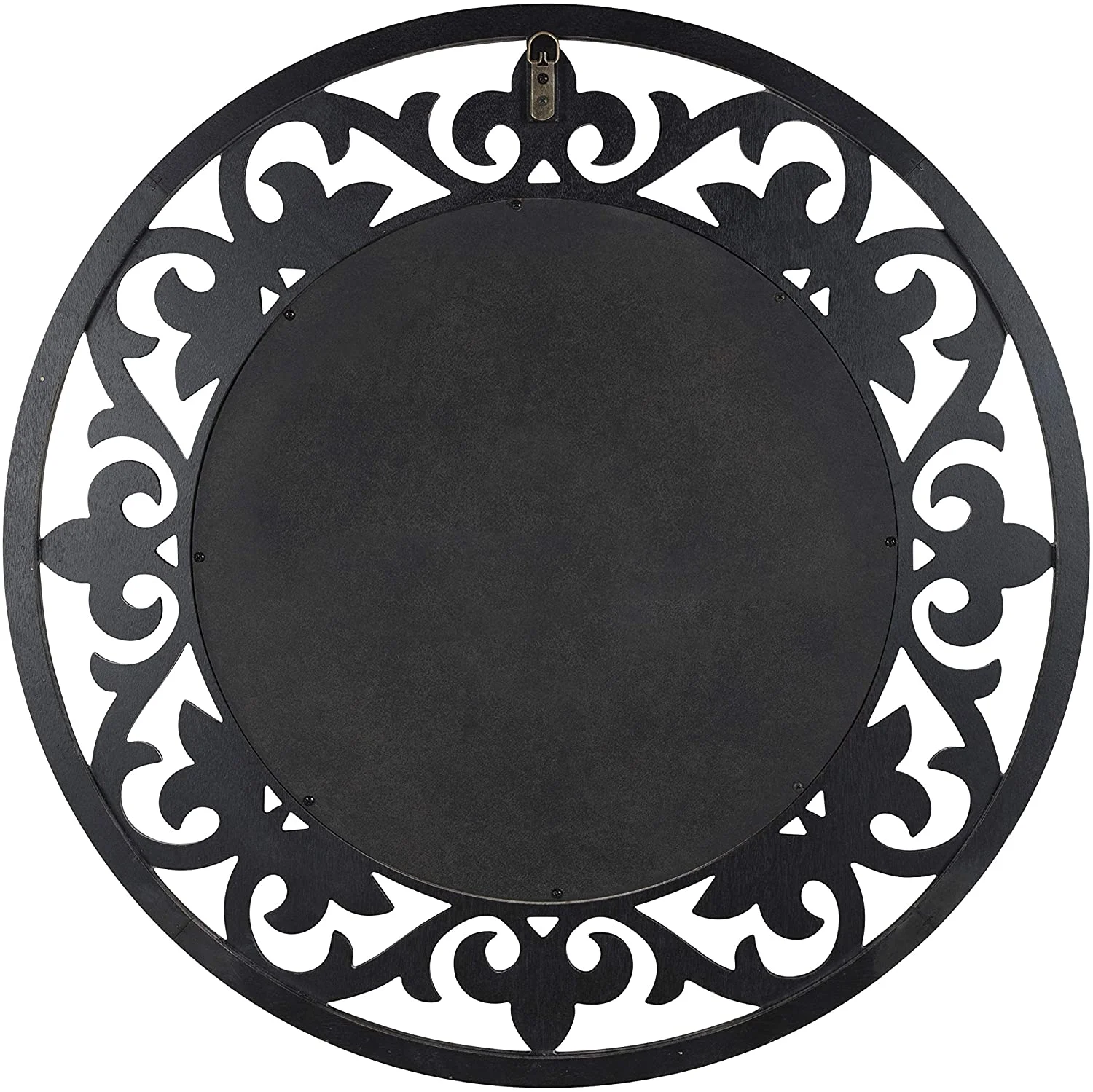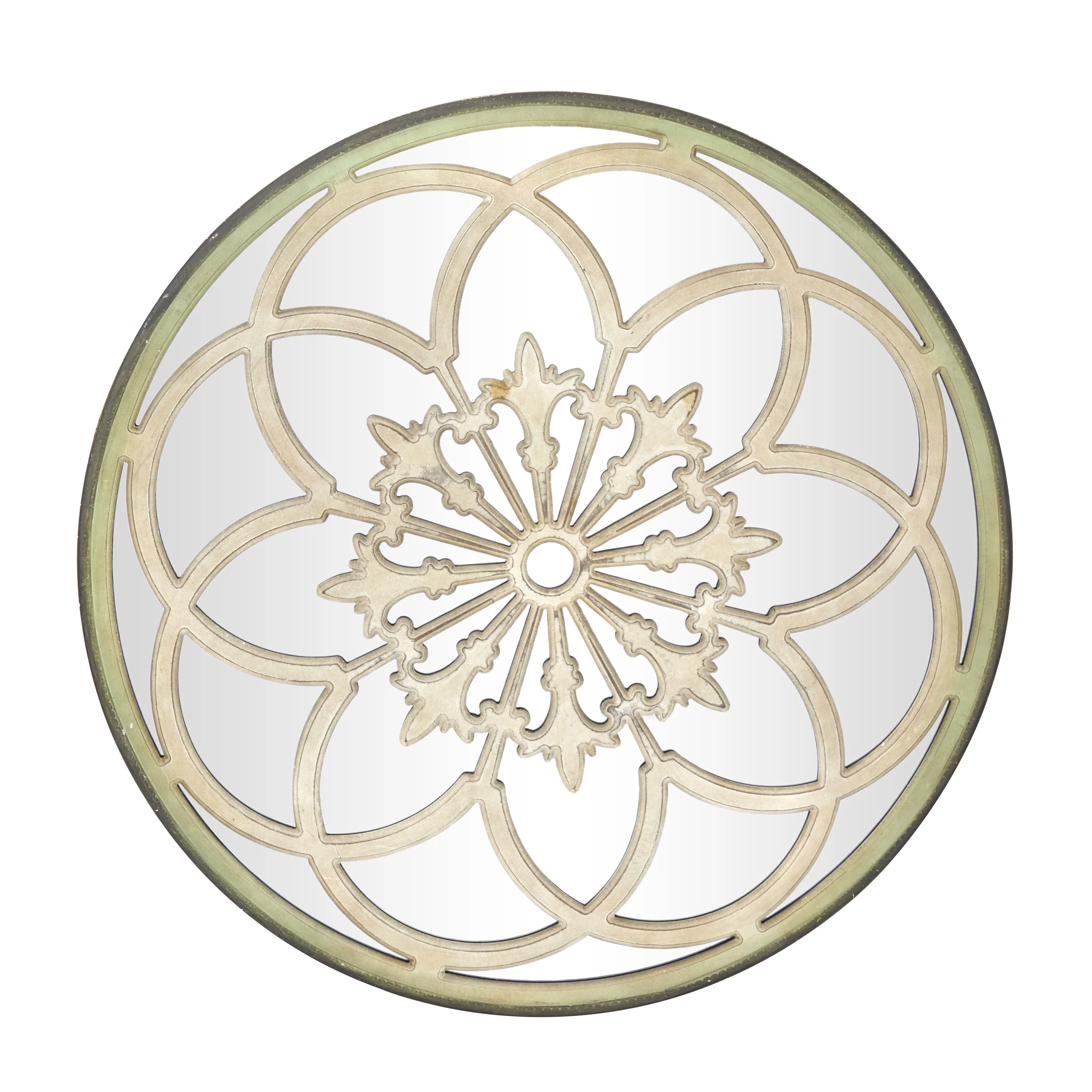 Parisloft Arched Framhouse Carved Wood Wall Mirror, Natural Wood and a Slight White, 31.875"W x 18.125"H