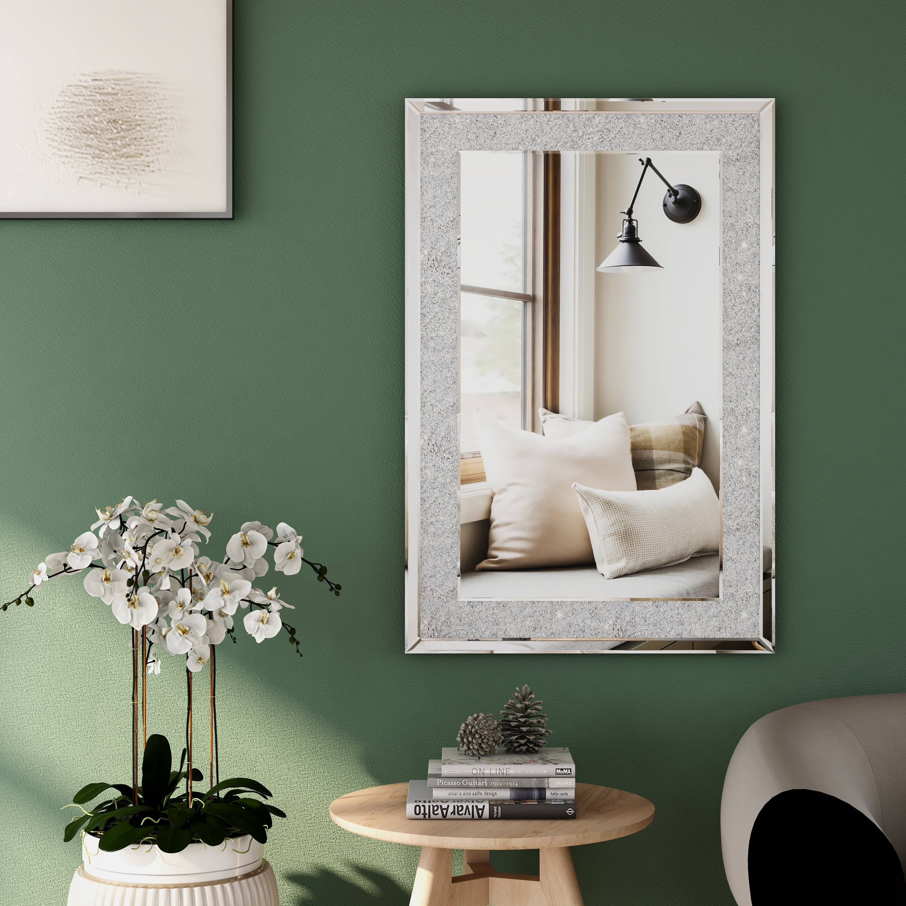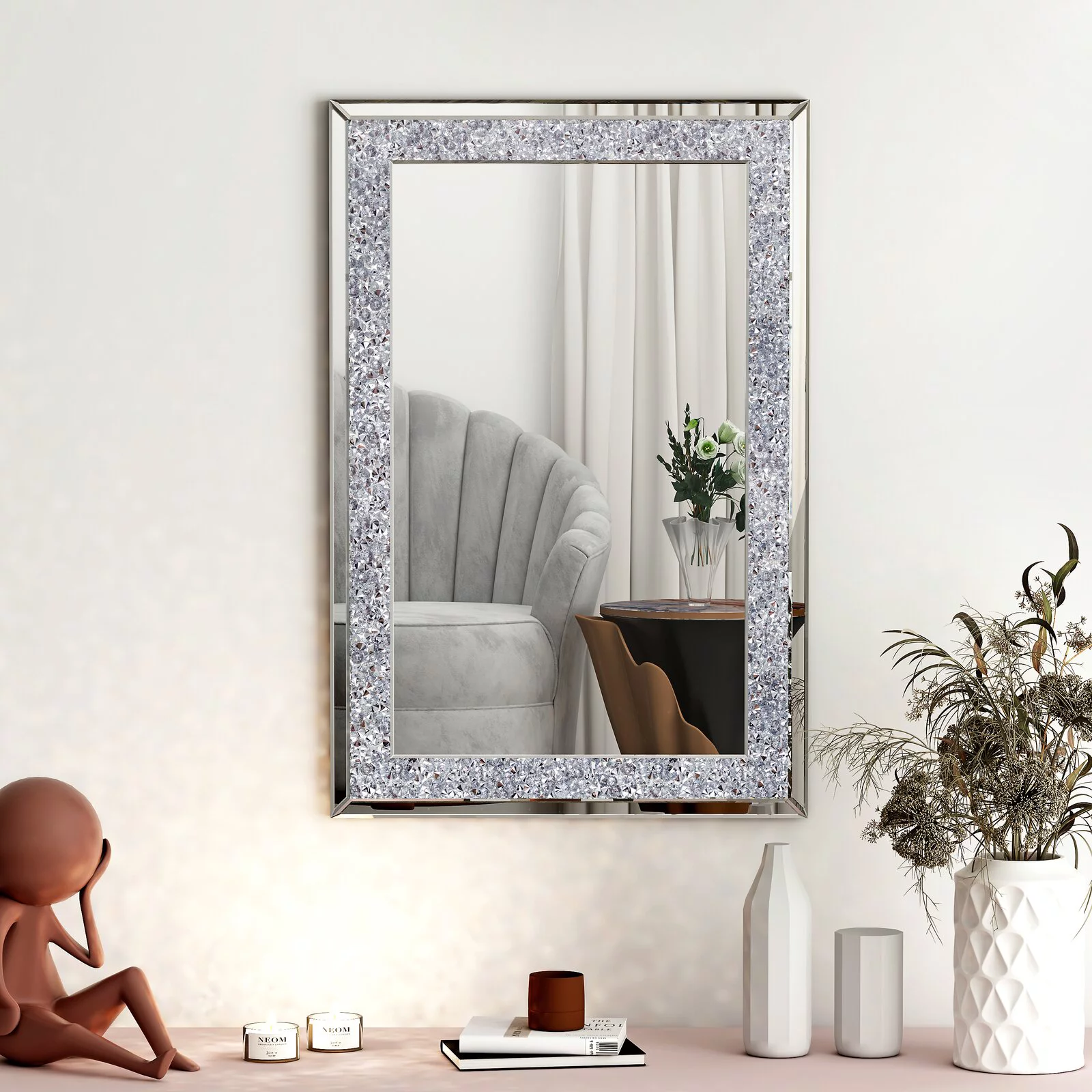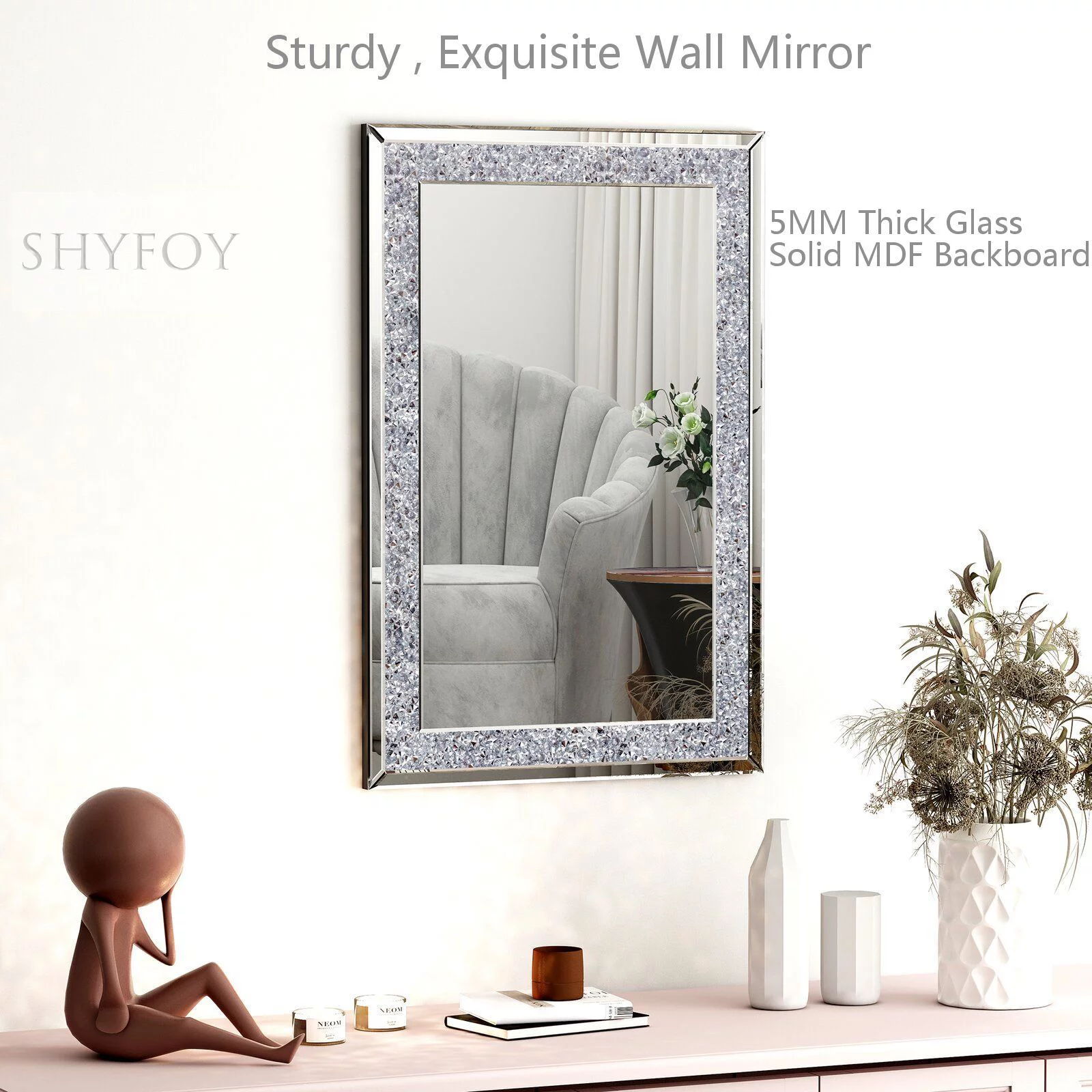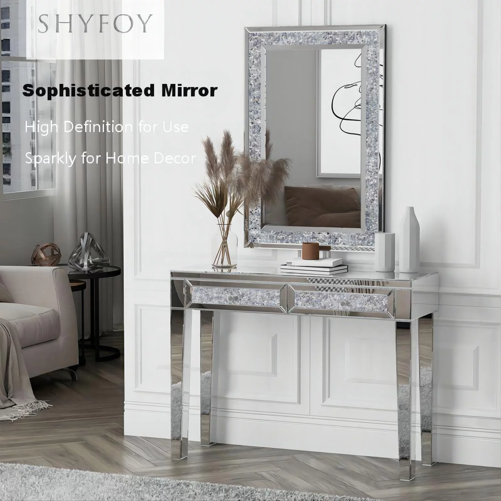 Shyfoy Wall Mirror Decorative Living Room Decor Crushed Diamond Rectangle 35.4"X23.6"
