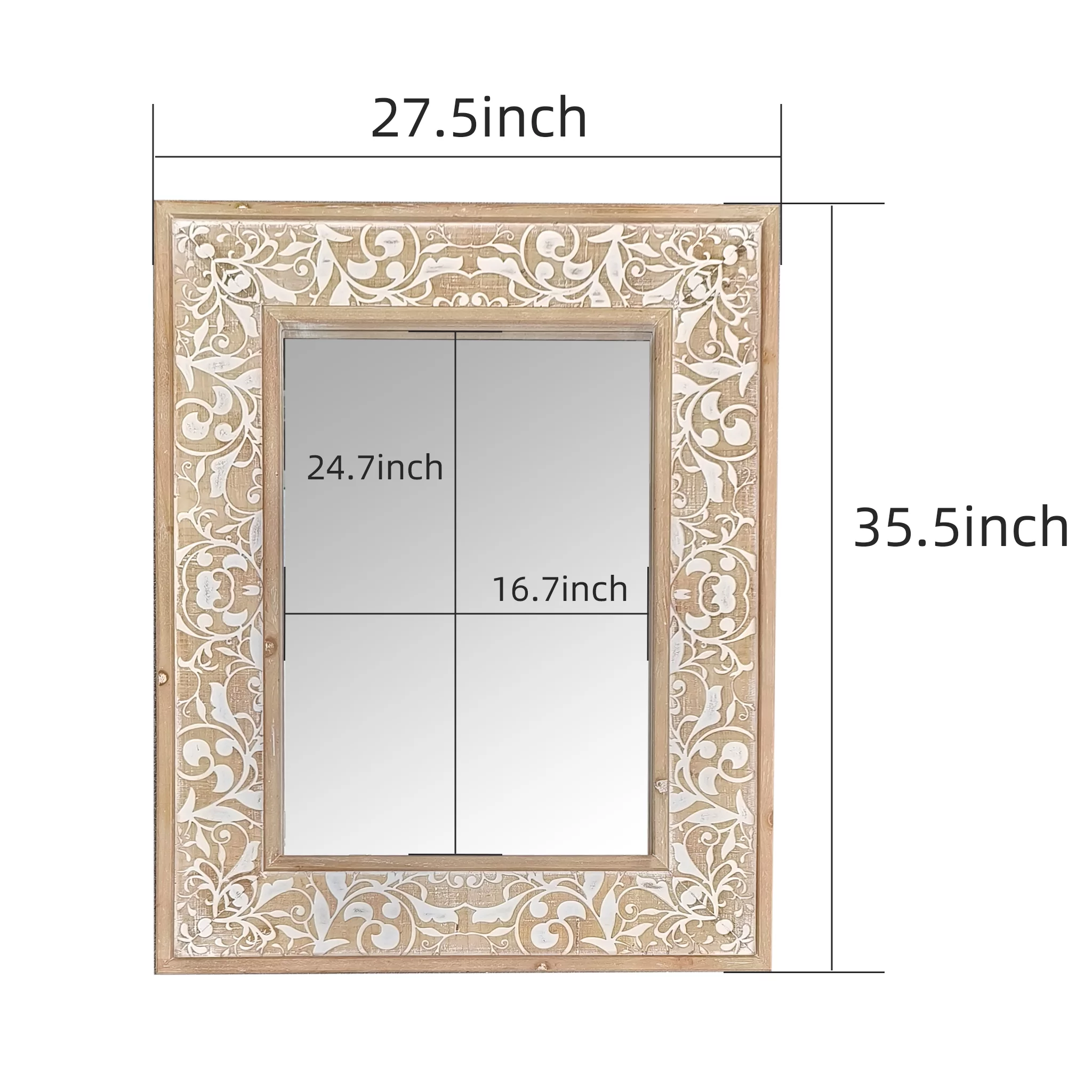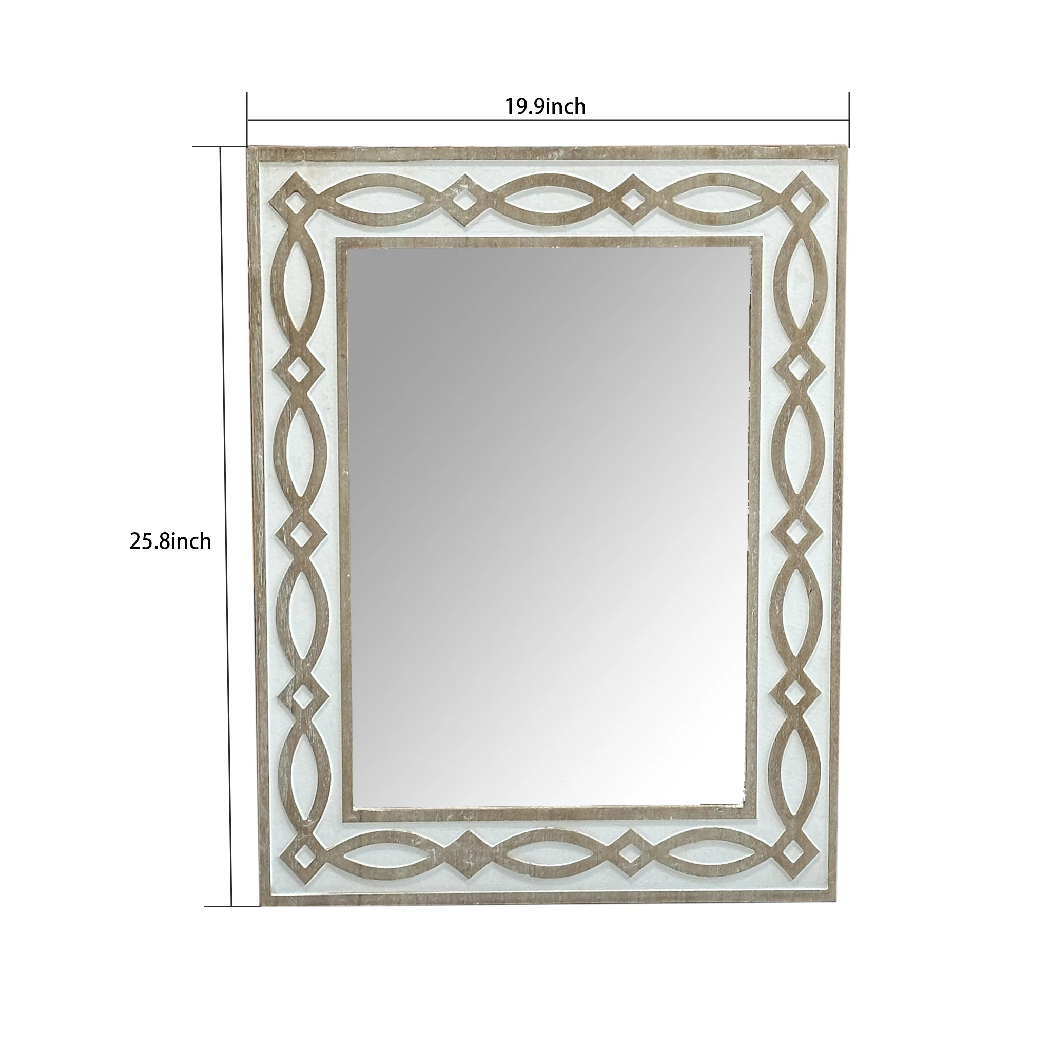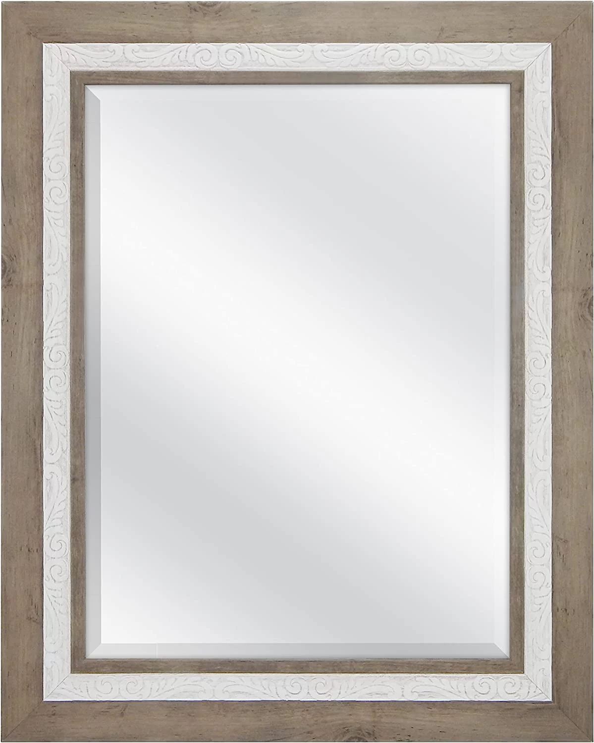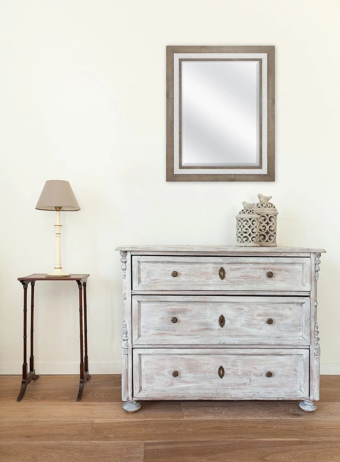 18x24 inch Beveled Wall Mirror, 24.5x30.5 Inch Overall Size, Rustic Wood and Embossed Whitewash Finish