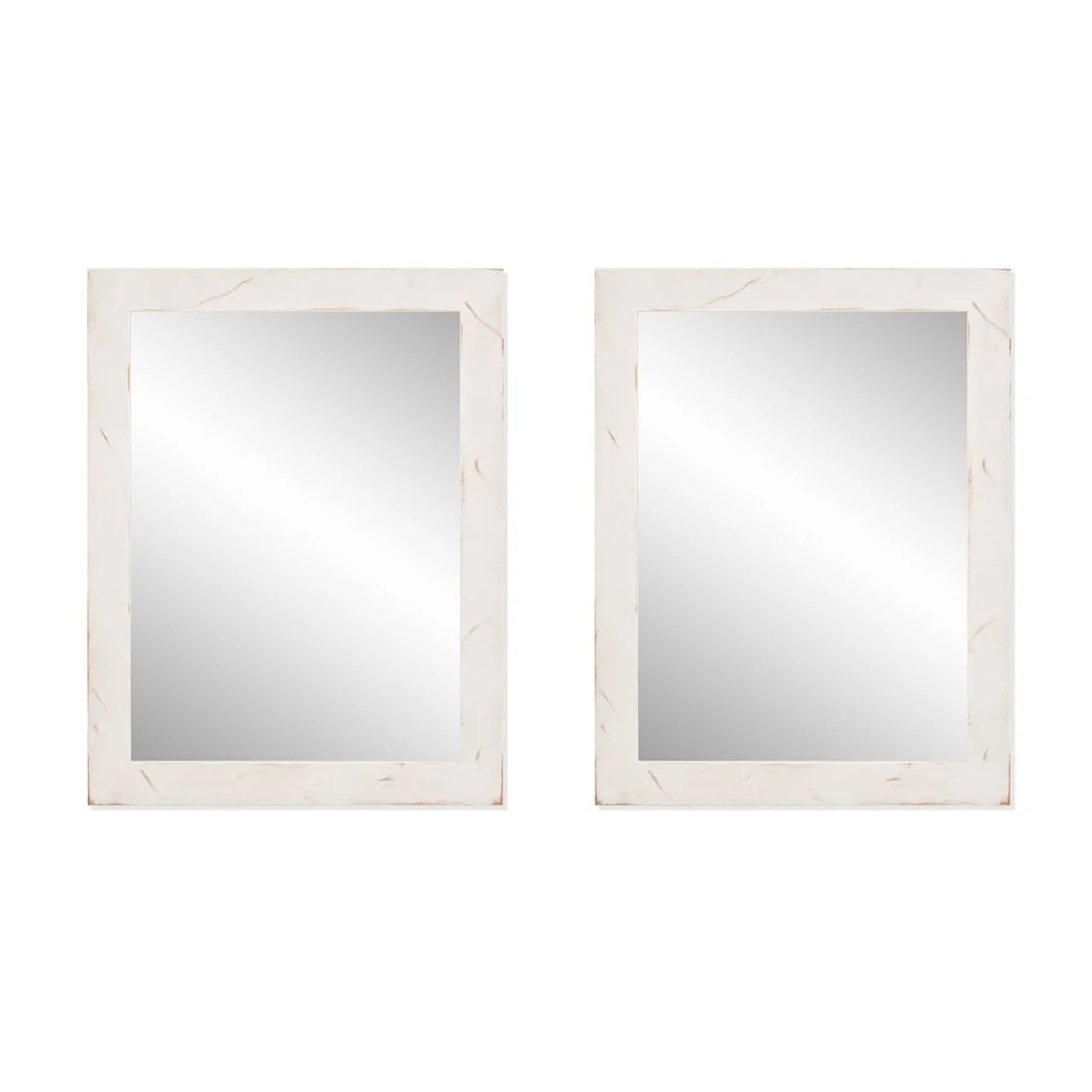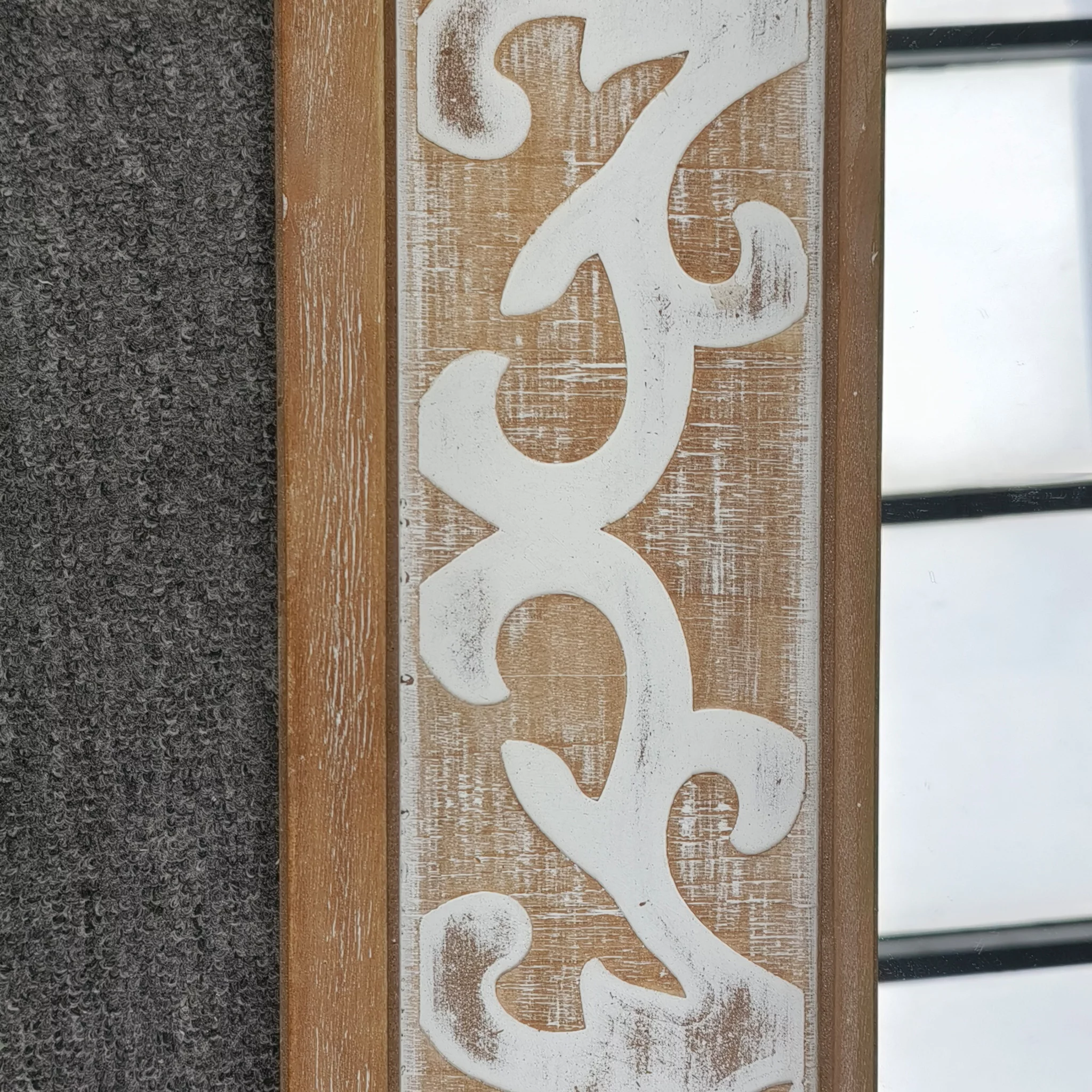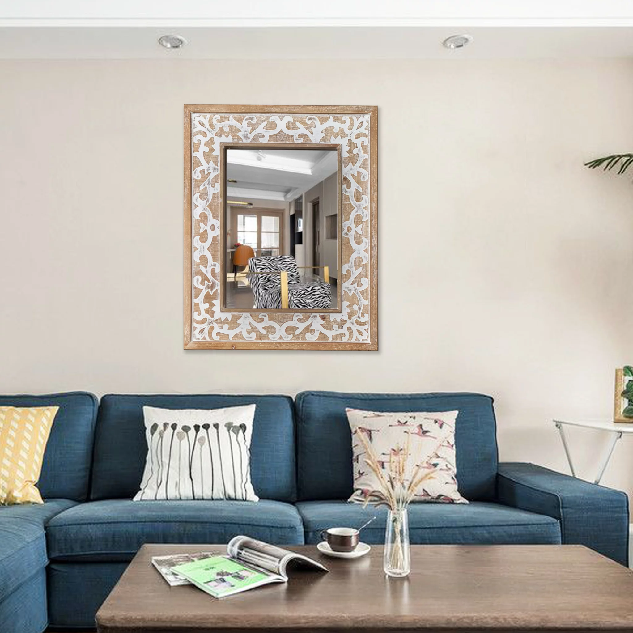 18x24 inch Beveled Wall Mirror, 24.5x30.5 Inch Overall Size, Rustic Wood and Embossed Whitewash Finish