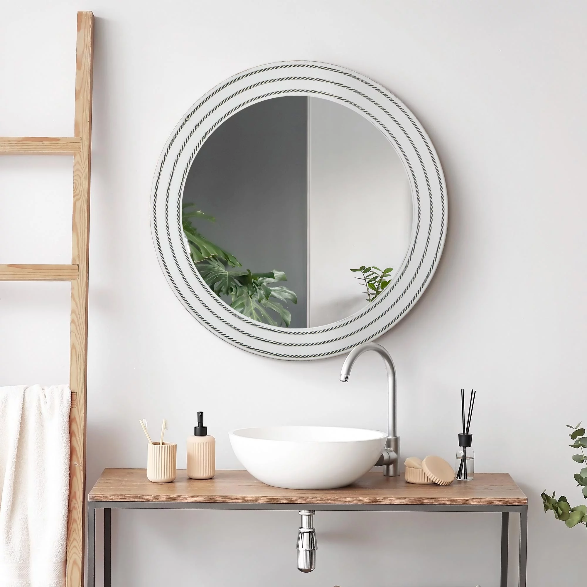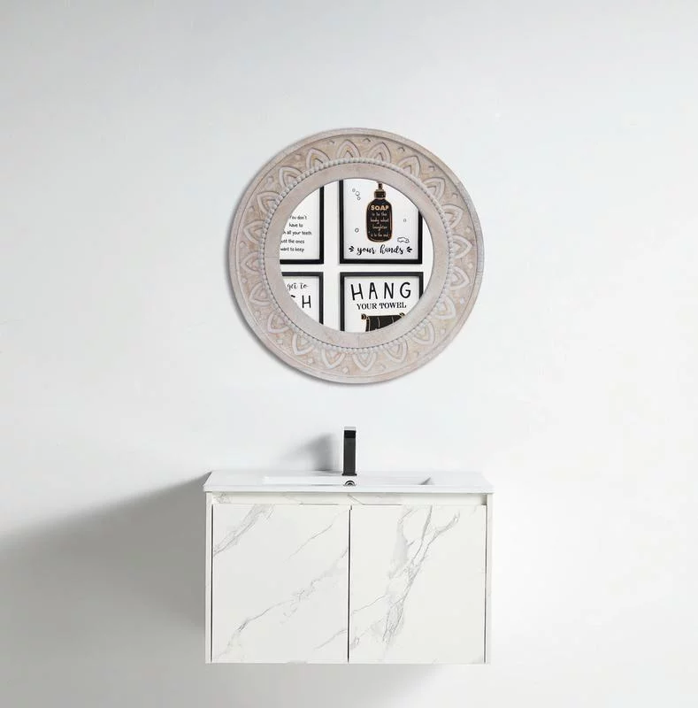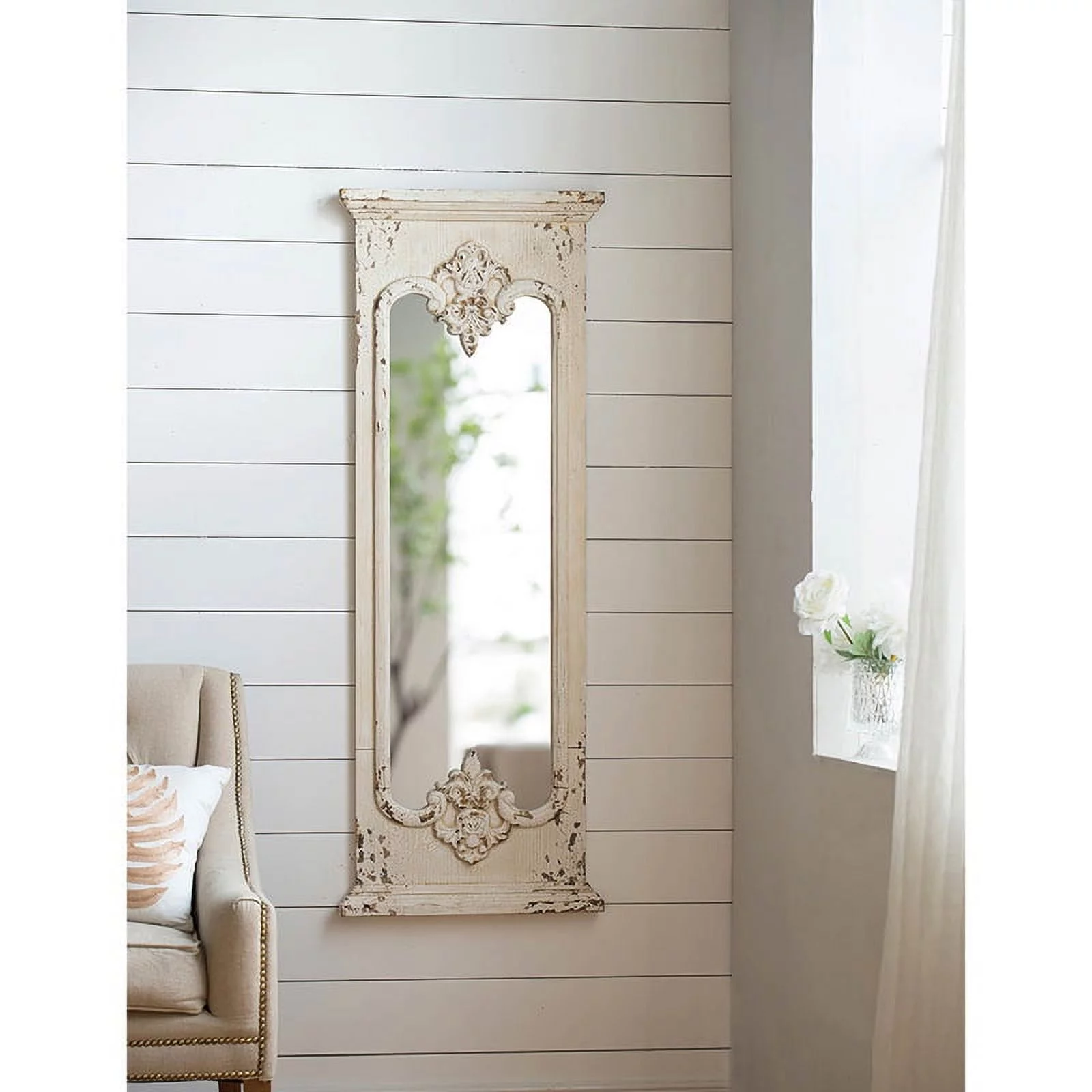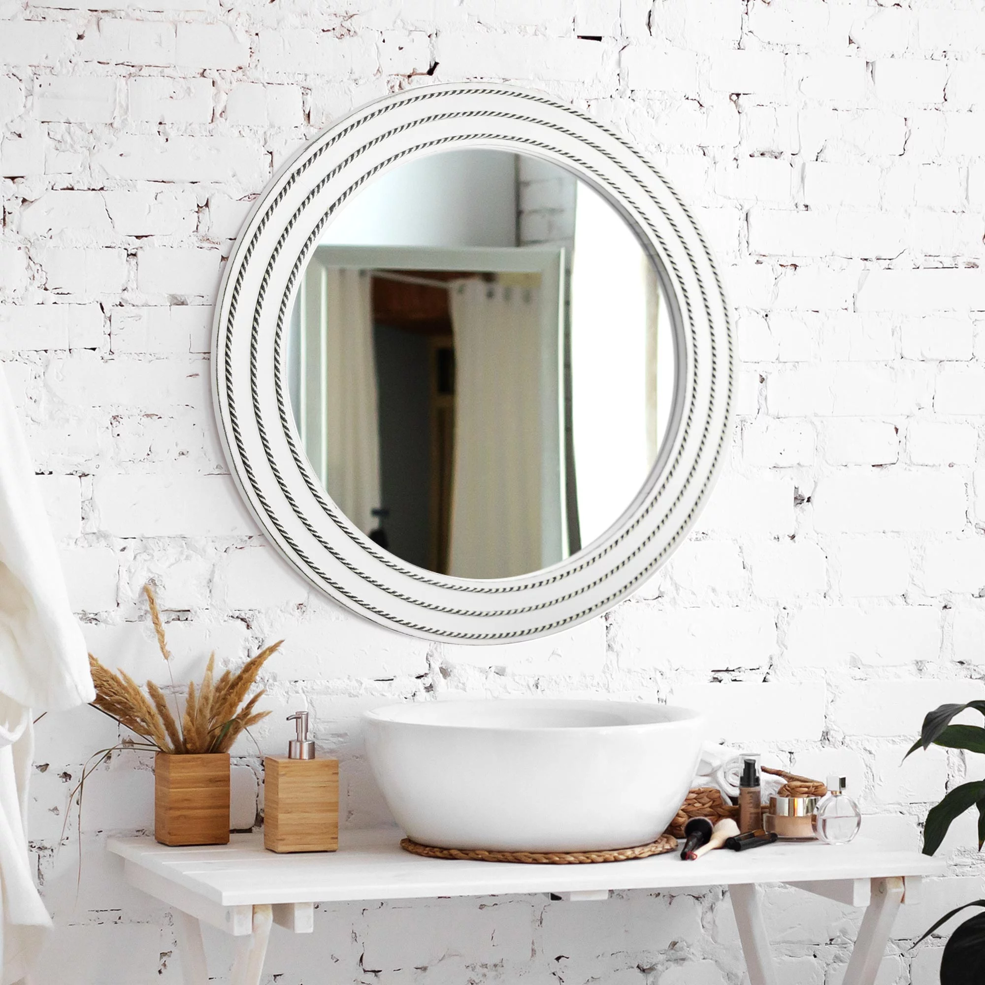 18x24 inch Beveled Wall Mirror, 24.5x30.5 Inch Overall Size, Rustic Wood and Embossed Whitewash Finish