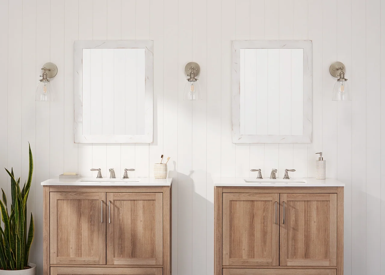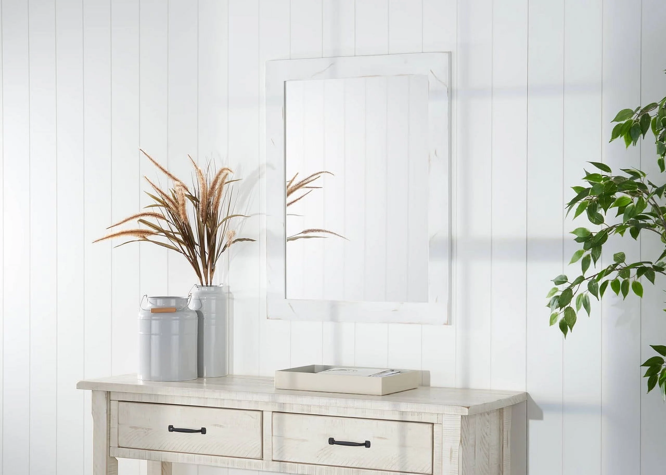 Chicago Collection 305-M26-WWW 26" x 42" Mirror with Beveled Glass and Acacia Solids in Whitewashed Walnut