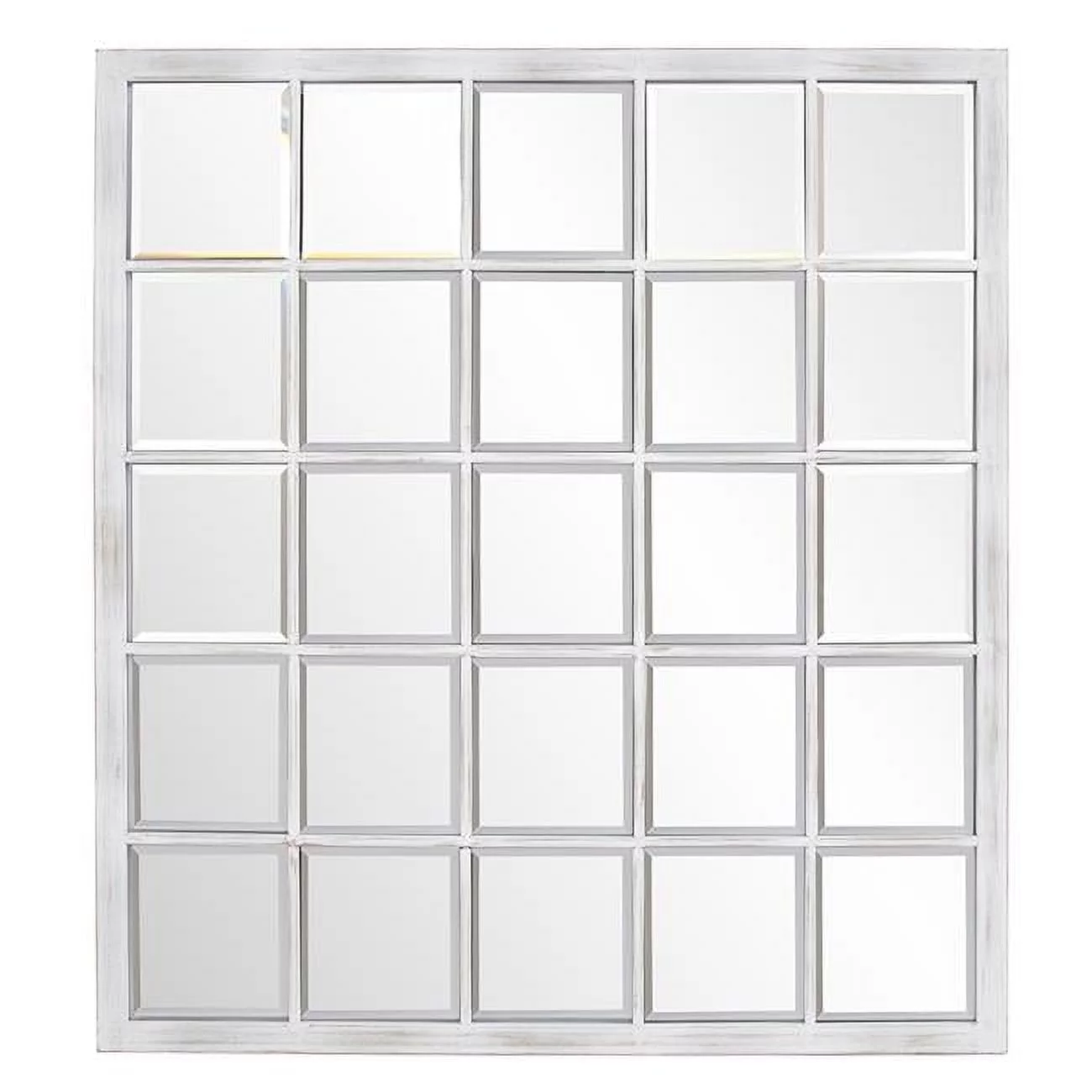 Homeroots Rectangular Whitewash Window Pane Tile Mirror - 38" H x 34" W