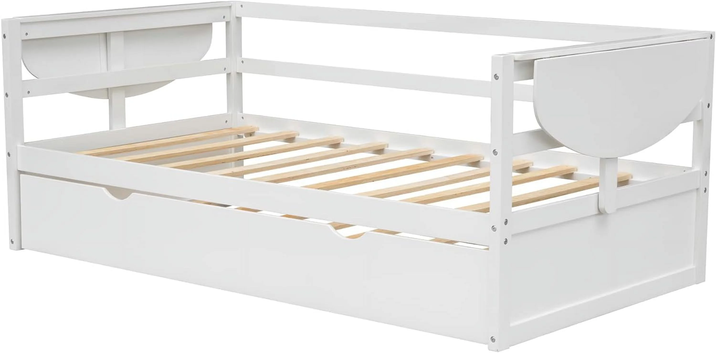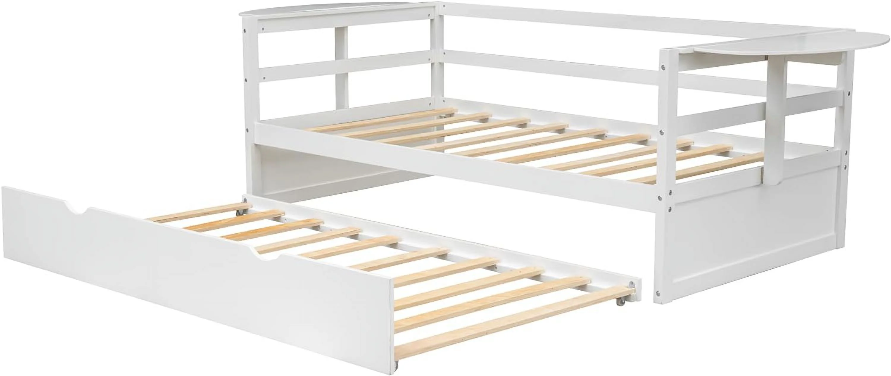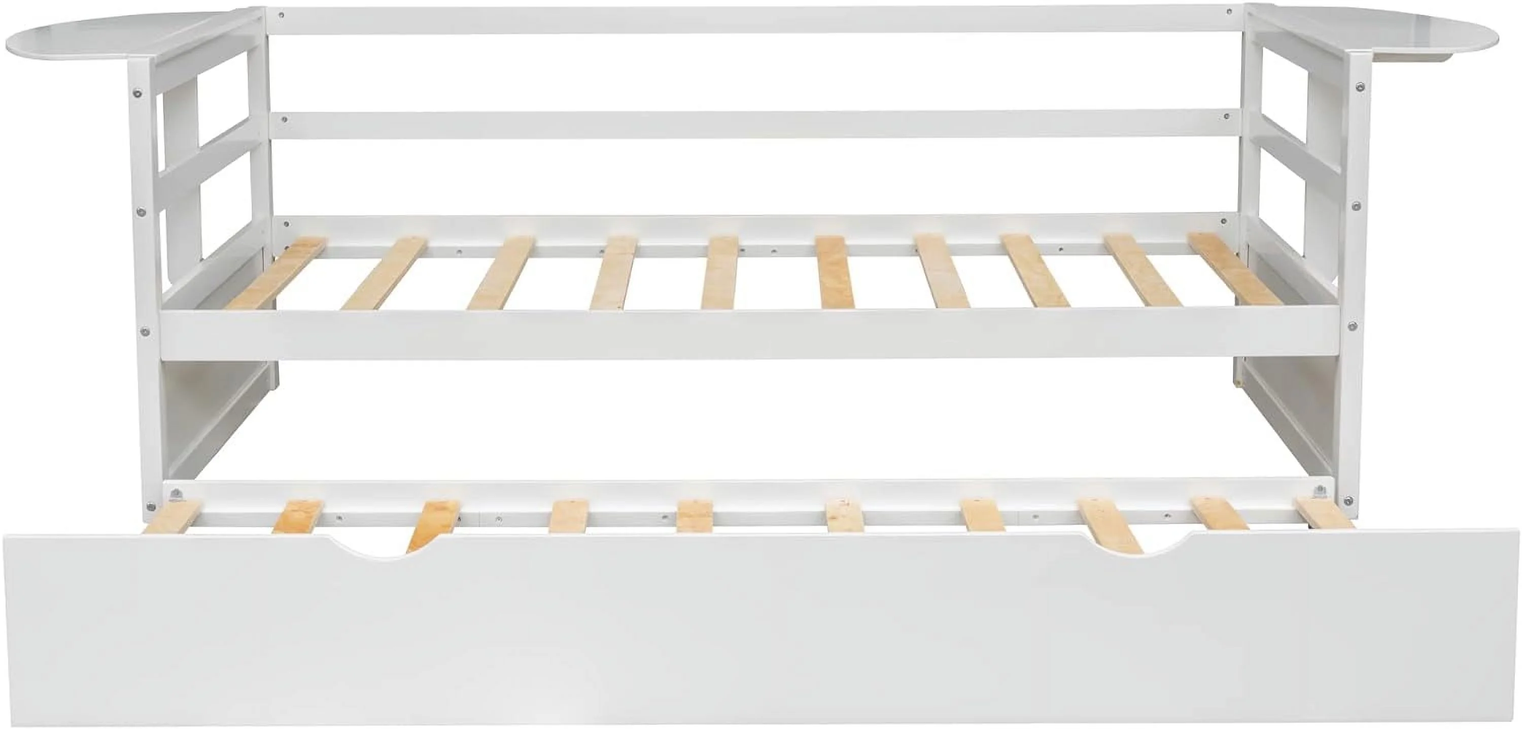 Size Daybed With Slidig Trudle Ad Foldable Shelves O Both Sides, Daybed Frame With Woode Slats, o Sprig eeded, (White)