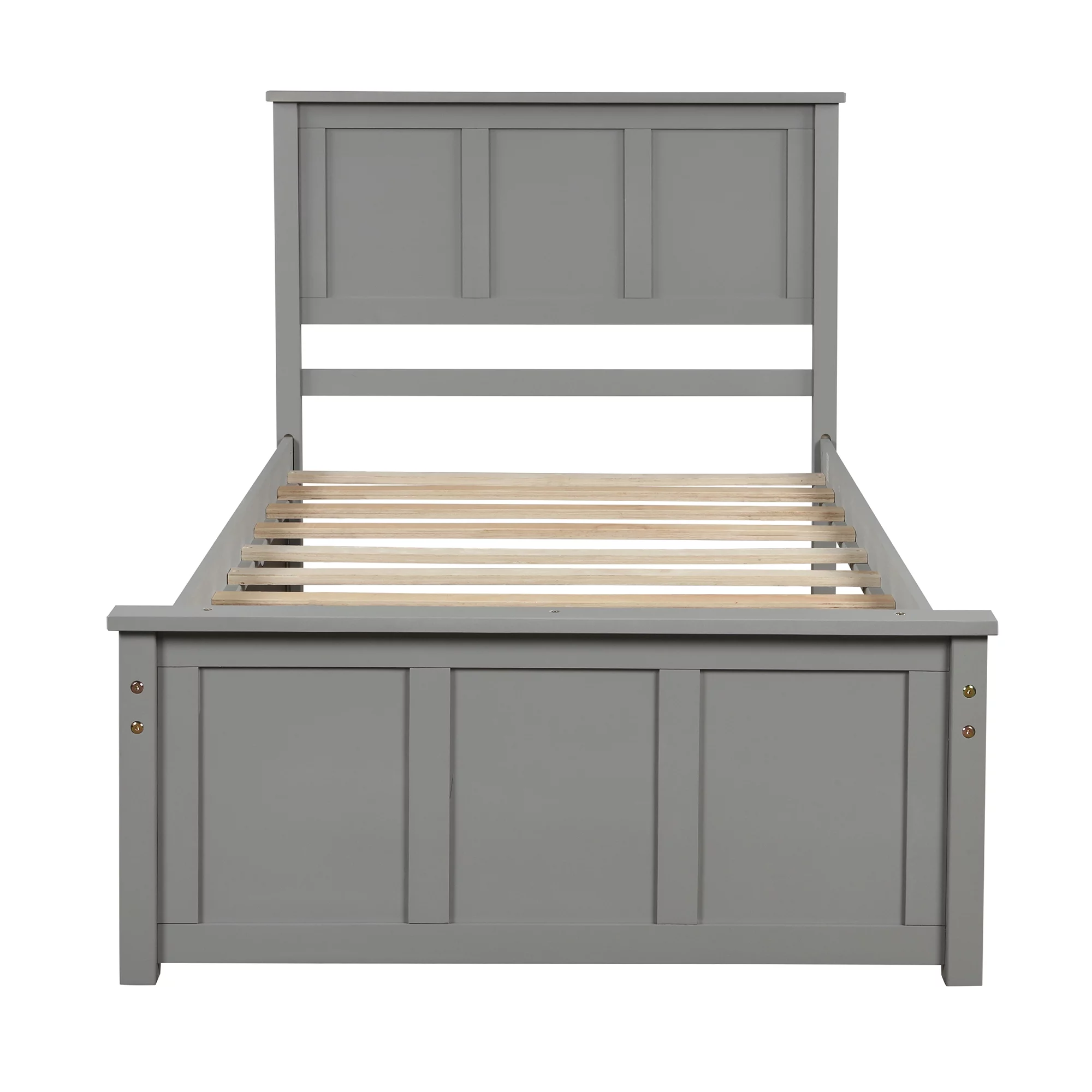 Platform Storage Bed, 2 drawers with wheels, Twin Size Frame, Gray Under Bed Storage Mattress
