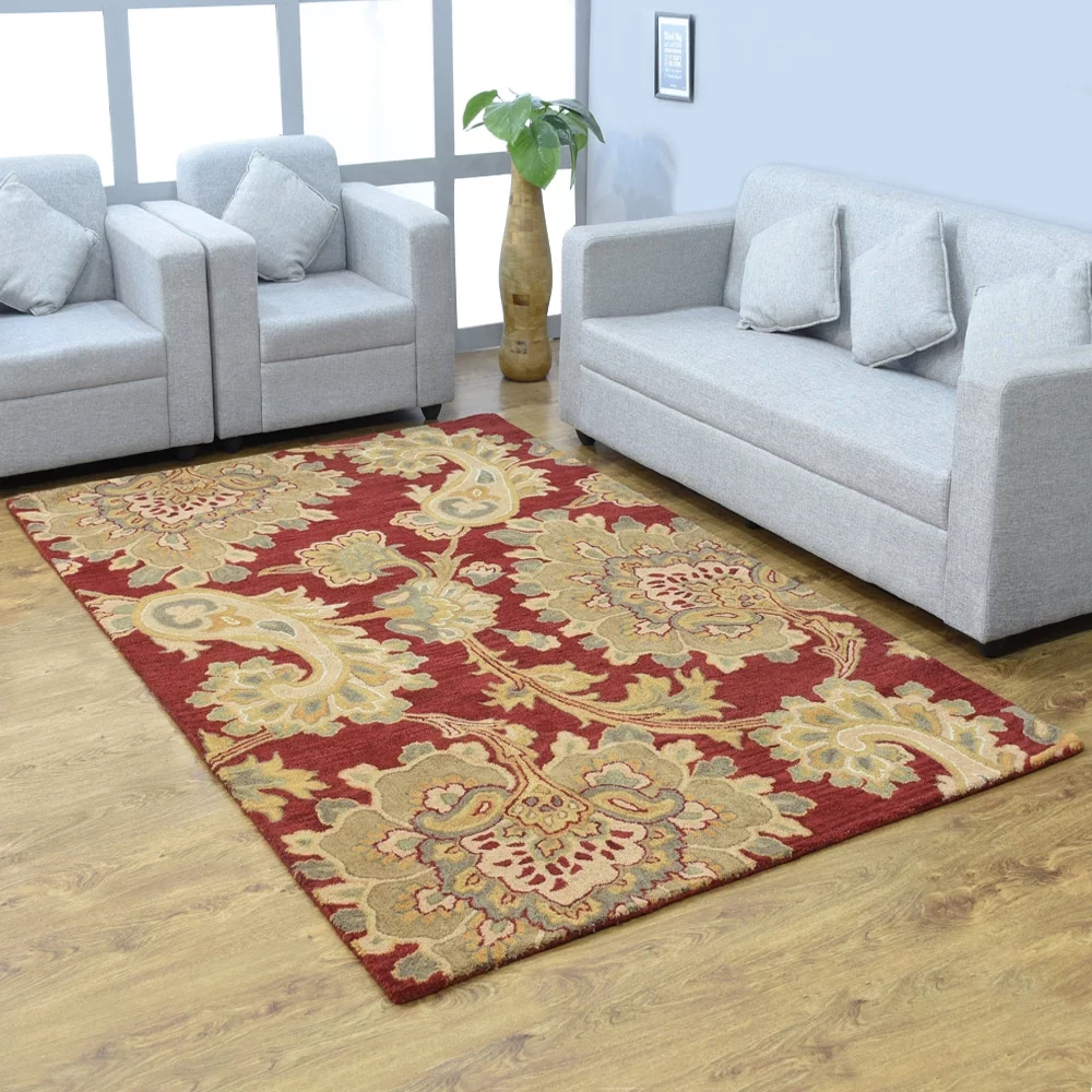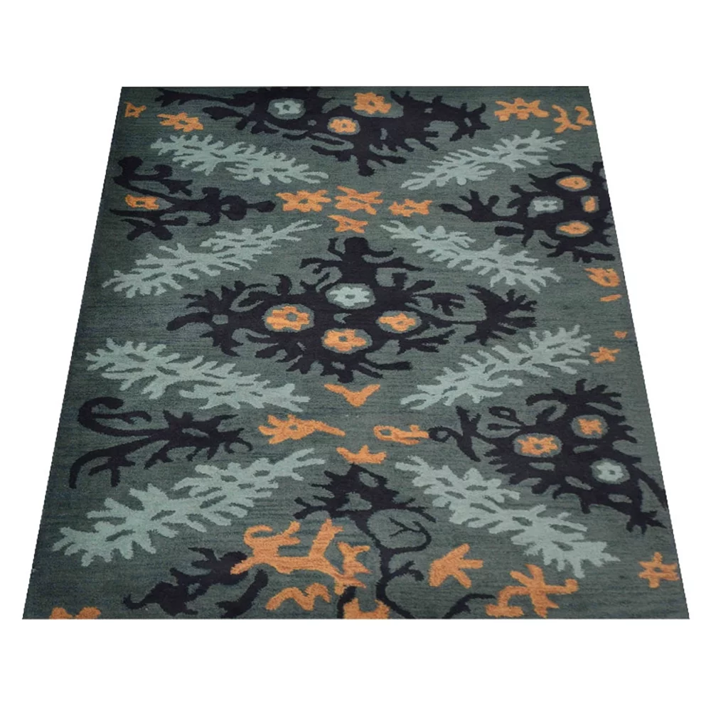 Rugsotic Carpets Hand Tufted, Floral Wool Floor Area Rug For Living Room Bedroom, Black,Green, 6'x9'