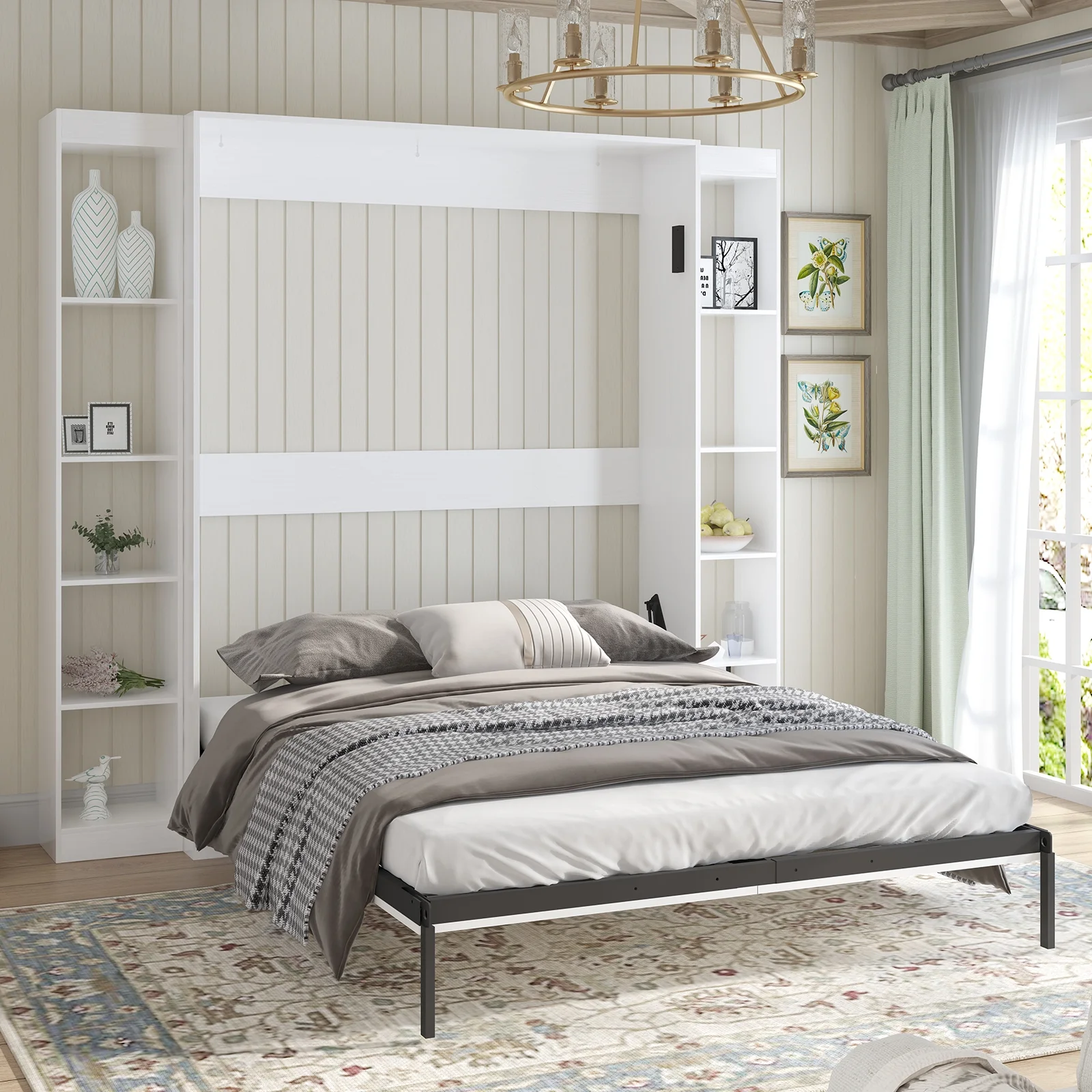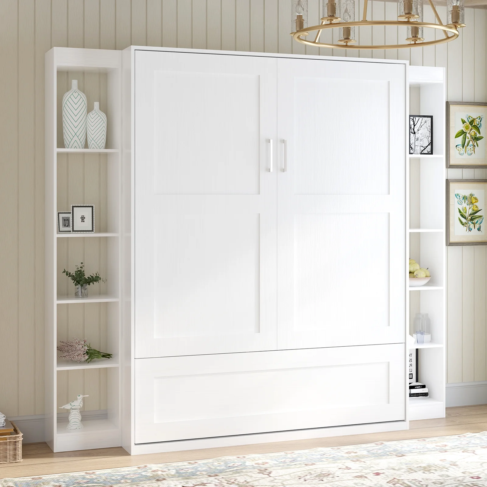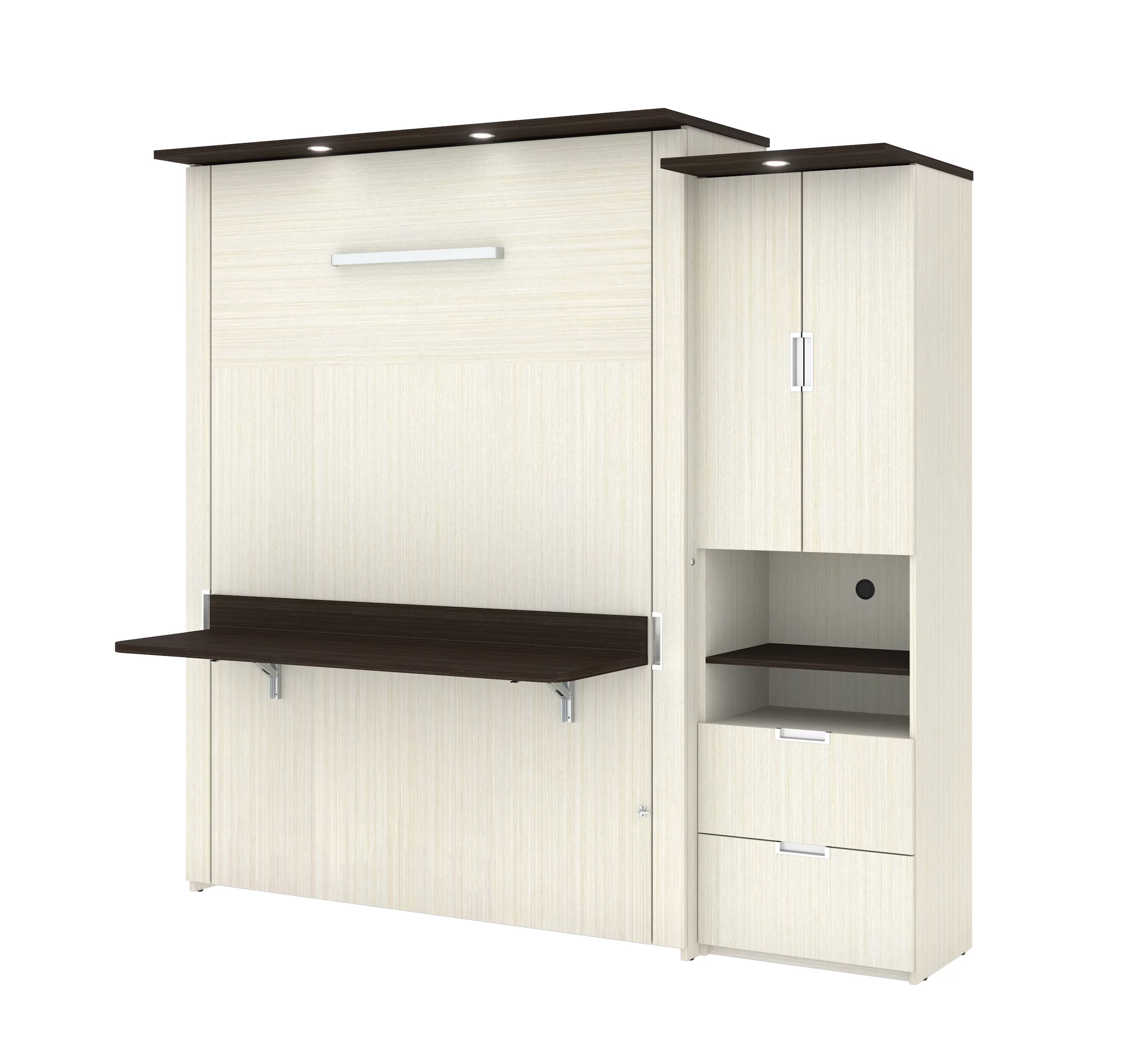 Bestar Lumina 2 Piece Queen Storage Wall Bed Set in White Chocolate