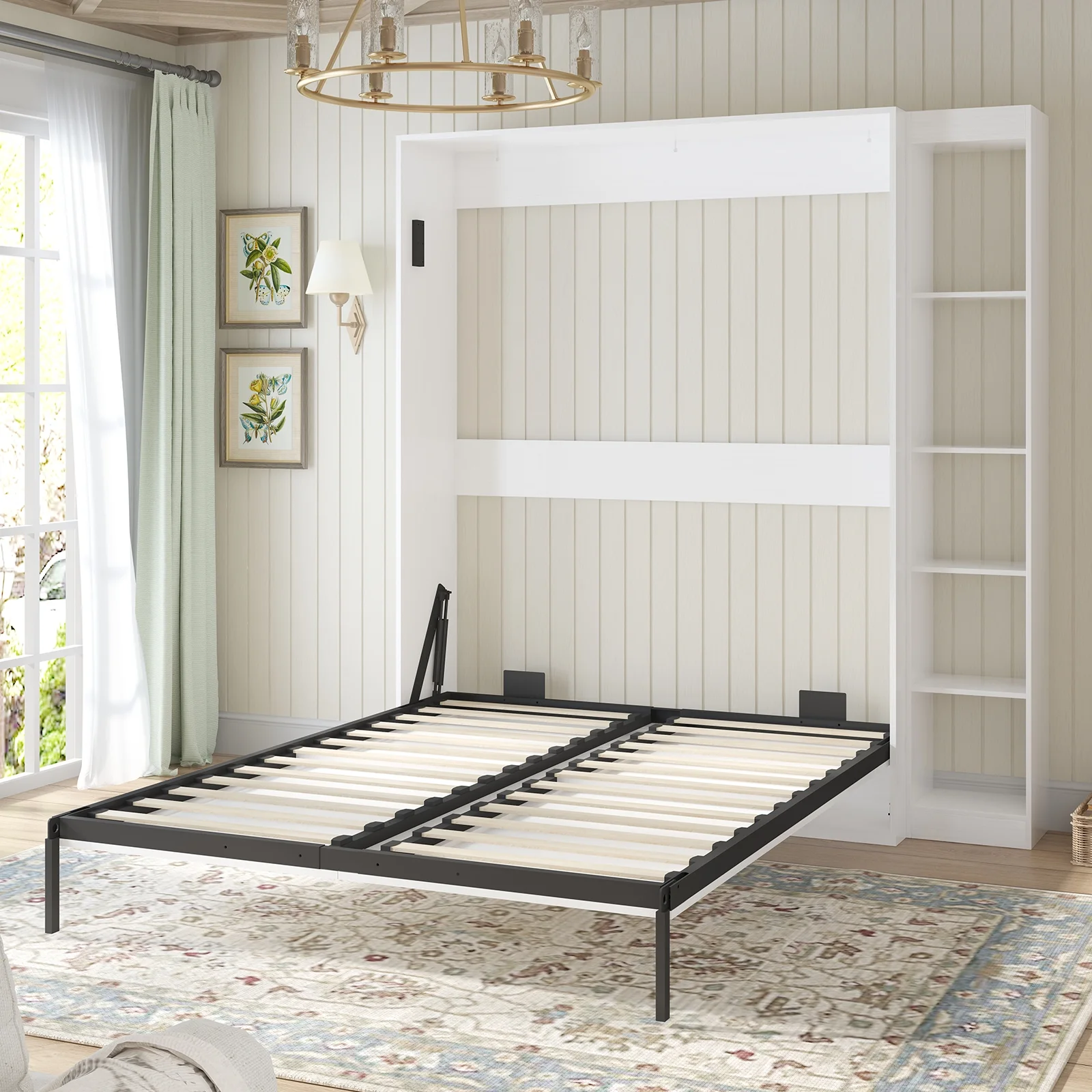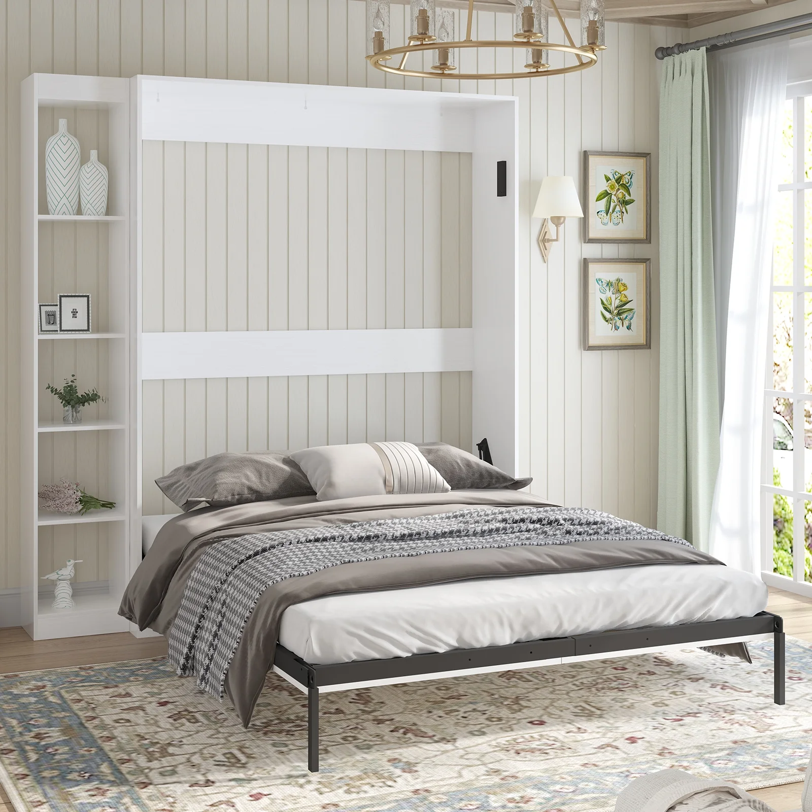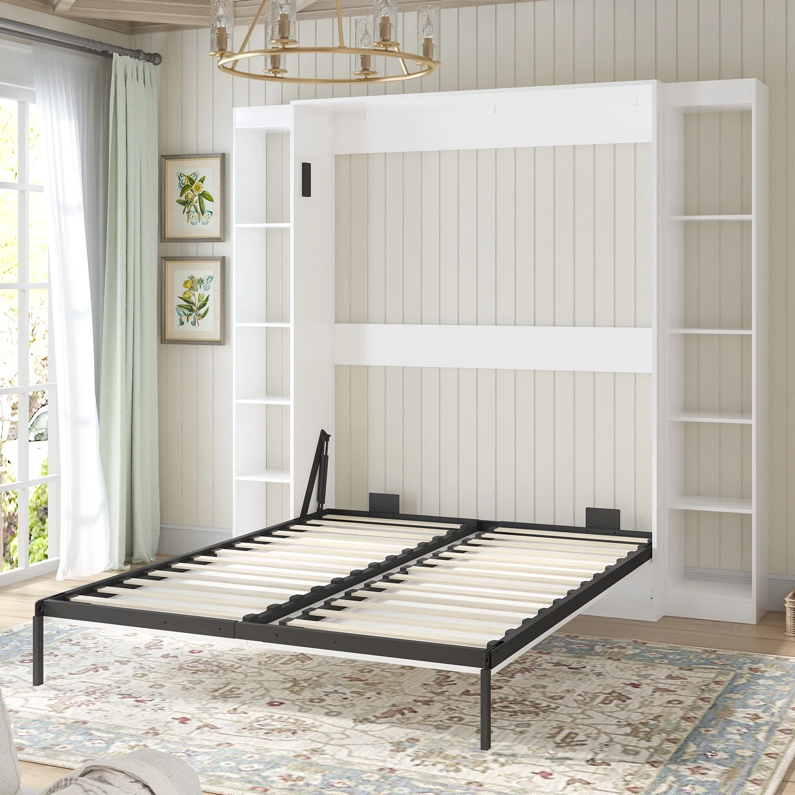 Bestar Lumina 2 Piece Queen Storage Wall Bed Set in White Chocolate