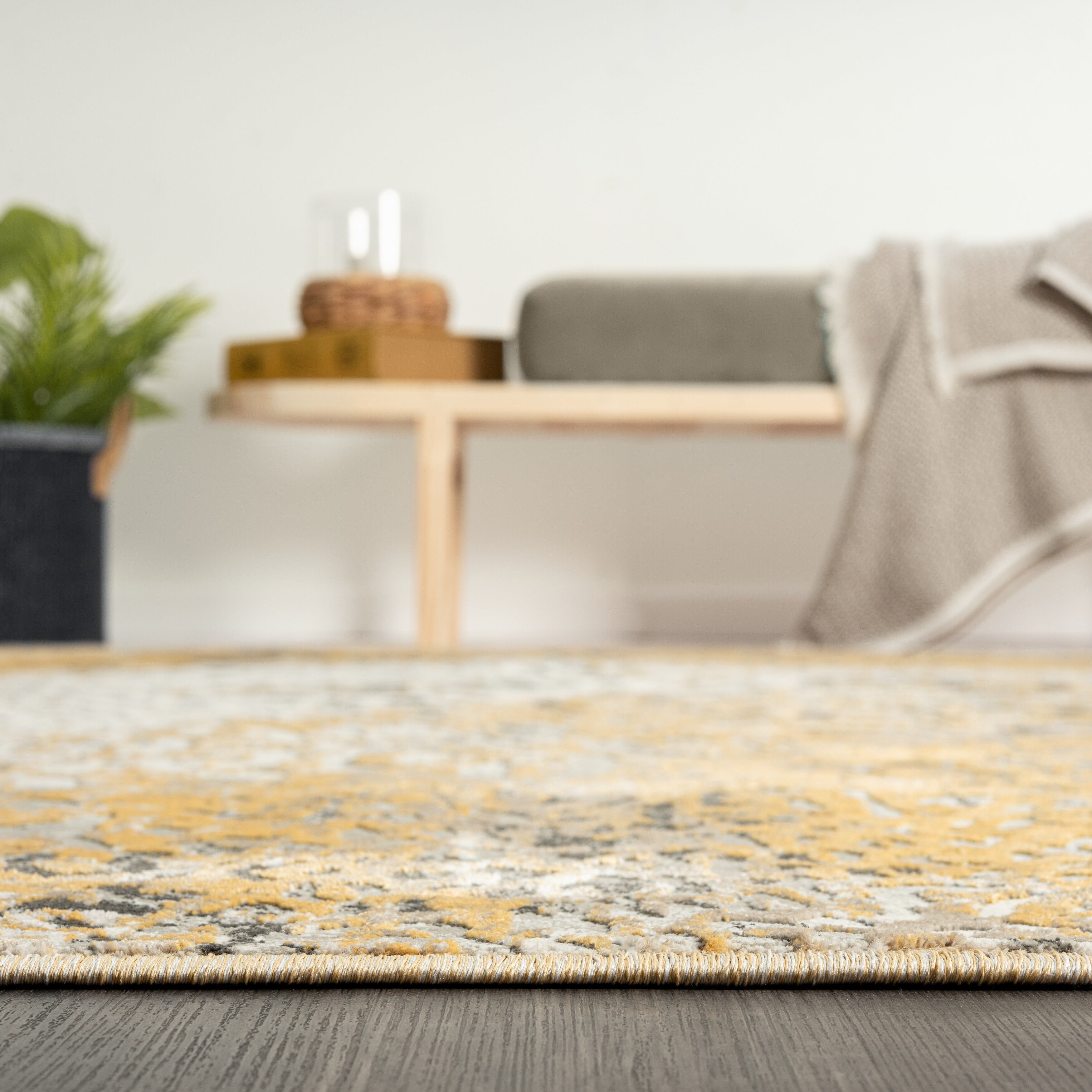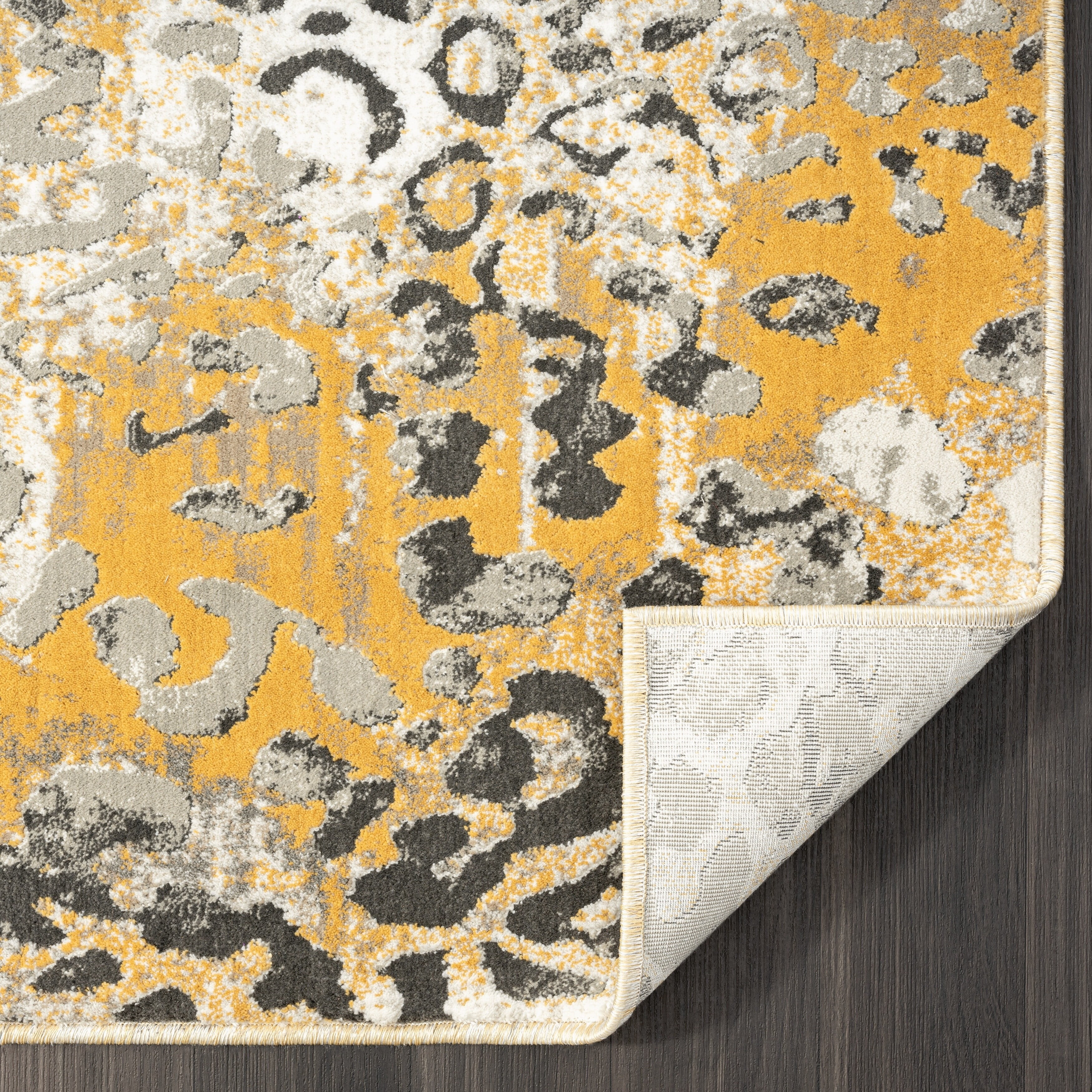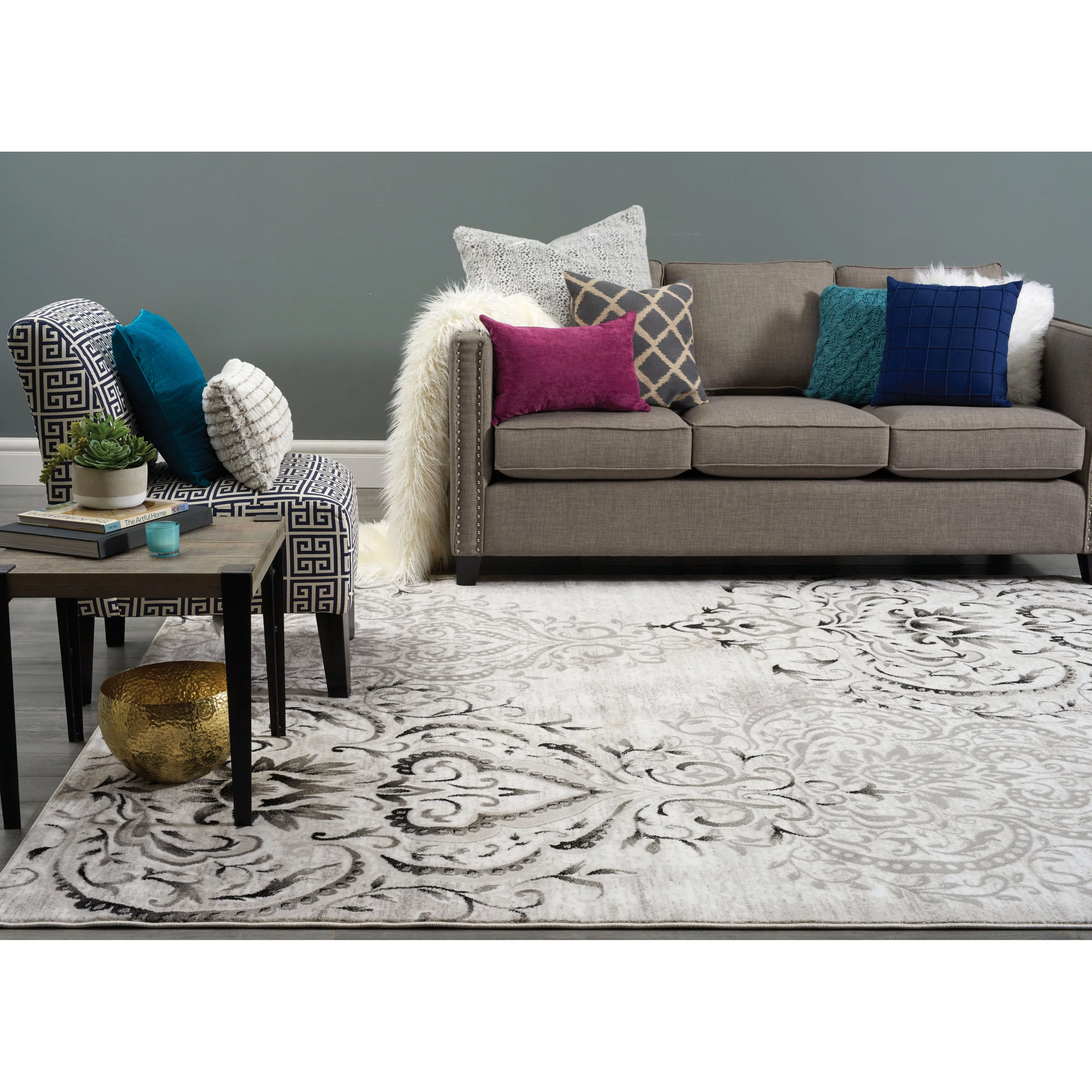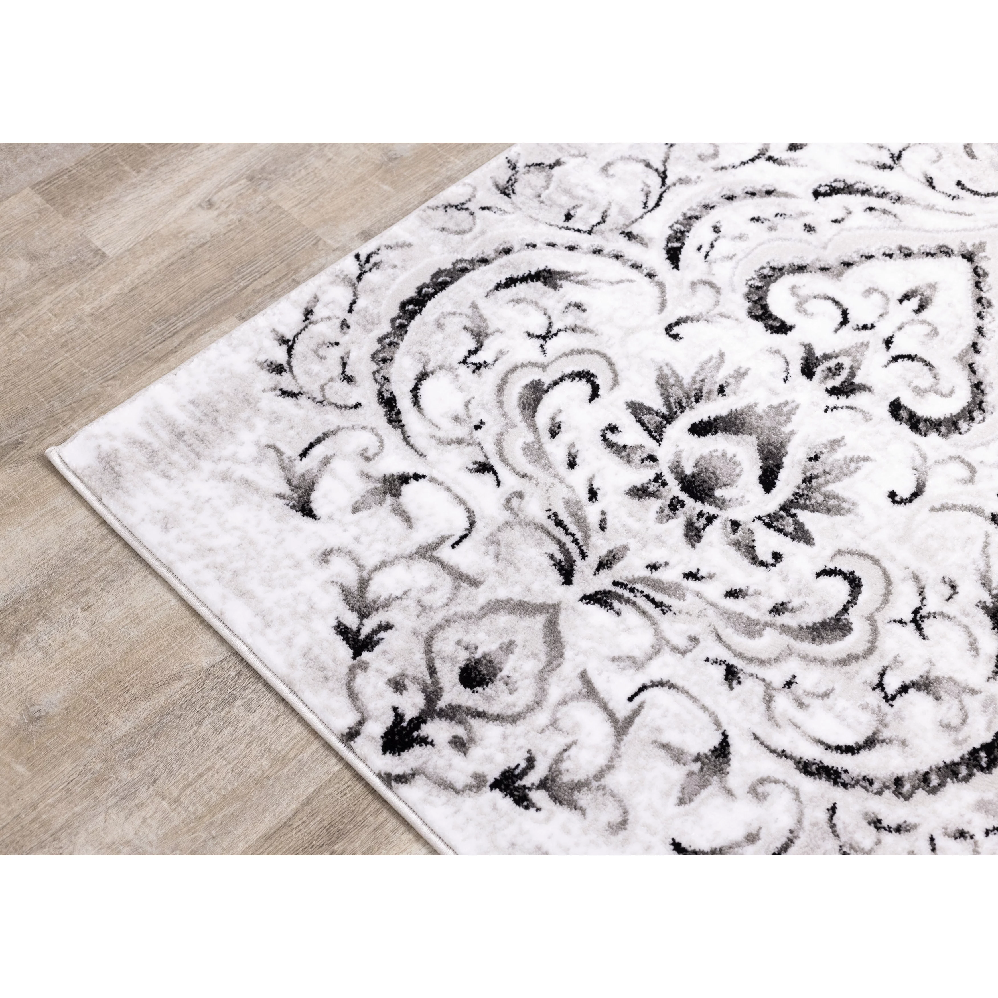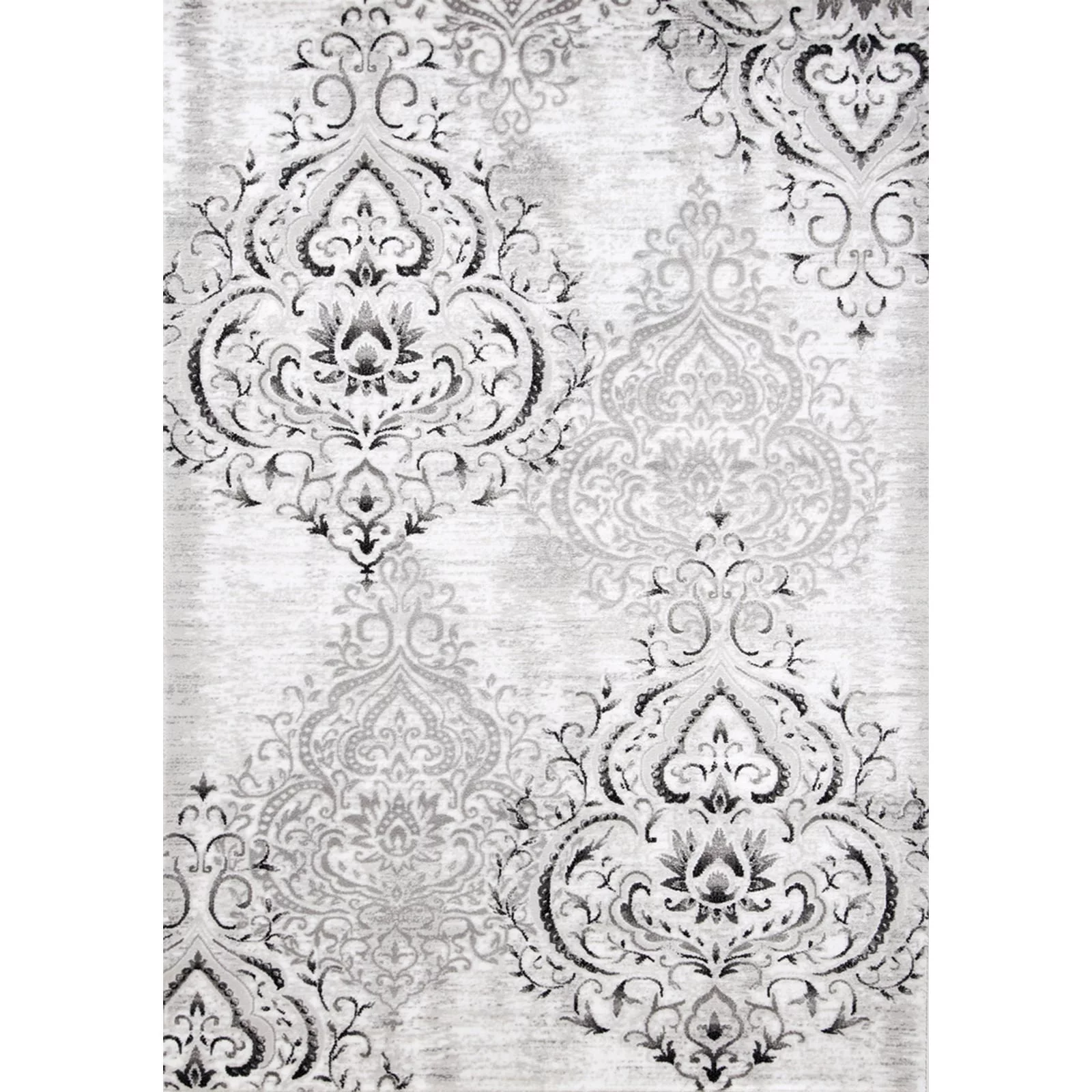 Perry Collection - Venetian Silver Damask Rug Grey Rectangle: 6'7" x 9'6" 6' x 9'
