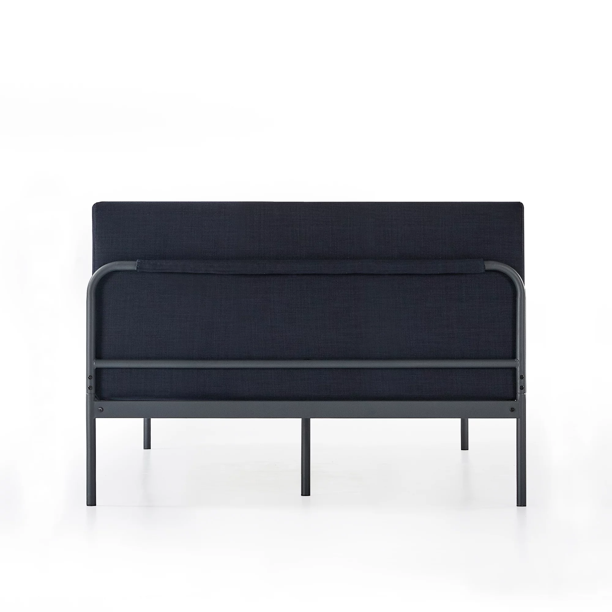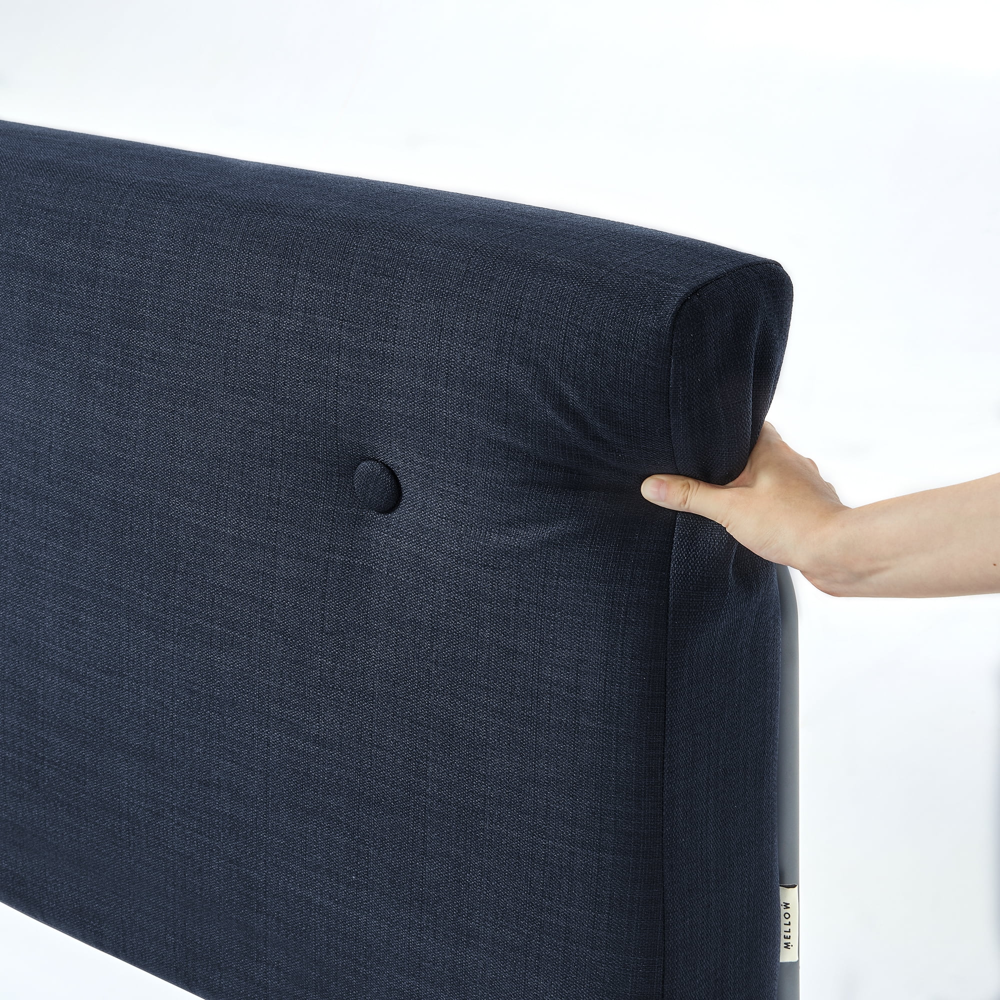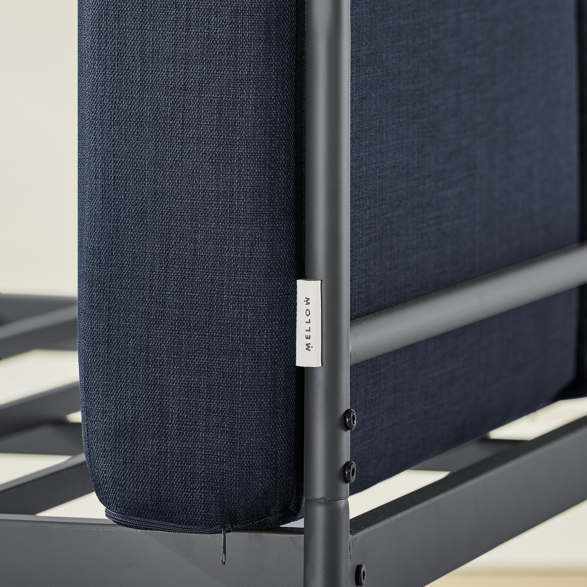 Mellow Maggie Metal Platform Bed with Upholstered Cushion Headboard, Navy, Full