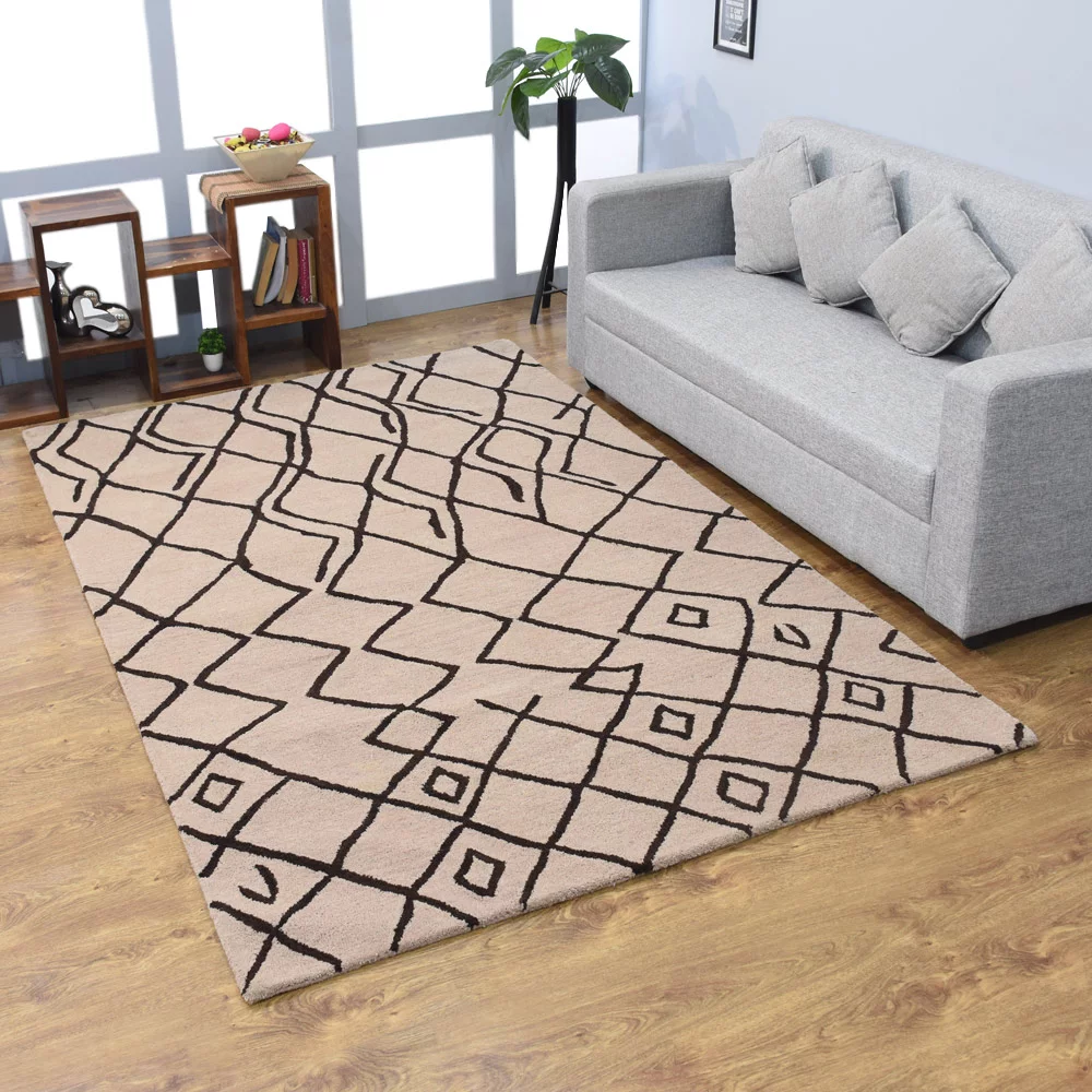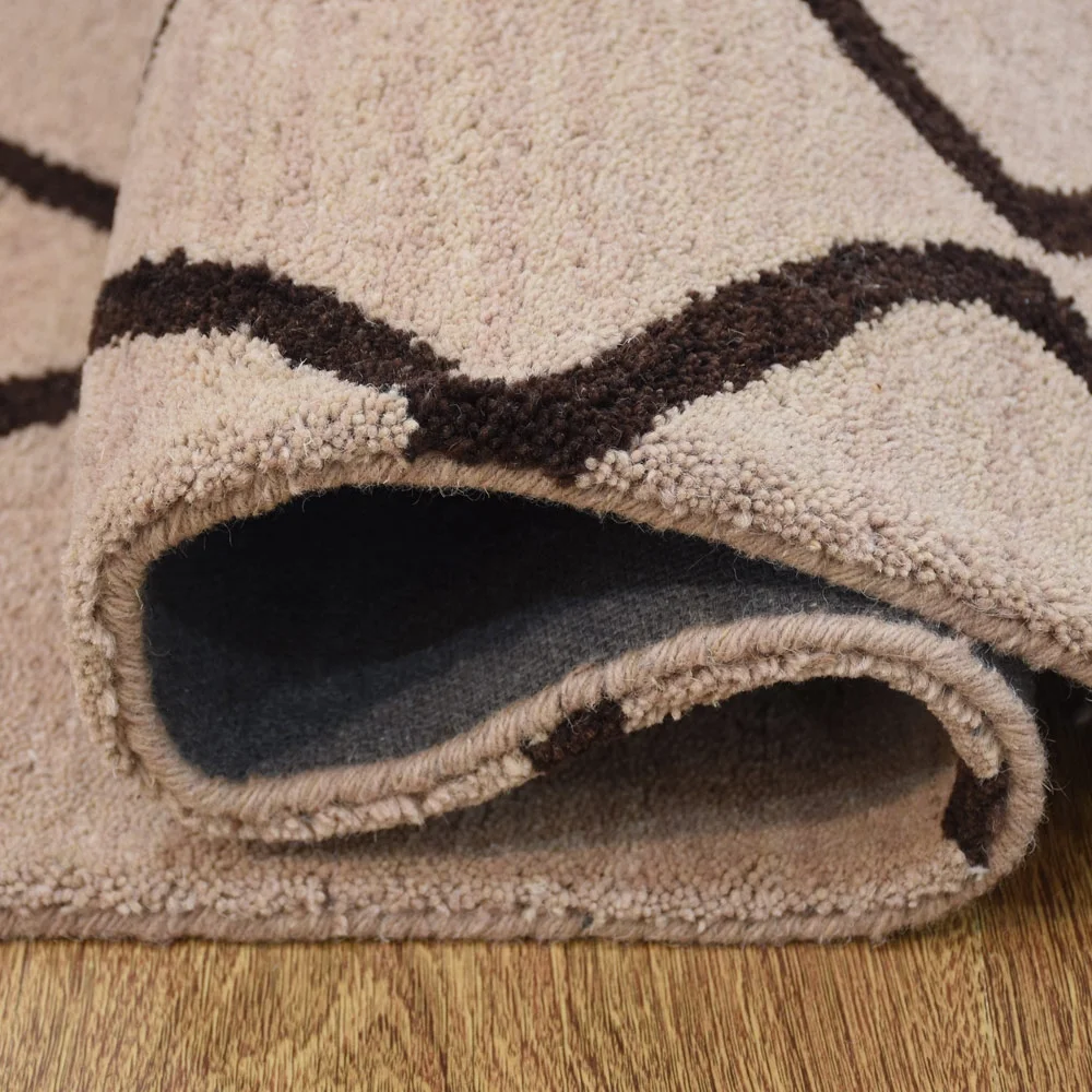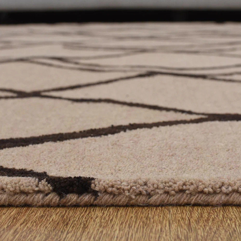 Rugsotic Carpets Hand Tufted Wool 6'x9' Area Rug Geometric Beige Brown K00S11