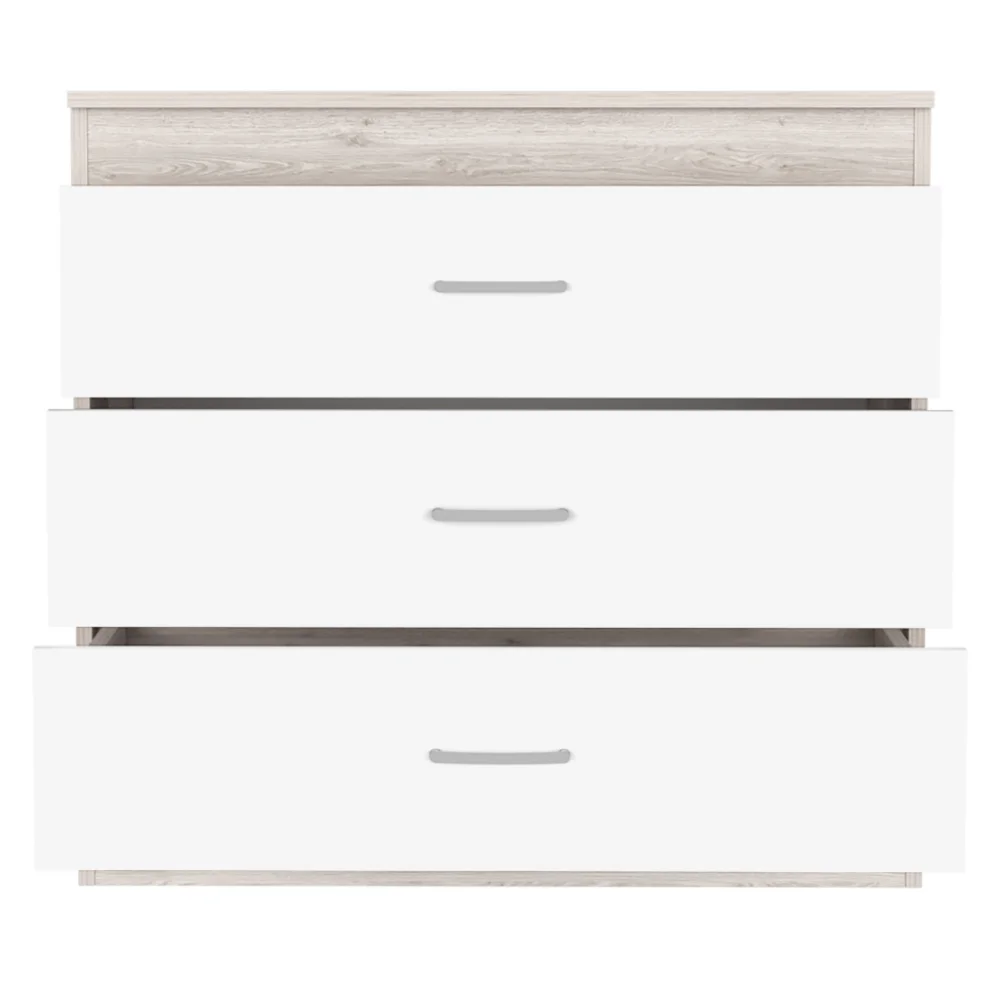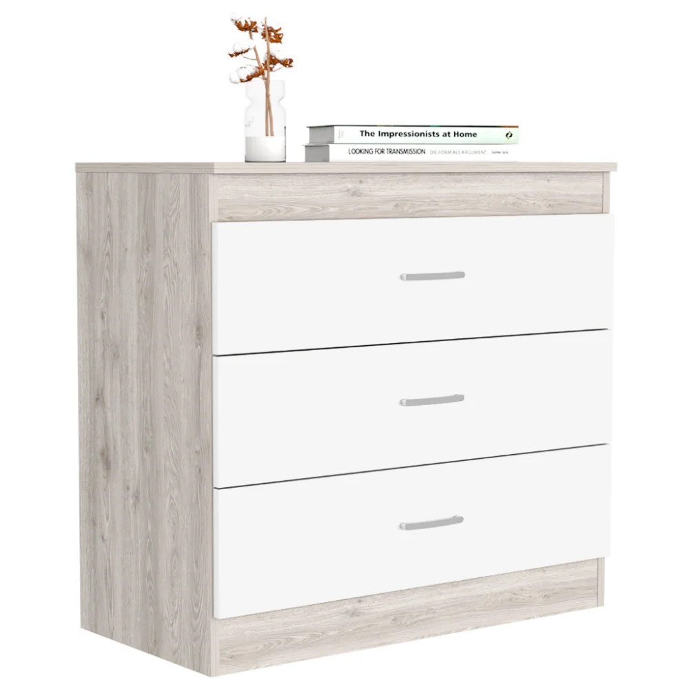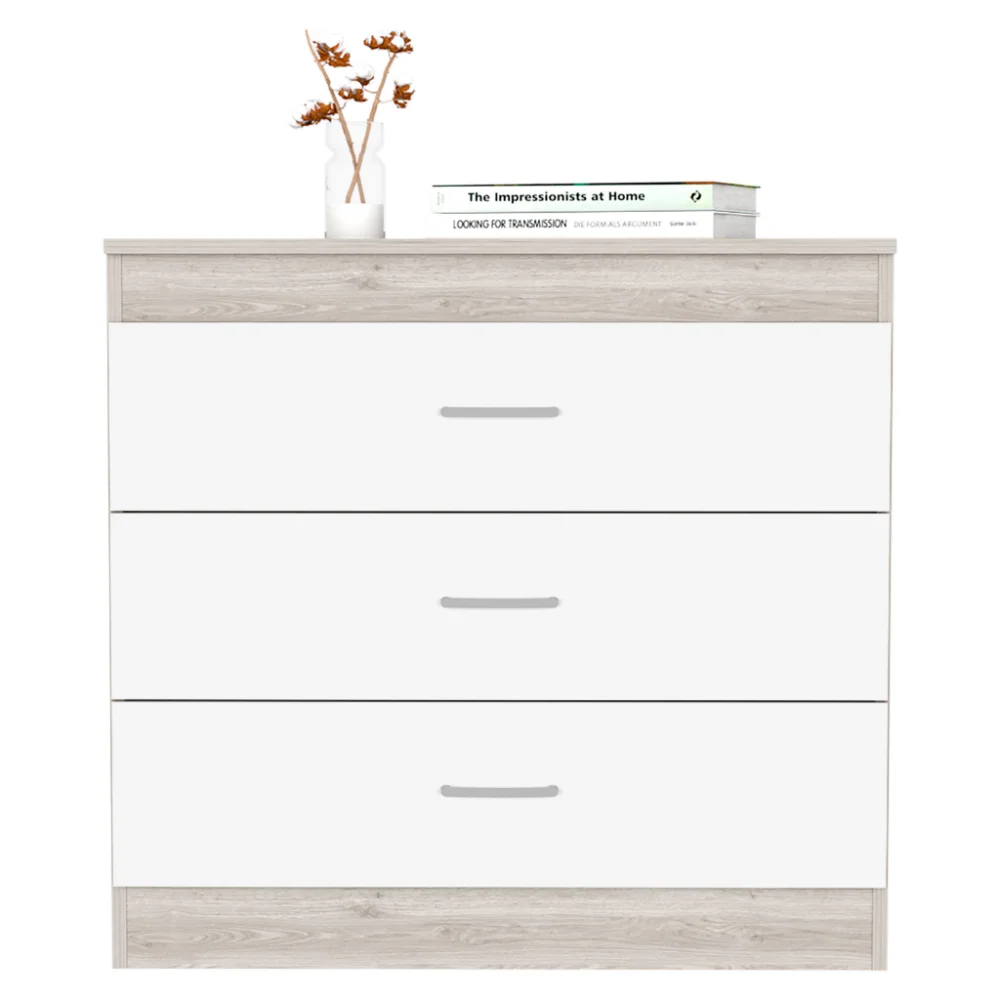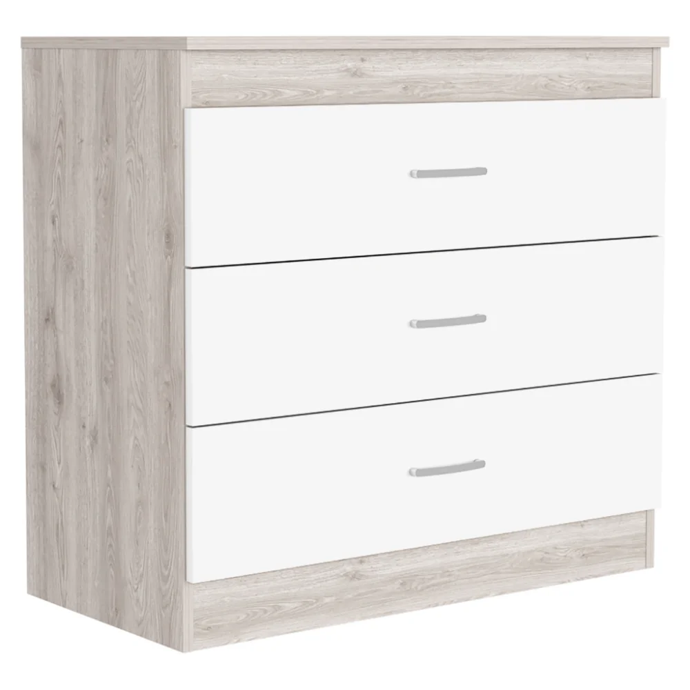 We Have Furniture Three Drawer Dresser Lial, Superior Top, Light Gray / White Finish
