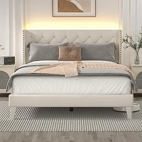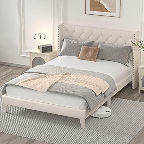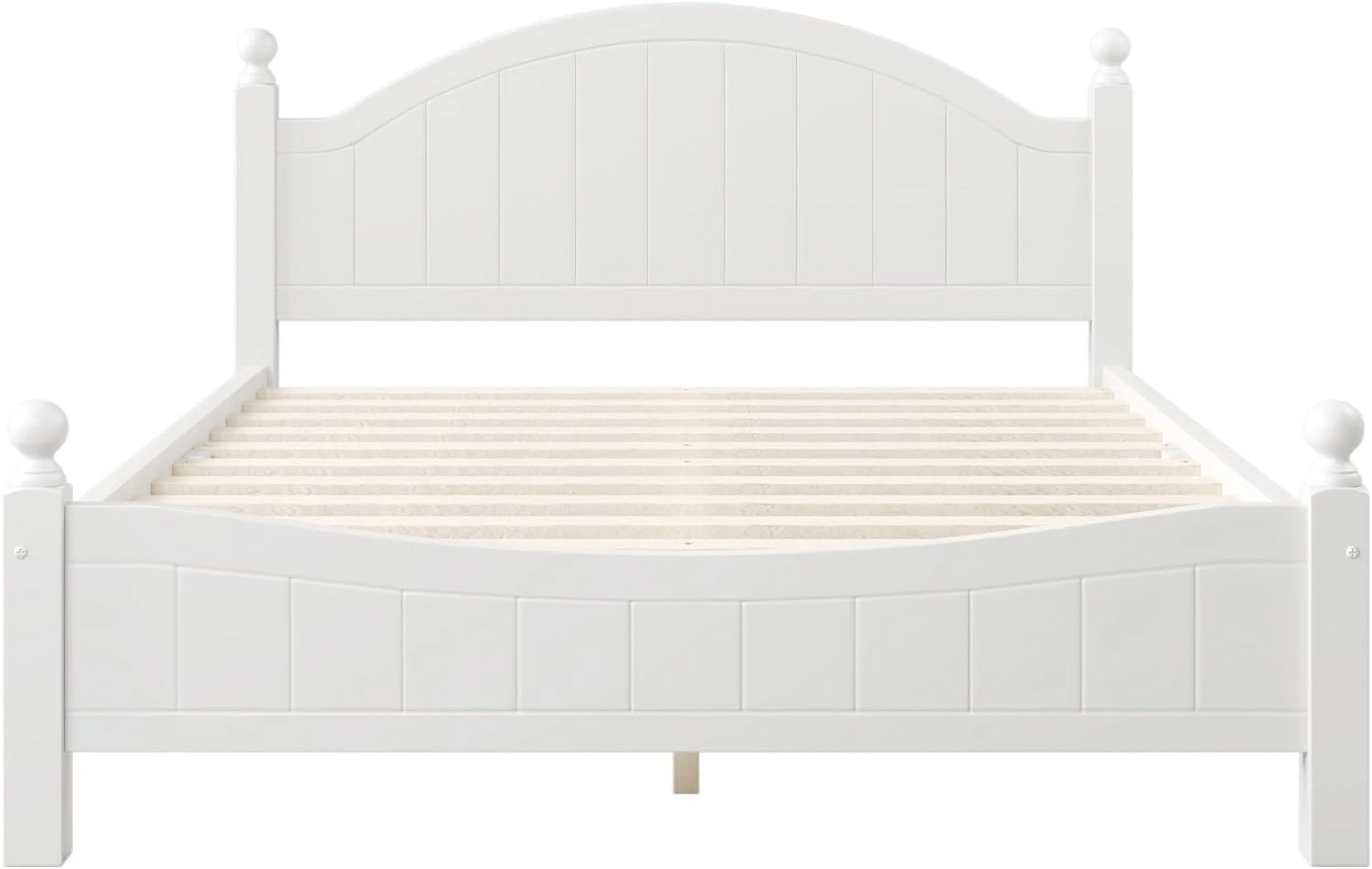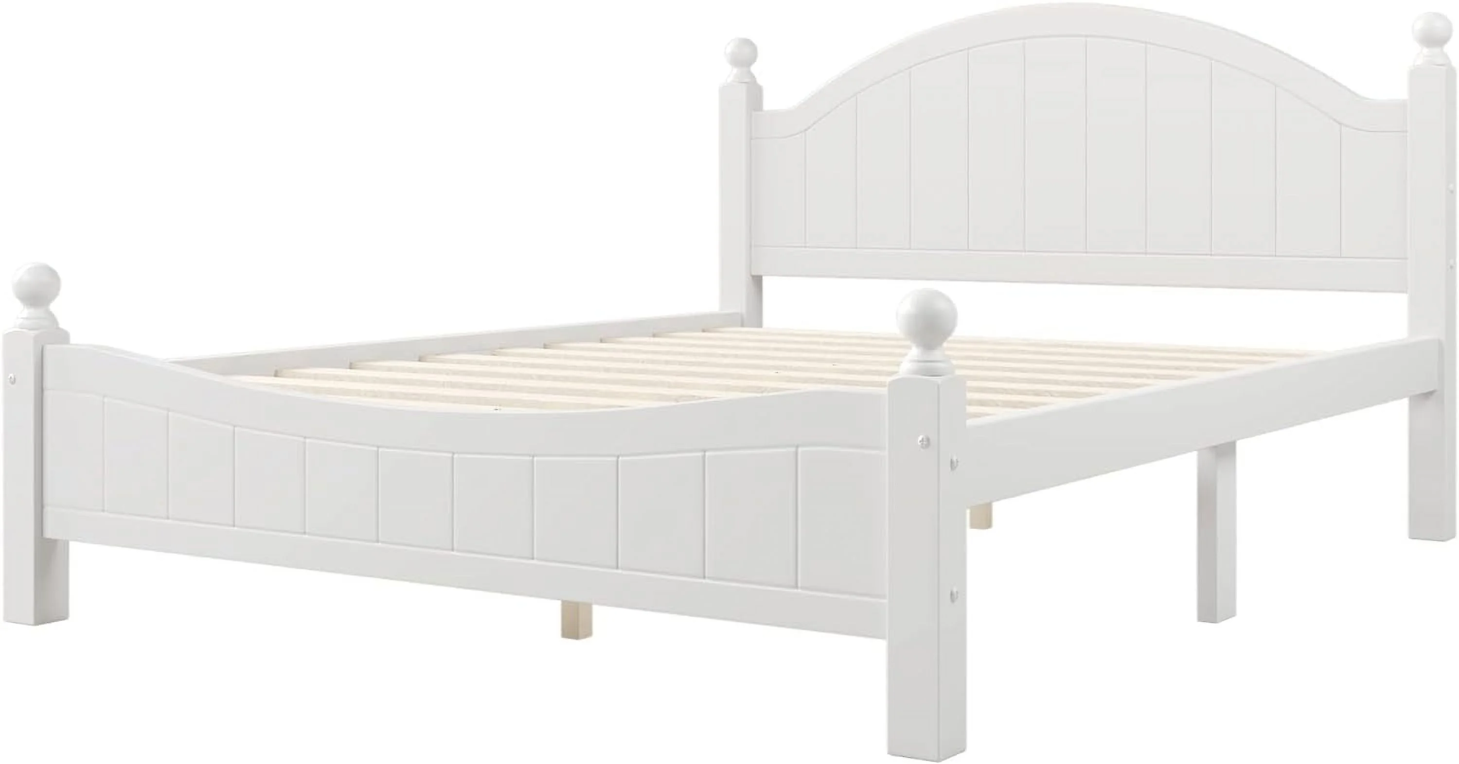 Quee Size Plaform Bed, Woode Plaform Beds Wih radiioal Cocise Syle, Woode Bed Frame For Bed Room, o Box Sprig eeded (Whie)