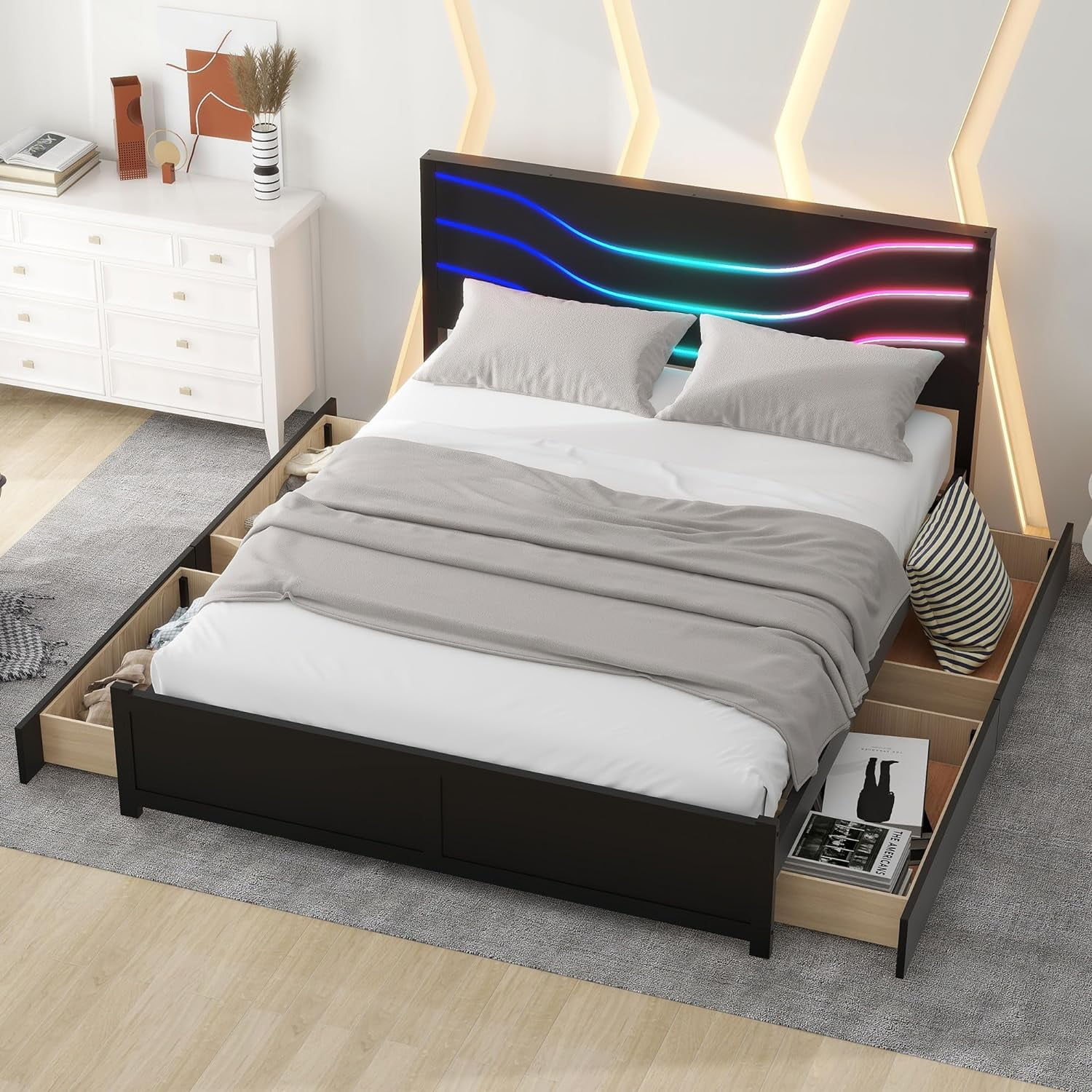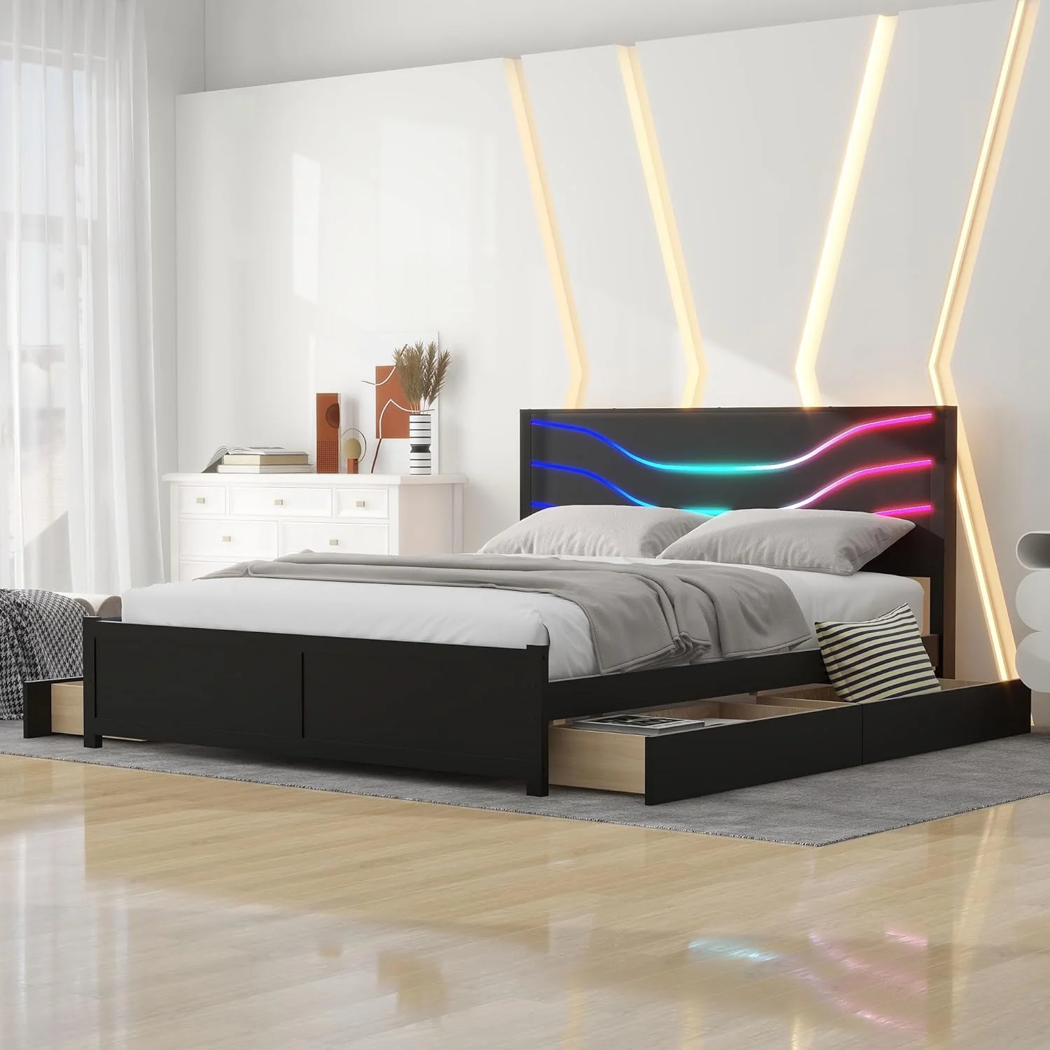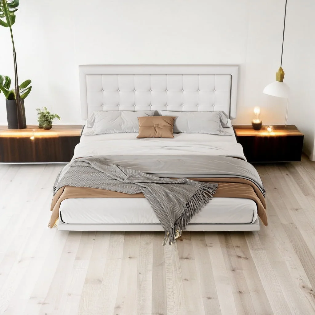 Quee Size Plaform Bed, Woode Plaform Beds Wih radiioal Cocise Syle, Woode Bed Frame For Bed Room, o Box Sprig eeded (Whie)