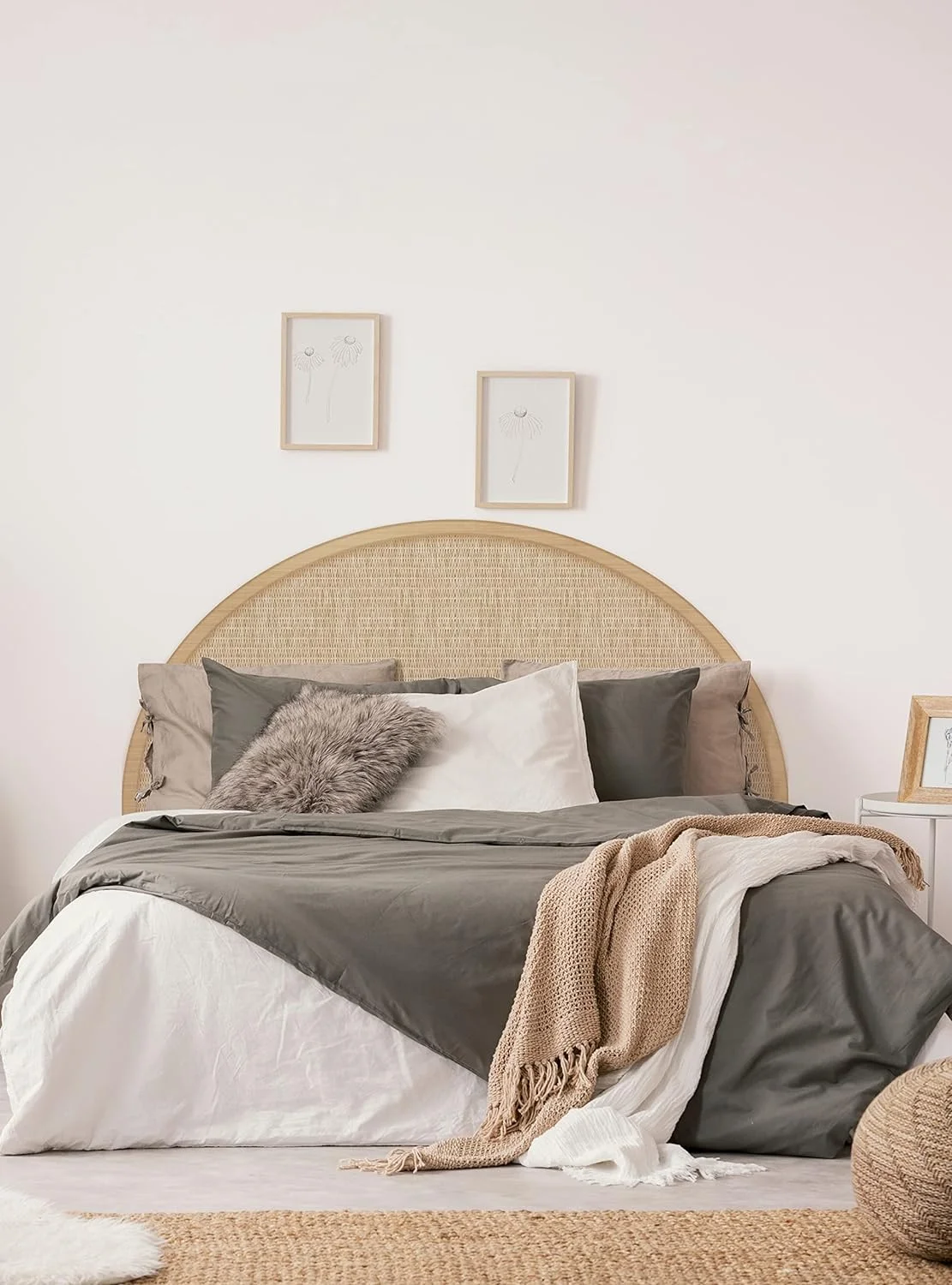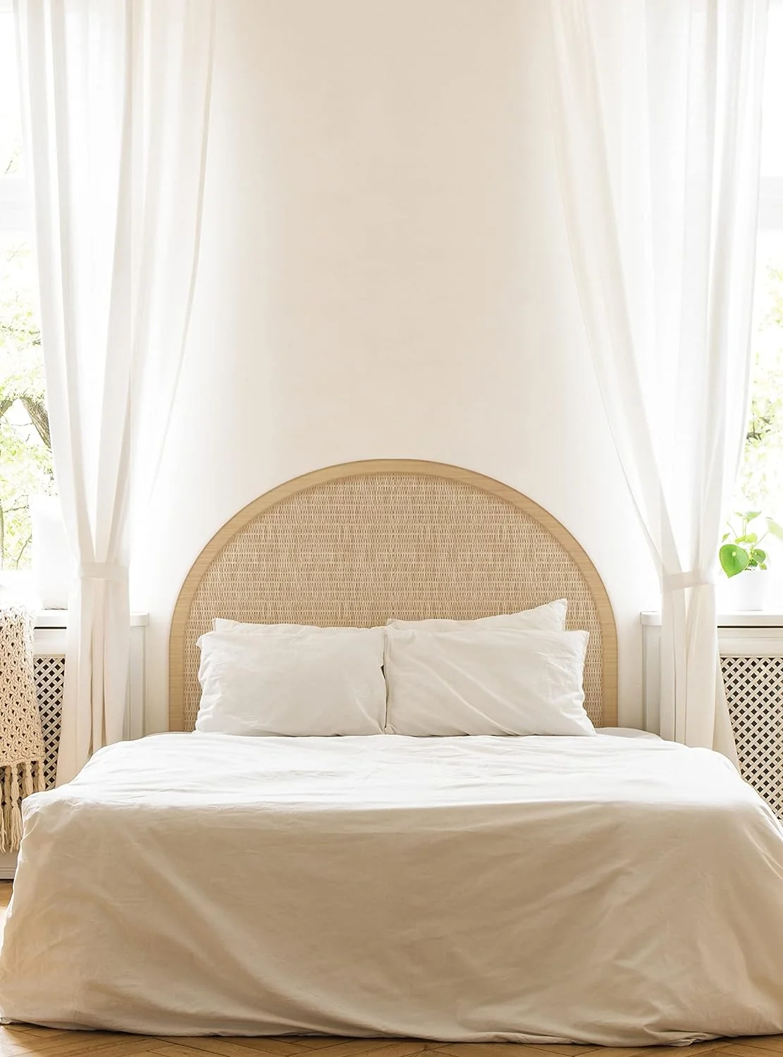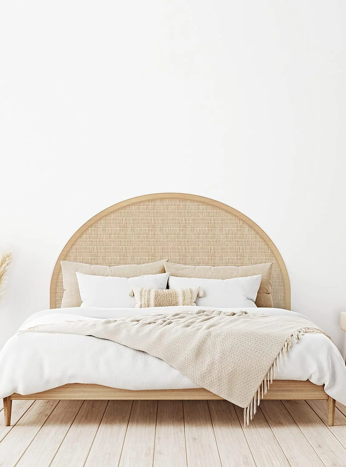 Rattan Weave Look Vinyl Peel And Stick Headboard Wall Sticker (Queen, Natural)