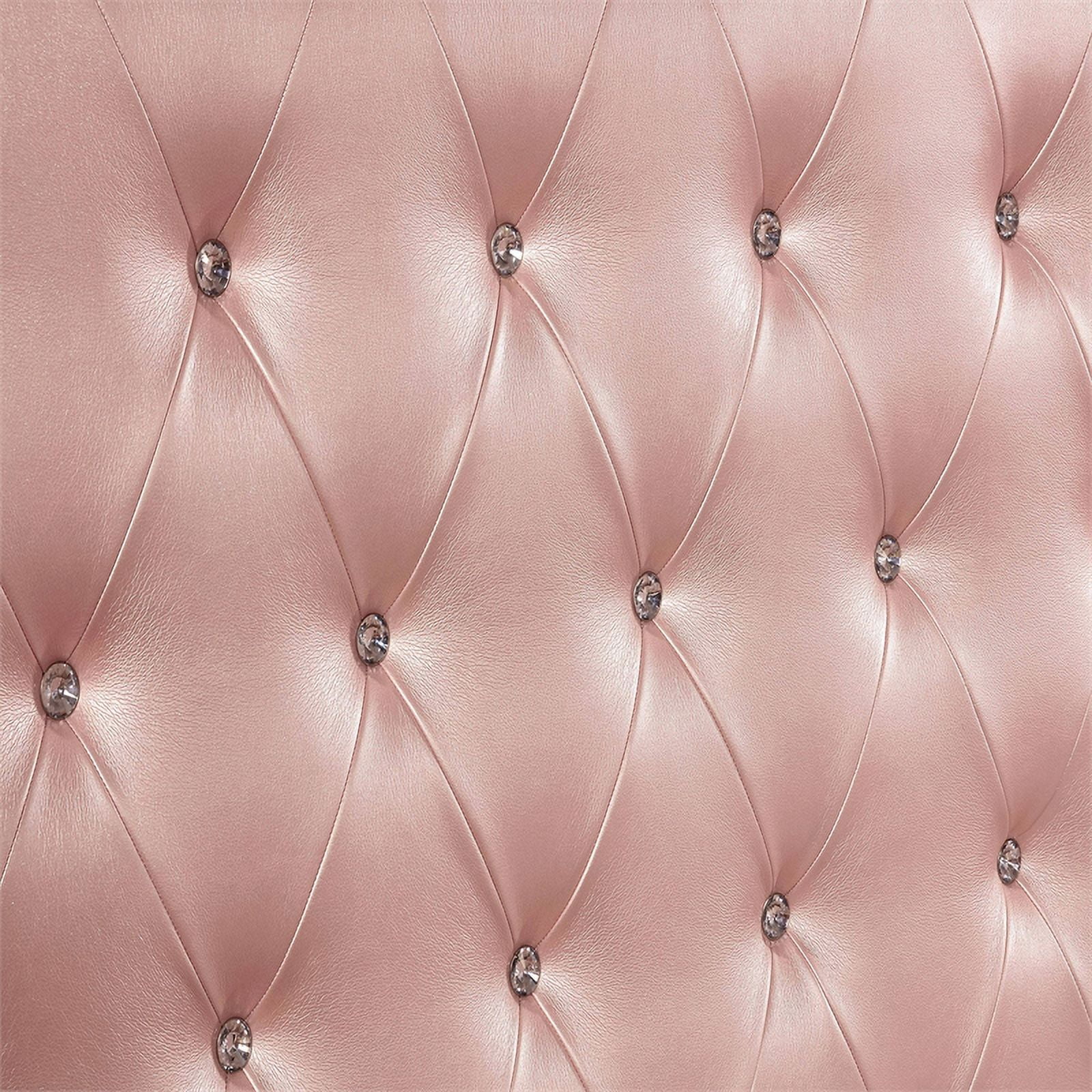 Queen Size Wooden Bed With Mirror Trim Detail and Camelback Headboard, Pink
