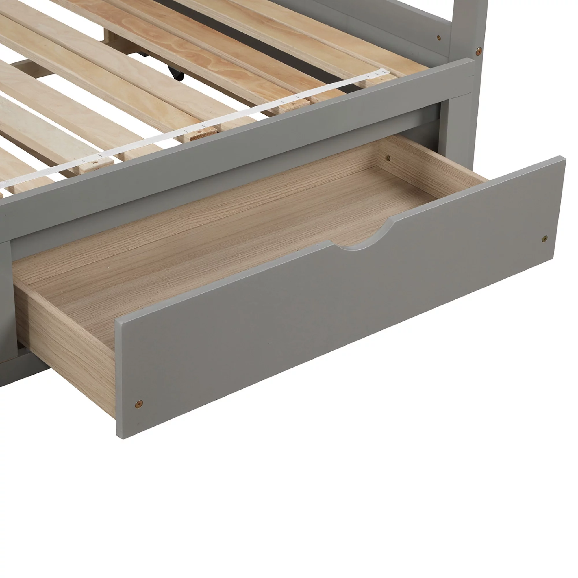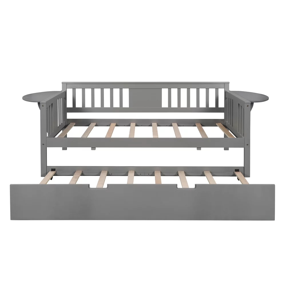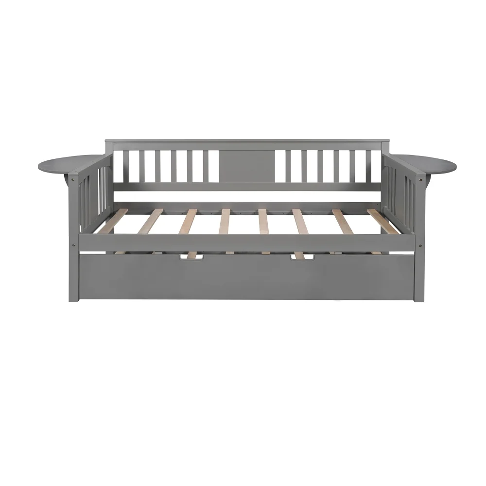 Teledu Twin Wooden Daybed With Trundle Bed , Sofa Bed For Bedroom Living Room, Gray