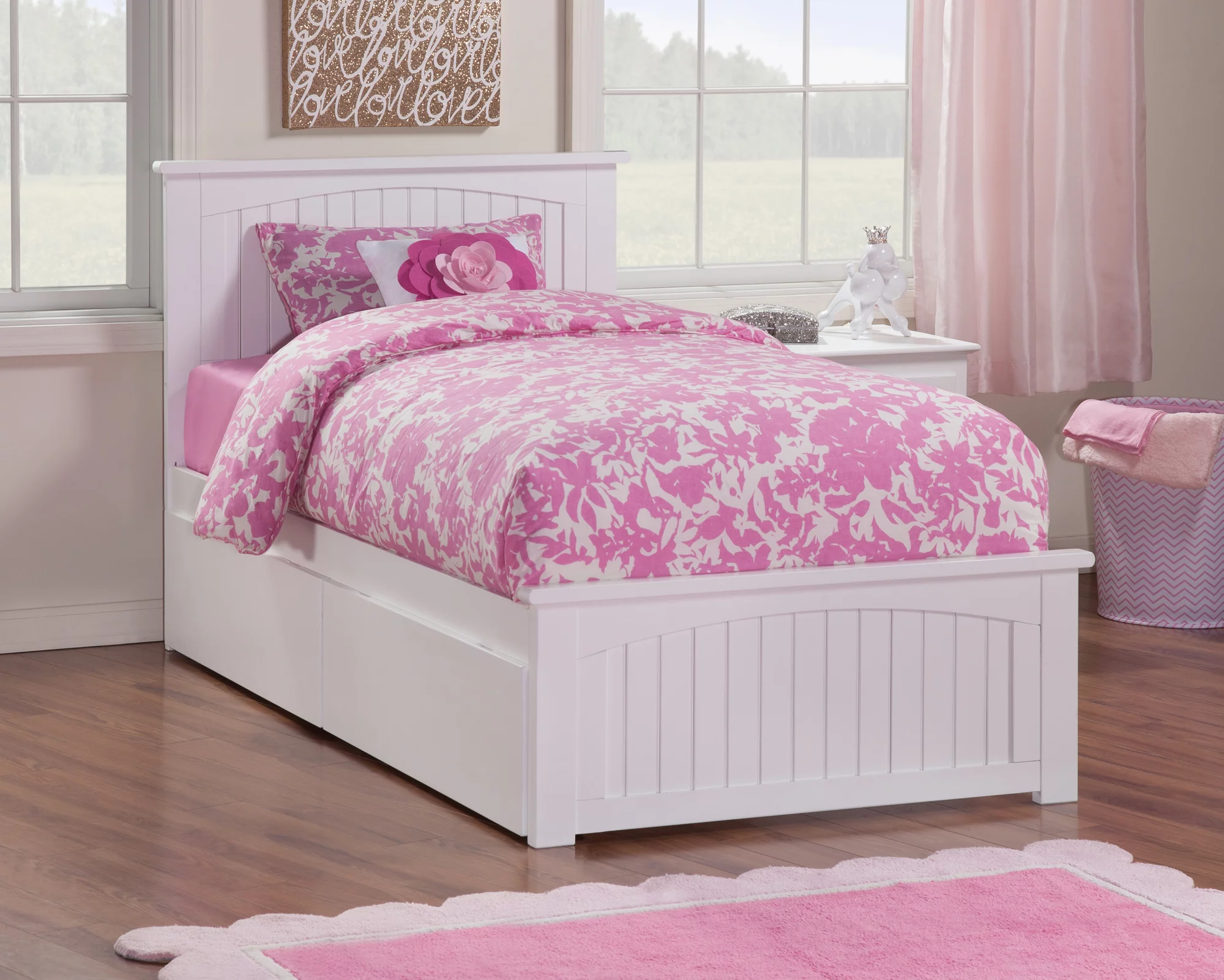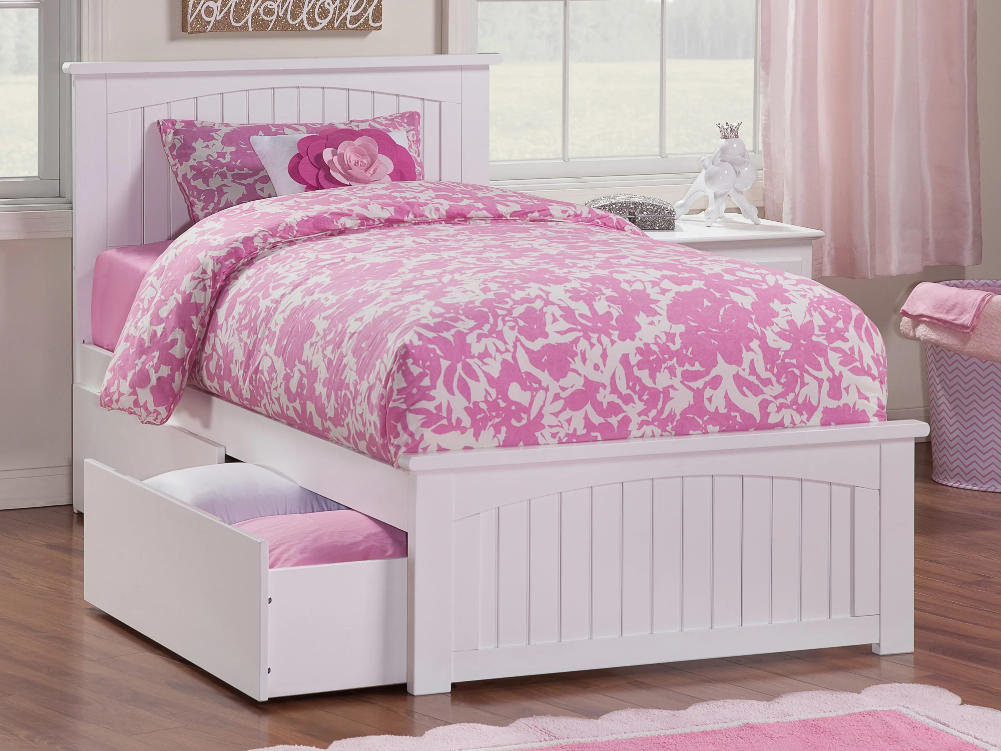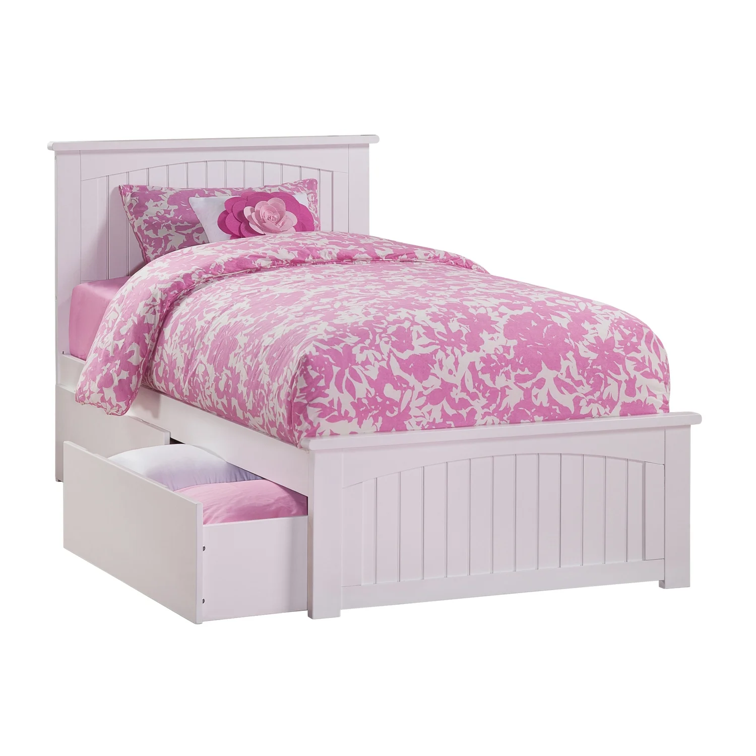 AFI Nantucket Platform Bed with Matching Footboard and Turbo Charger with Urban Bed Drawers-Color:White,Size:Twin