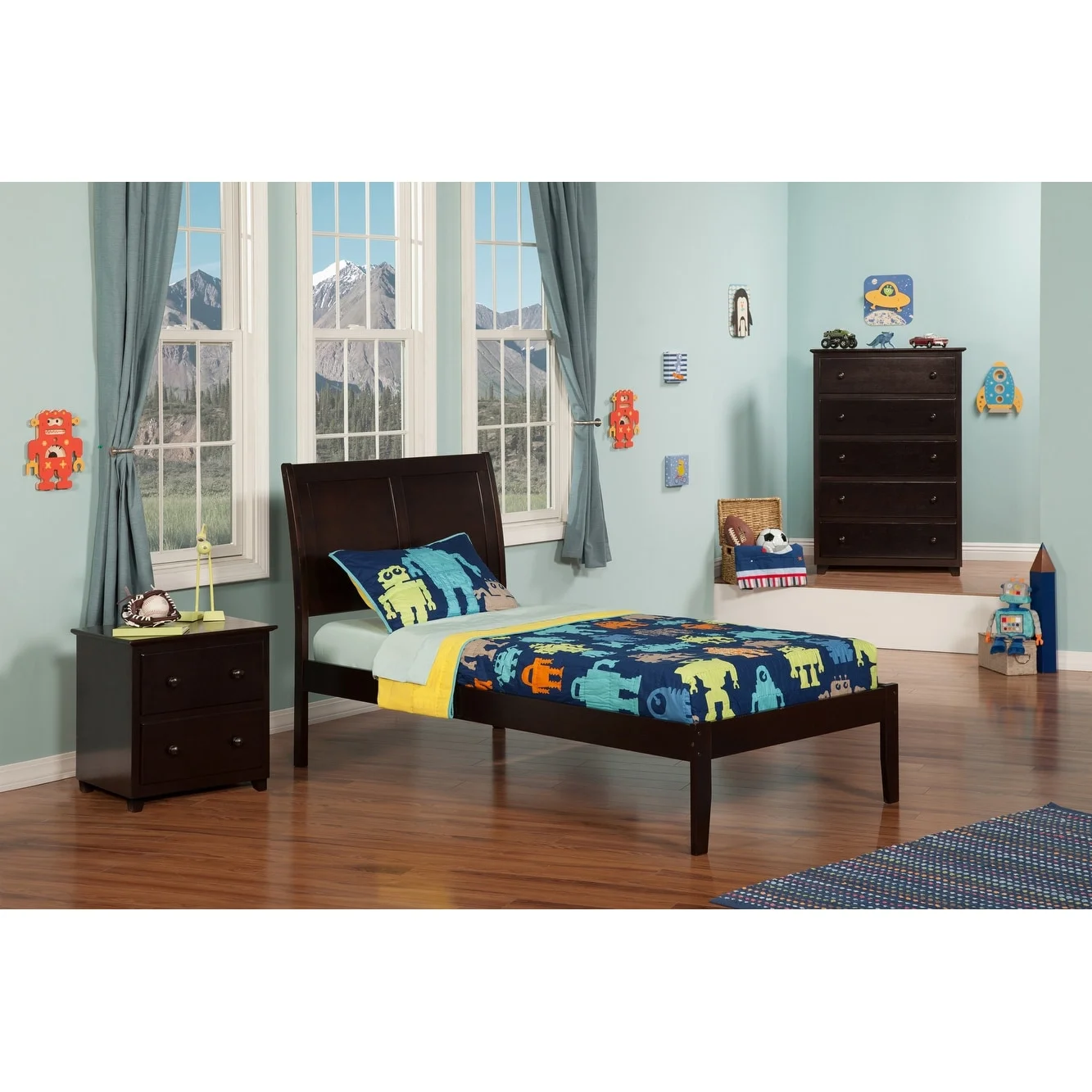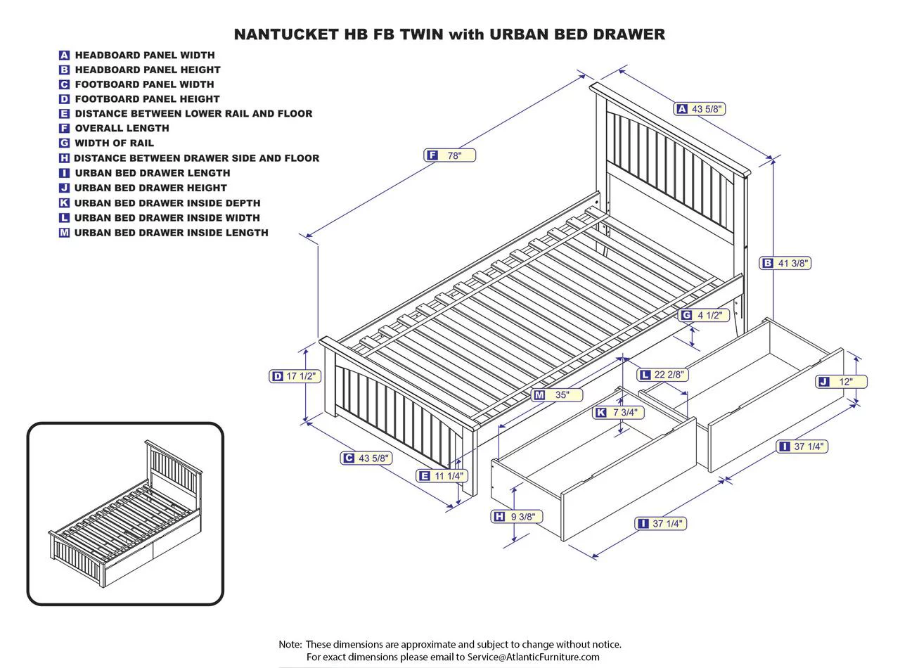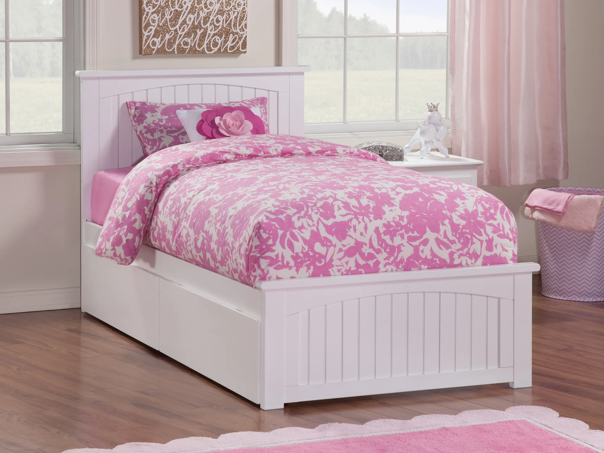 AFI Nantucket Platform Bed with Matching Footboard and Turbo Charger with Urban Bed Drawers-Color:White,Size:Twin