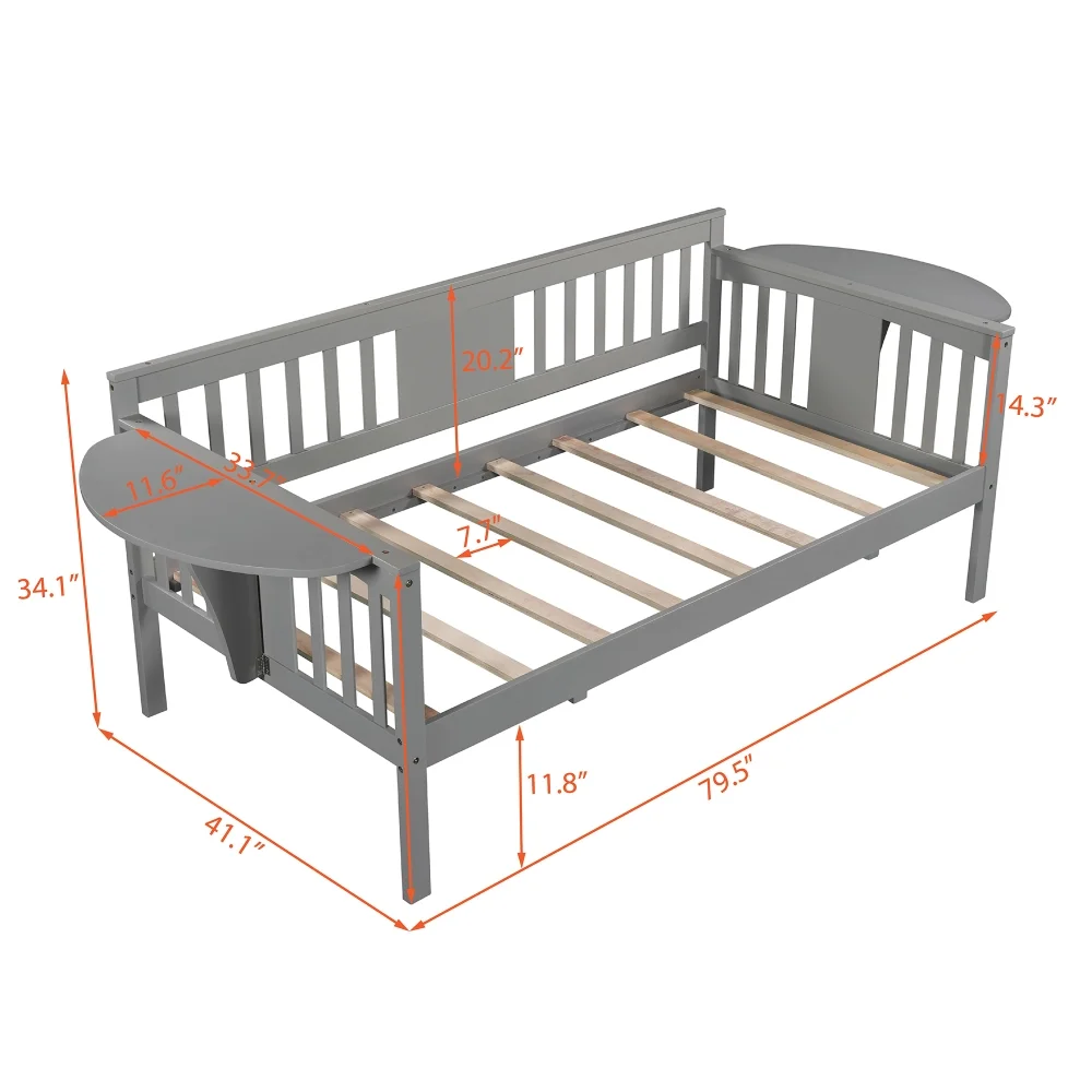 Teledu Twin Size Daybed, Wood Slat Support, Gray 2-Number Of Package Plywood 79.50in