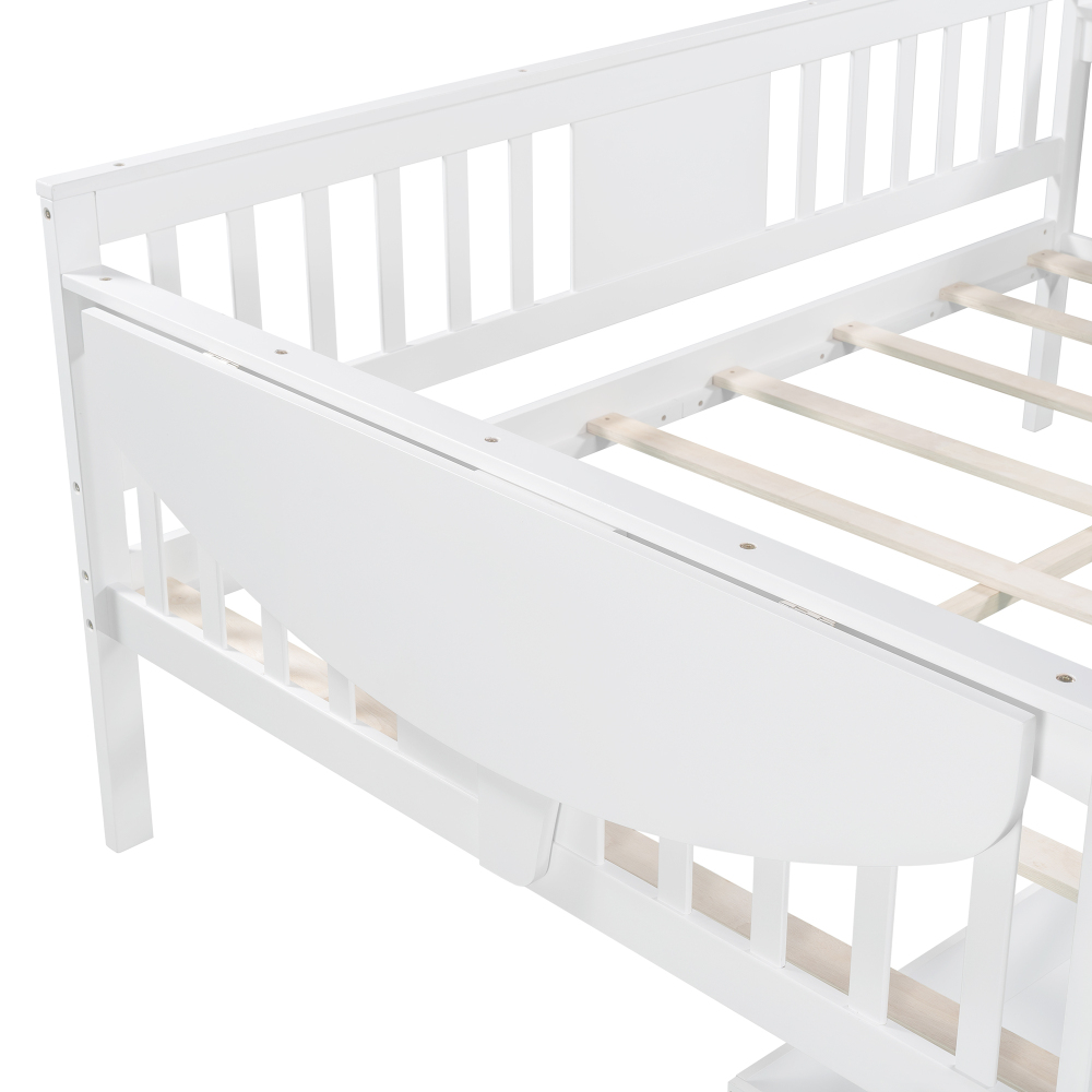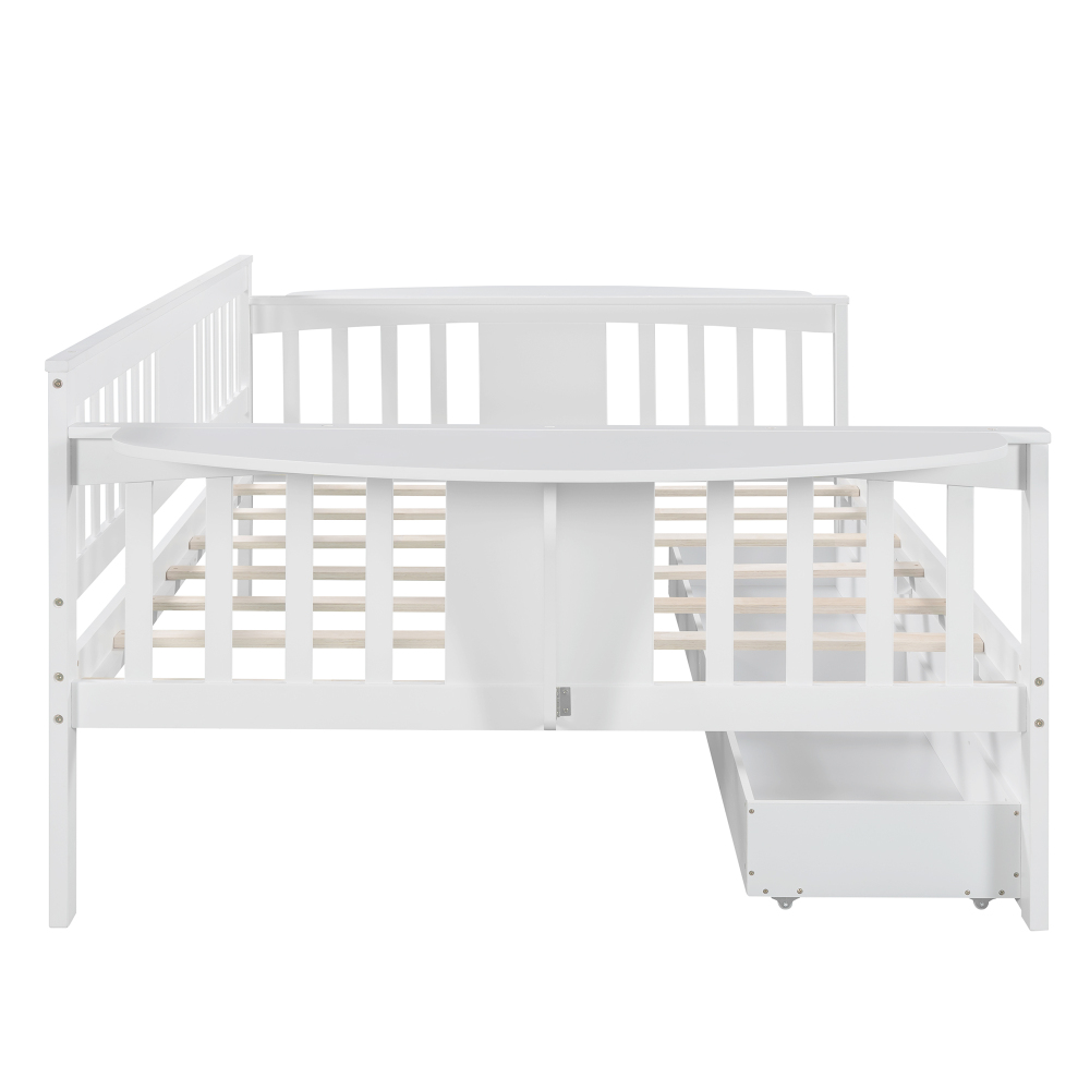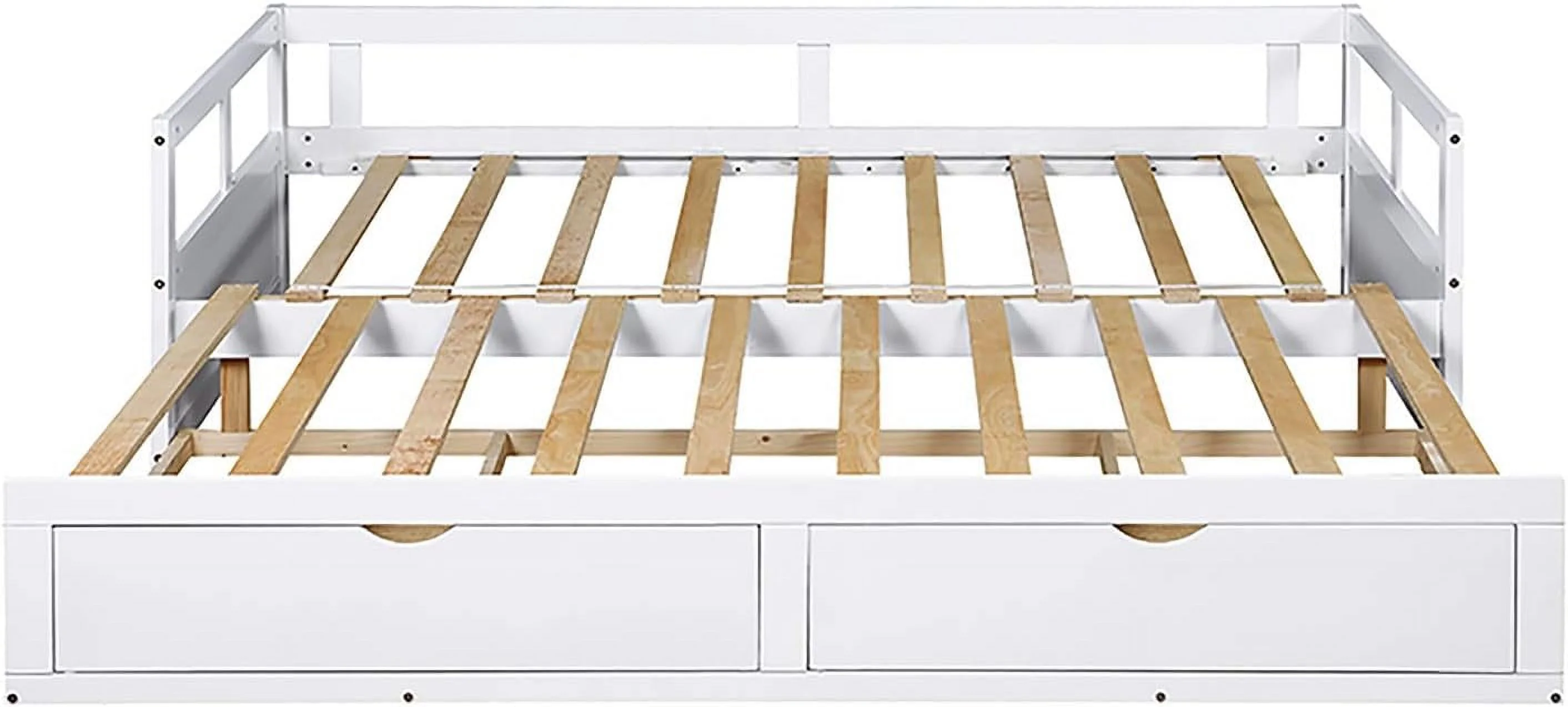 Size Daybed With Trundle Bed & 2 Storage Drawers, Wooden Extendable Bed, Sofa Bed For Bedroom Living Room, White