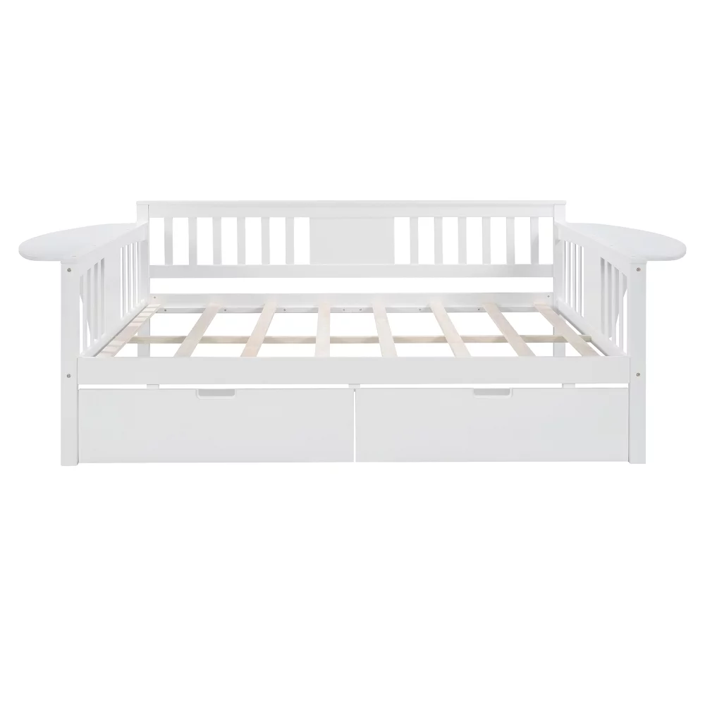 Teledu Full Size Daybed With Two Drawers, Wood Slat Support, White 2-Number Of Package