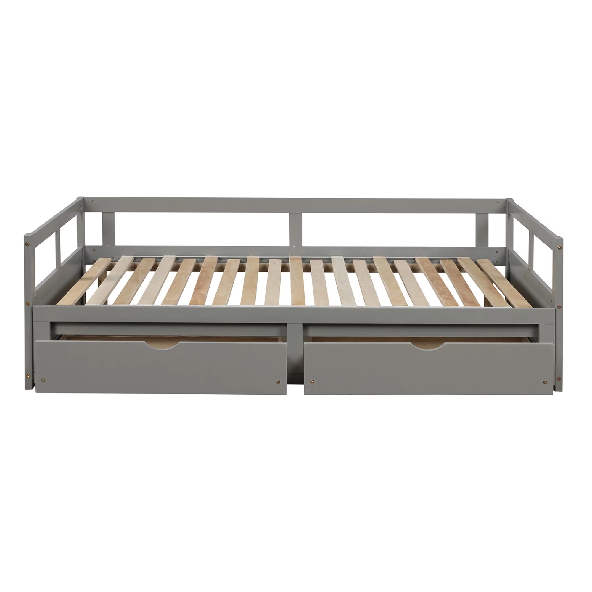 Wooden Daybed with Trundle Bed and Two Storage Drawers , Extendable Bed Daybed,Sofa Bed for Bedroom Living Room, Gray