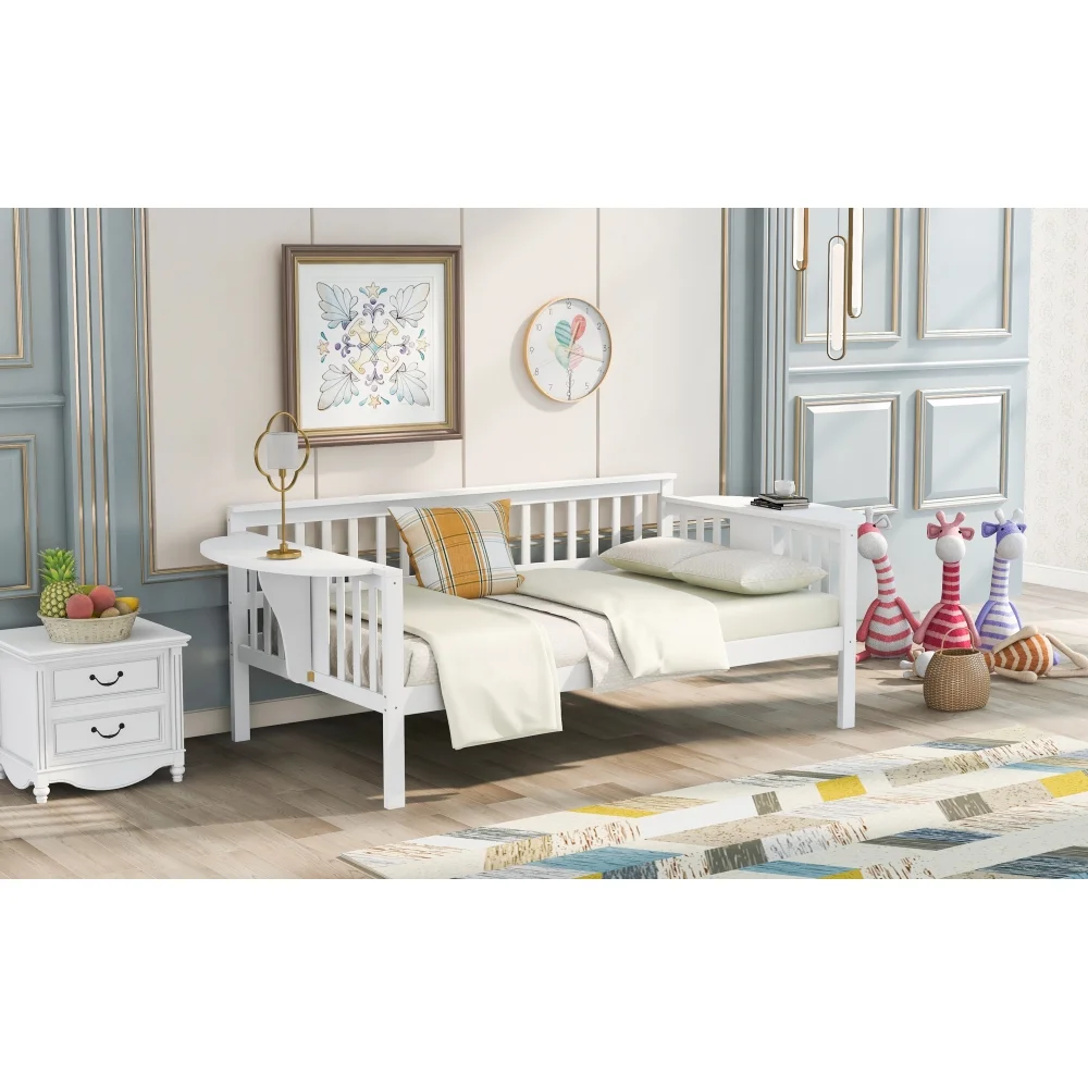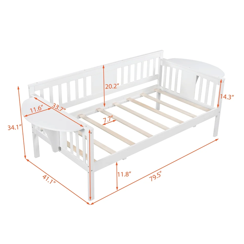 Teledu Twin Size Daybed, Wood Slat Support, White 2-Number Of Package Plywood 79.50in