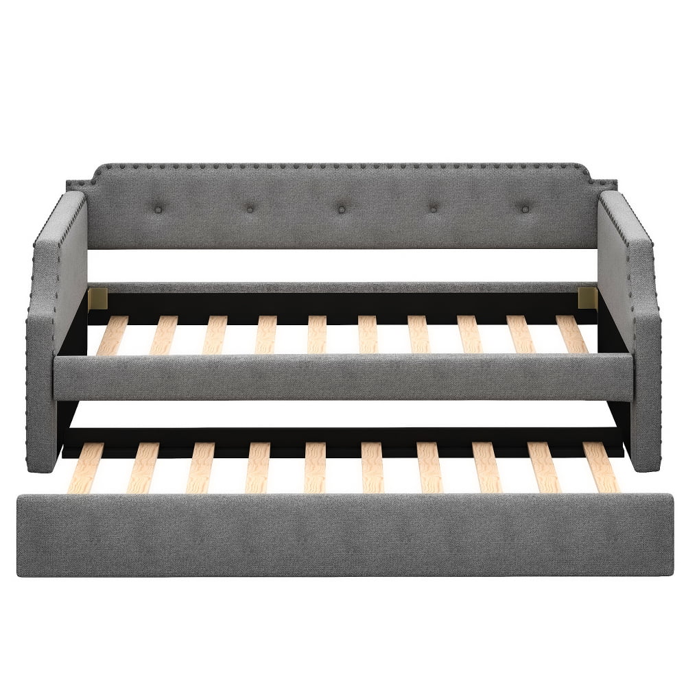 Teledu Upholstered Daybed With Trundle, Wood Slat Support,Upholstered Frame Sofa Bed ,
